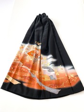 黒留袖着物をリメイクして作製したウエストゴムロングスカートフリーサイズです