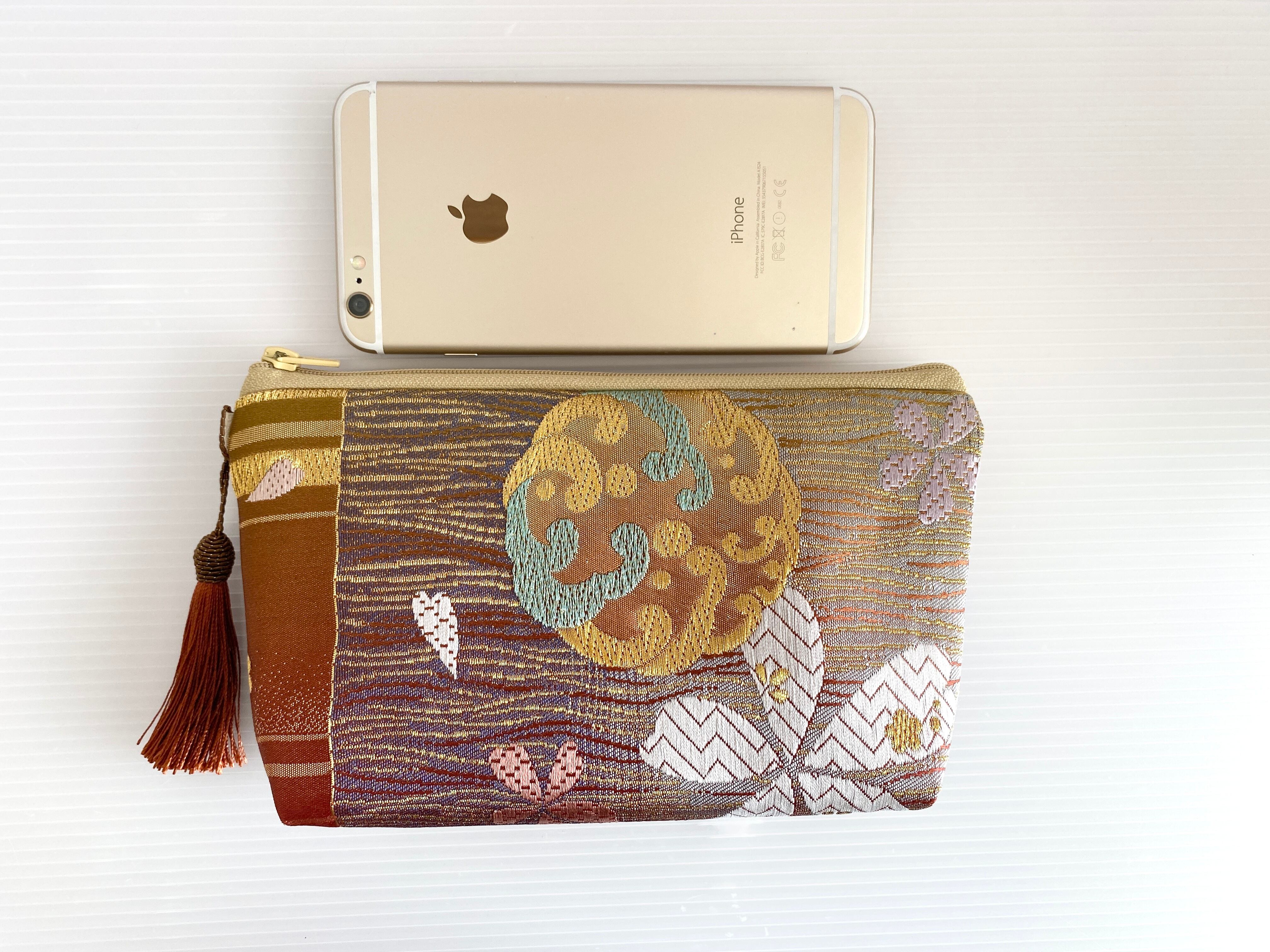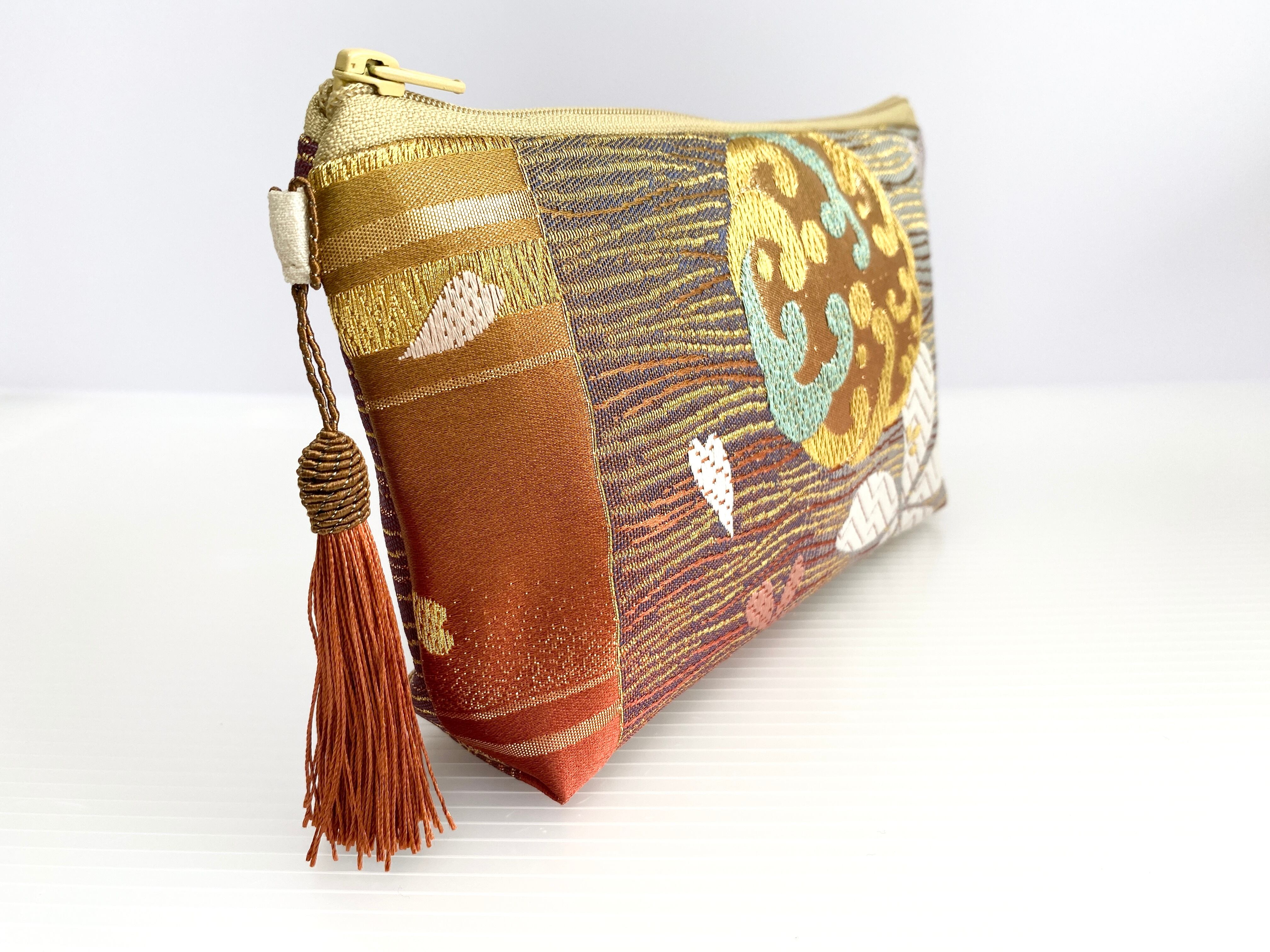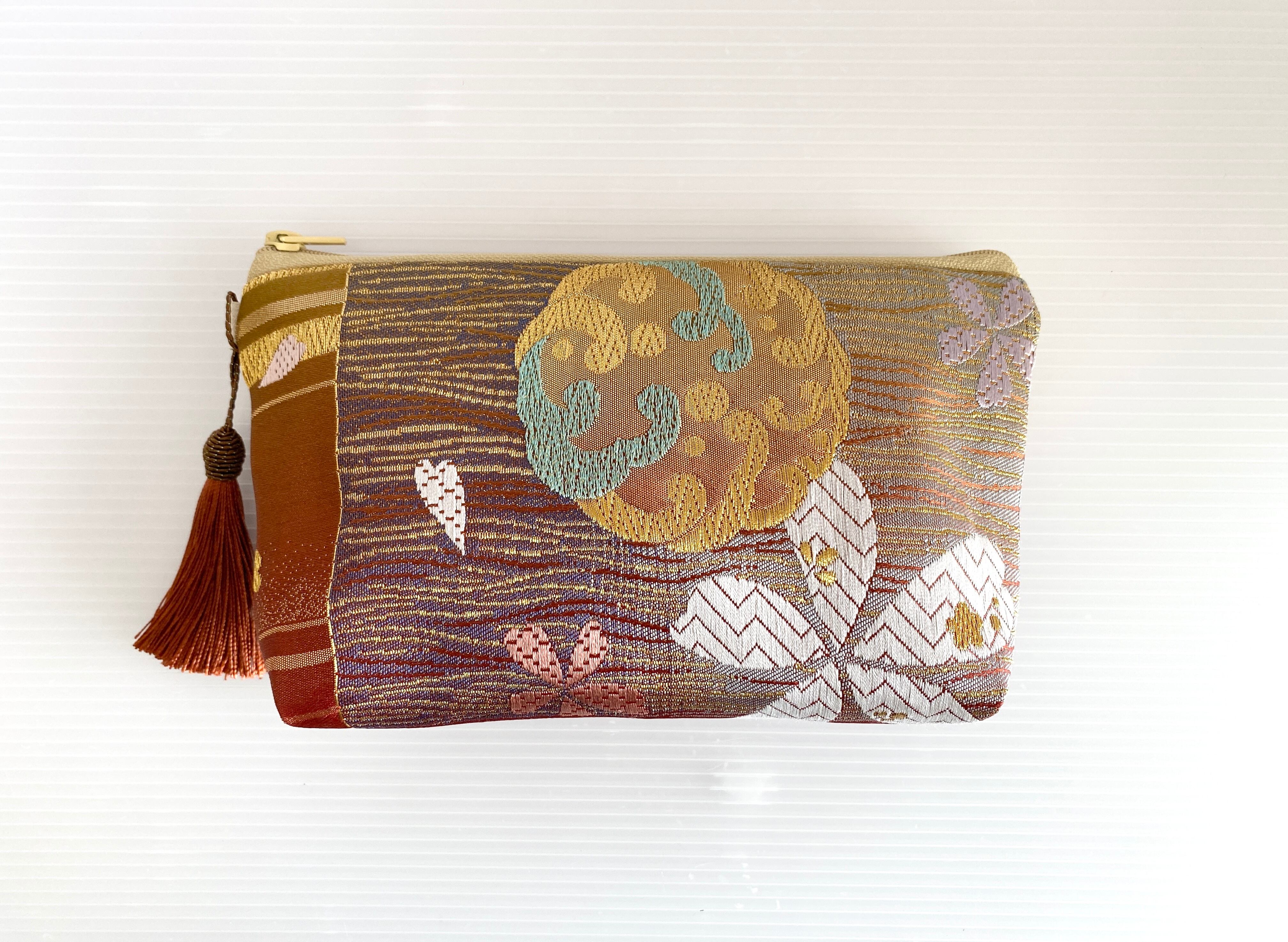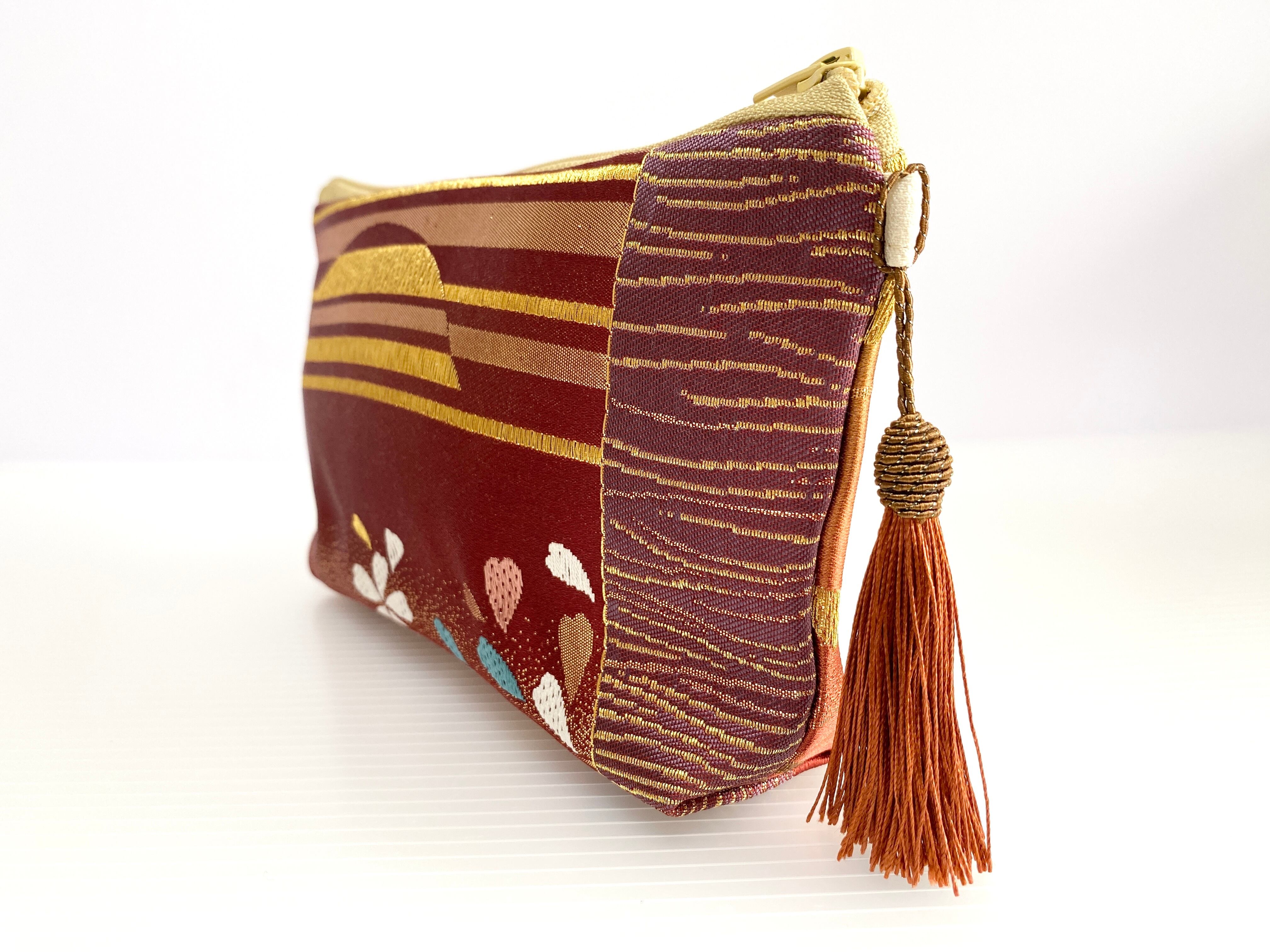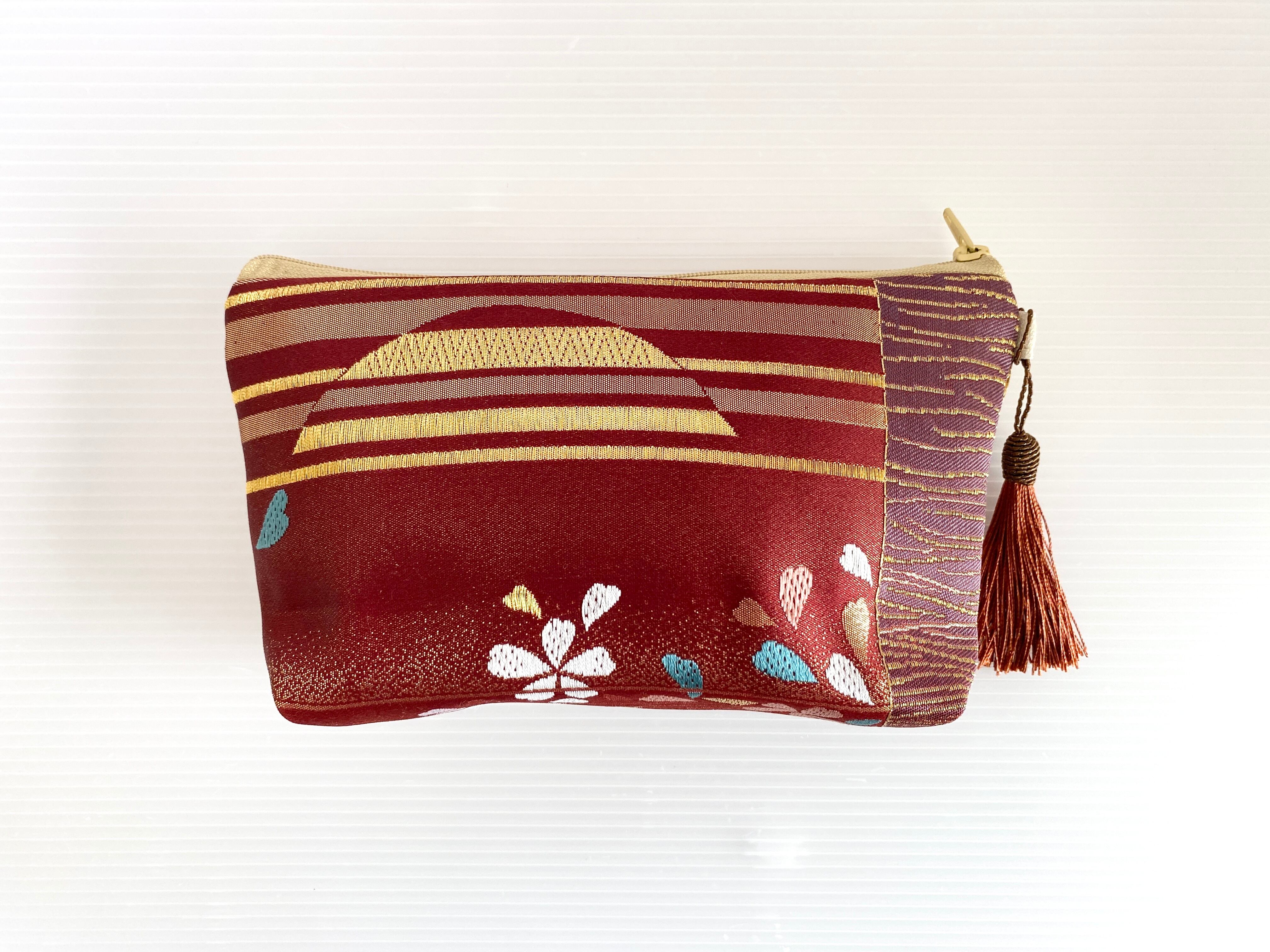 日本の古着物帯をリメイクして作製したポーチでハンドメイド品です