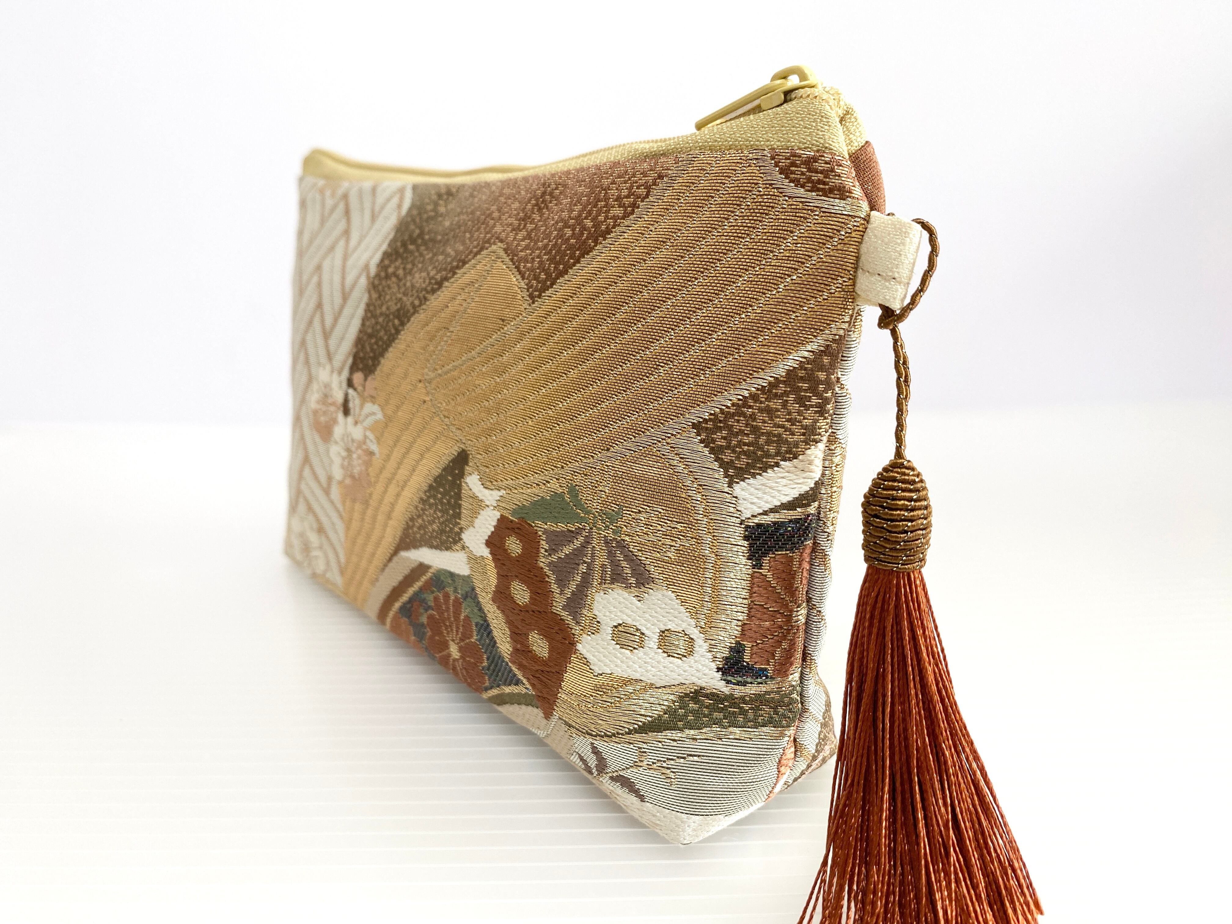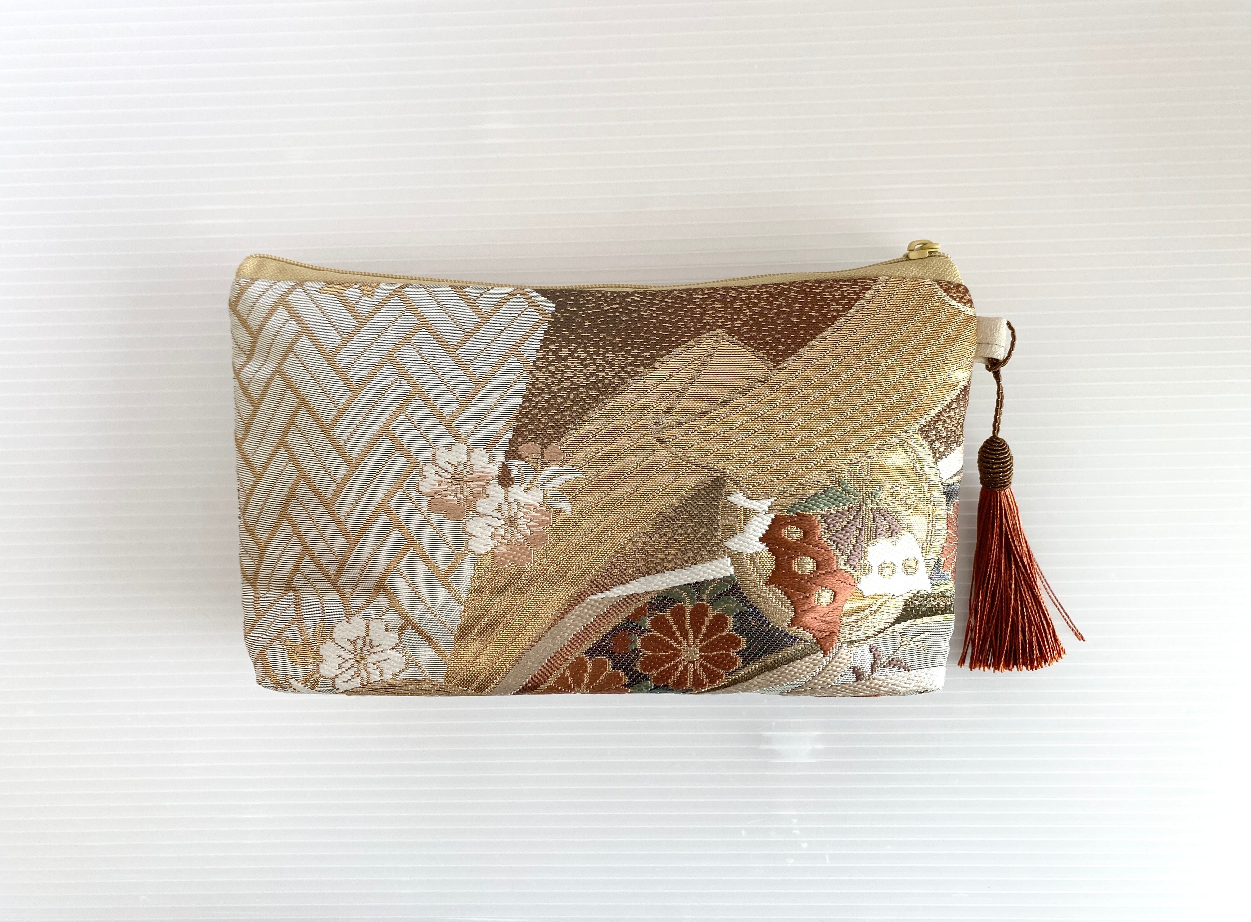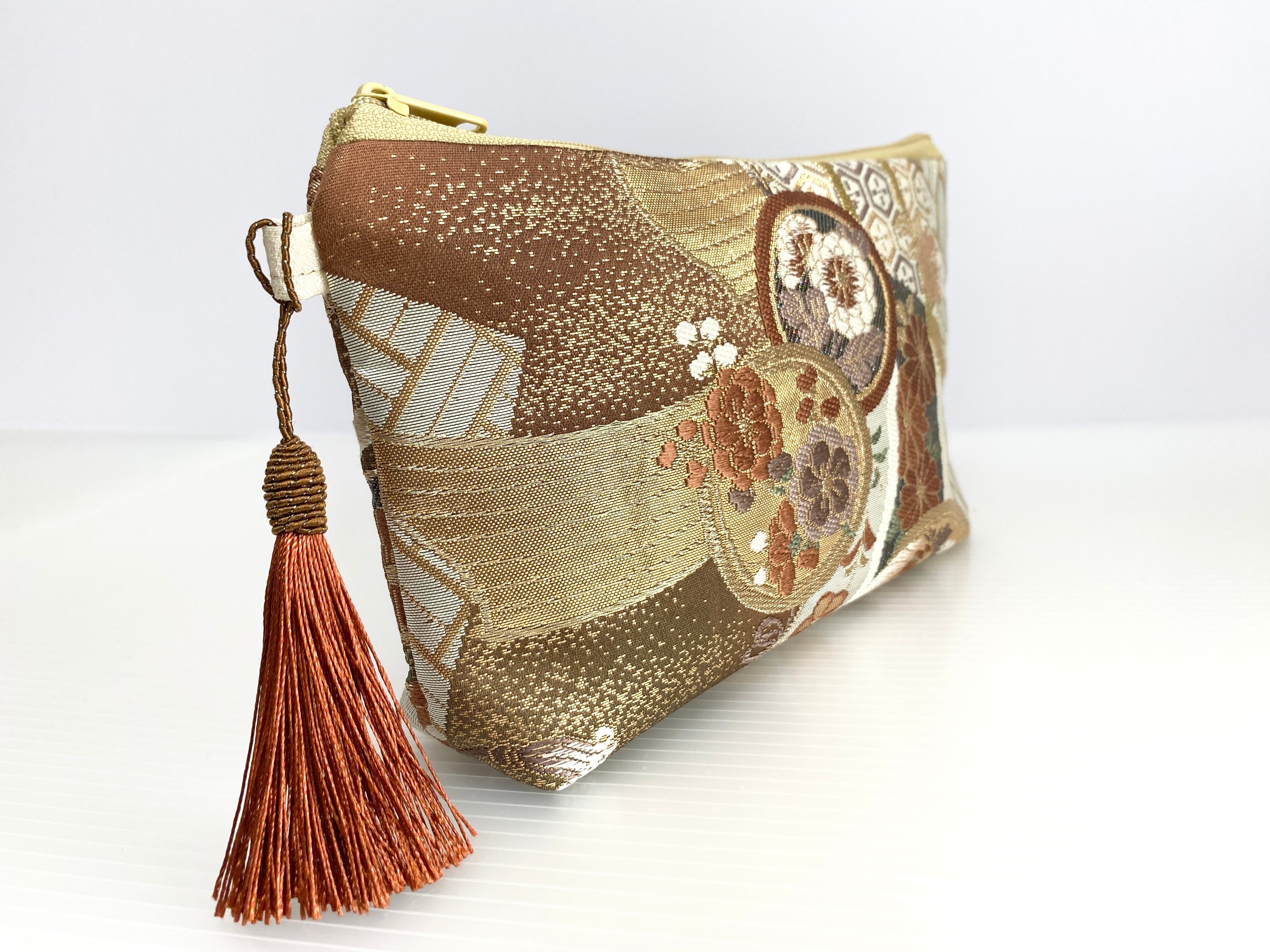 日本の古着物帯をリメイクして作製したポーチでハンドメイド品です
