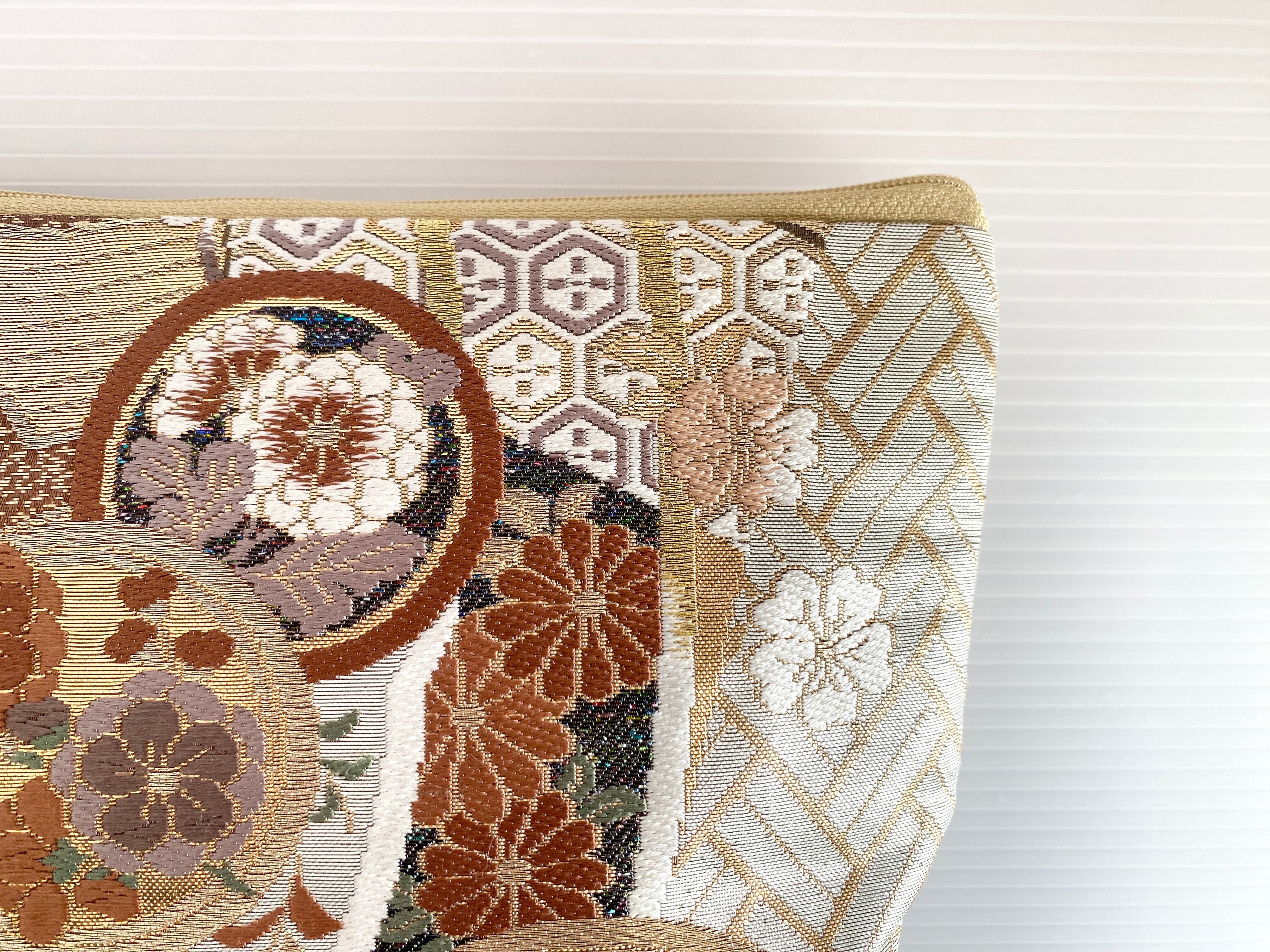 大人可愛いセレブポーチ帯リメイクポーチ化粧ポーチマルチポーチ着物リメイクポーチハンドメイド送料込みNO.6228