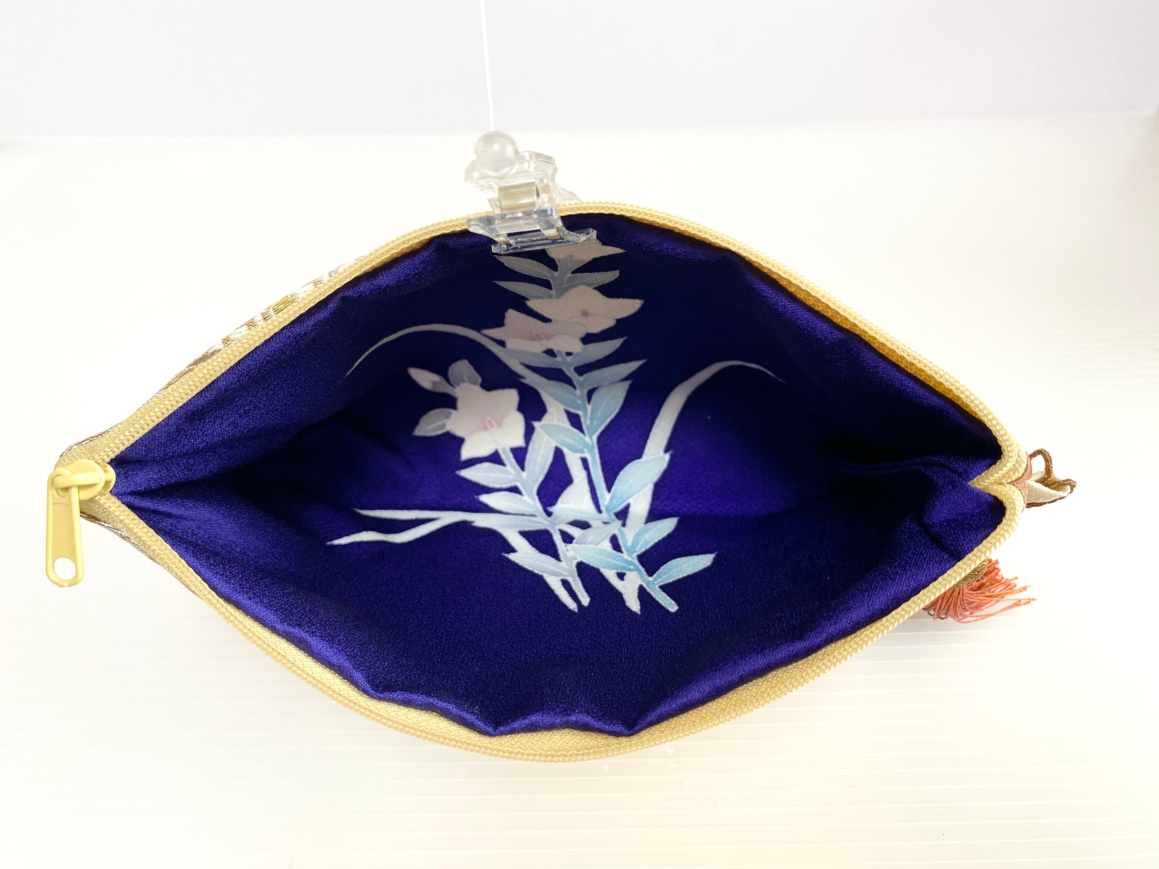 内側の裏生地にも着物布を使用しておりますのでしっかりとした造りの帯リメイクポーチ着物リメイクポーチ