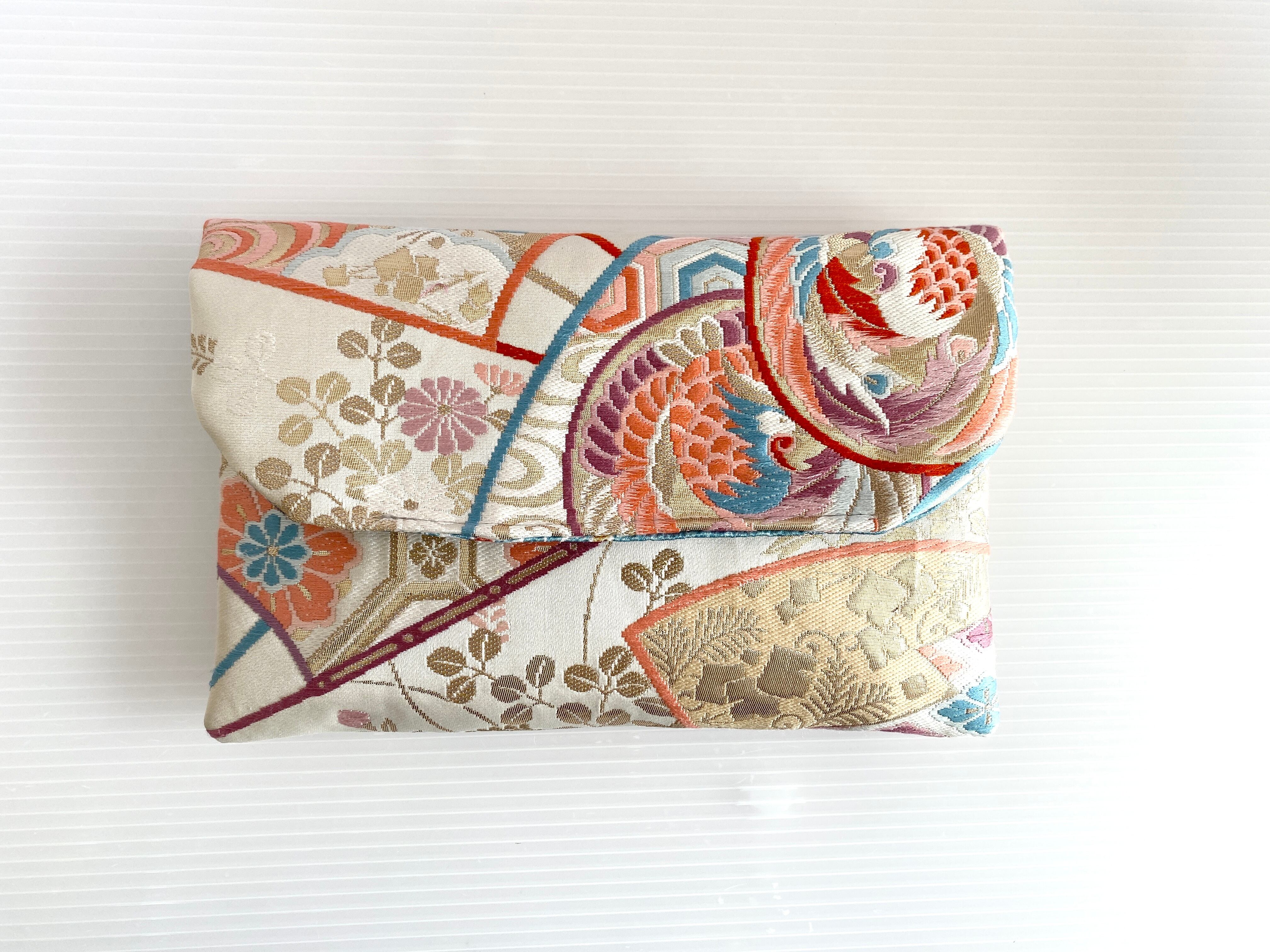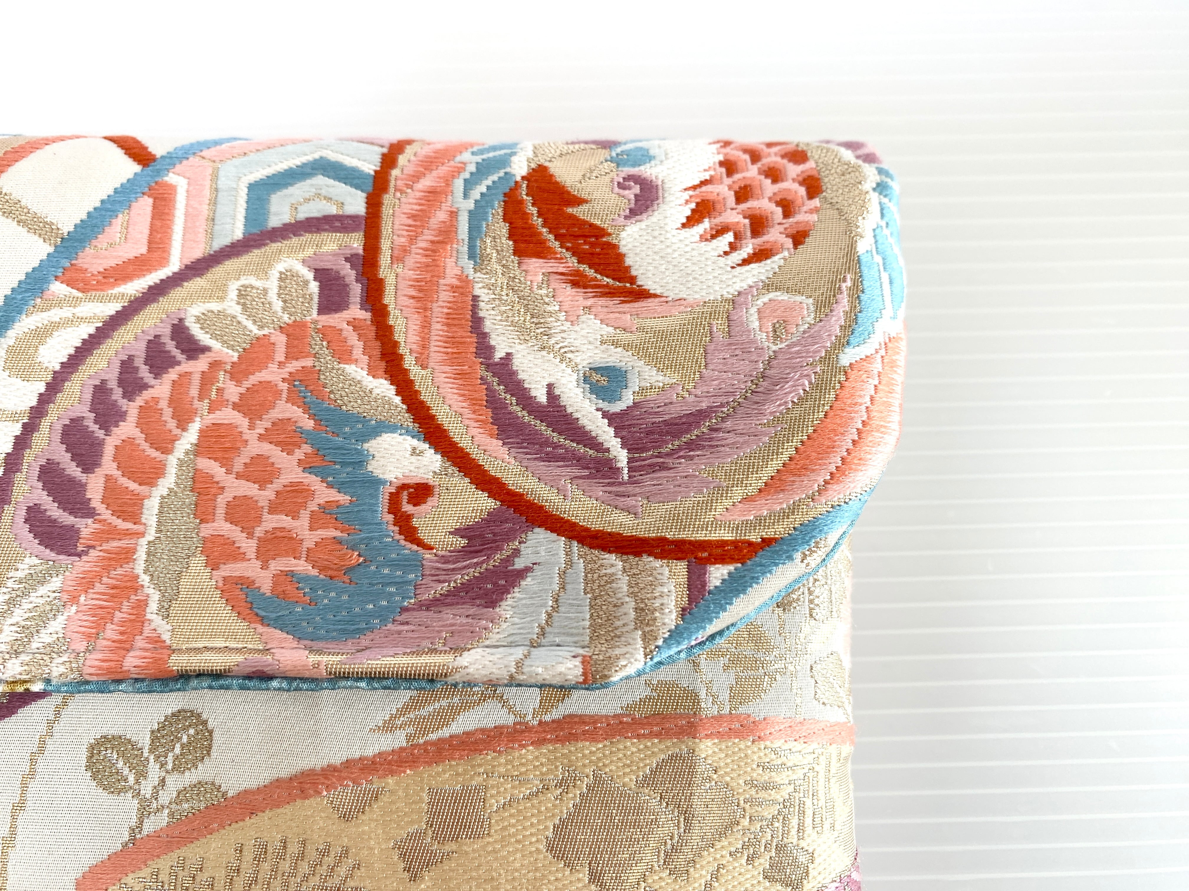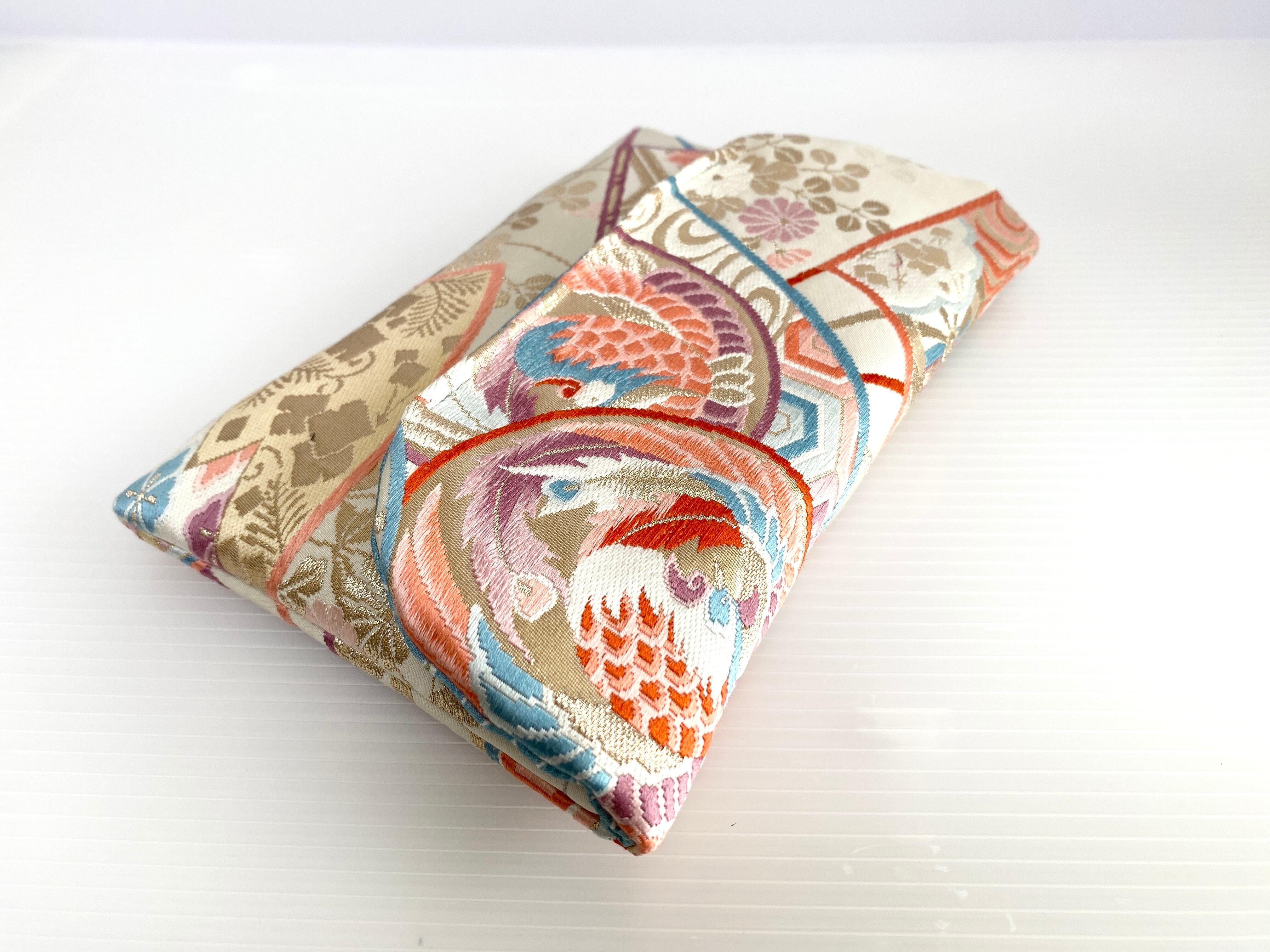 触り心地が滑らかで手にしっくりとくる安心感。絵柄の鮮やかさは日本の帯ならではの存在感で素晴らしく華やかな美しさです