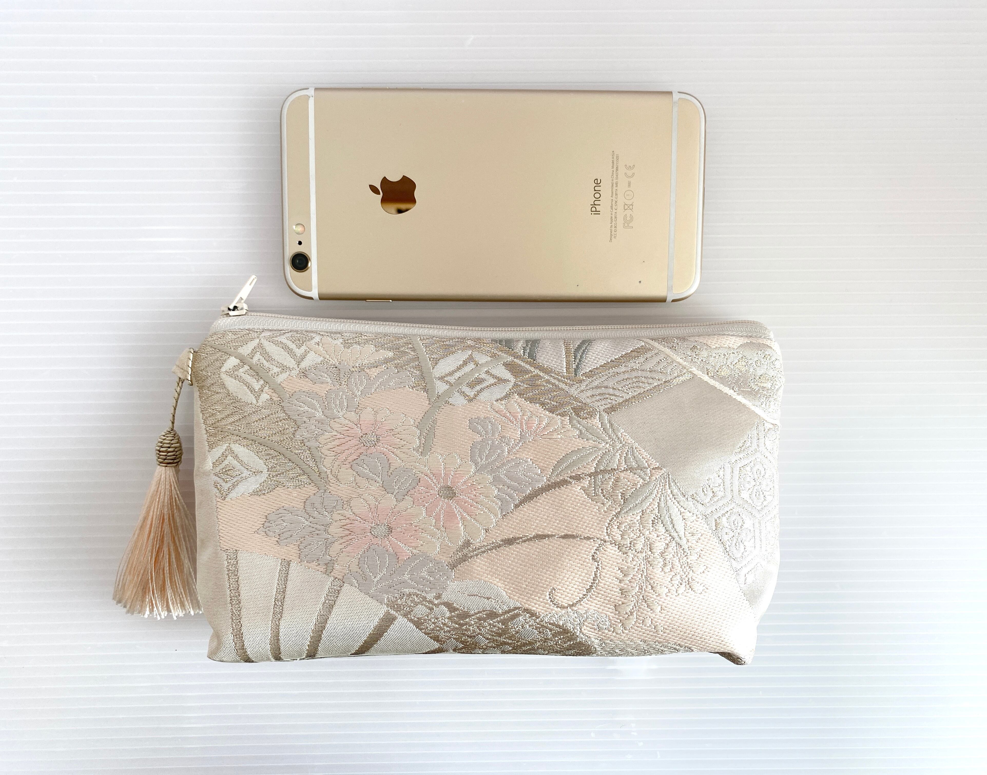大人可愛いセレブポーチ帯リメイクポーチ化粧ポーチマルチポーチ着物リメイクポーチハンドメイド送料込みNO.6255