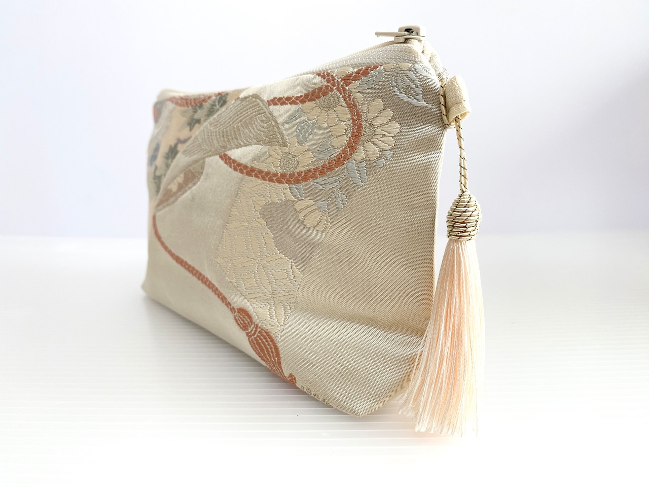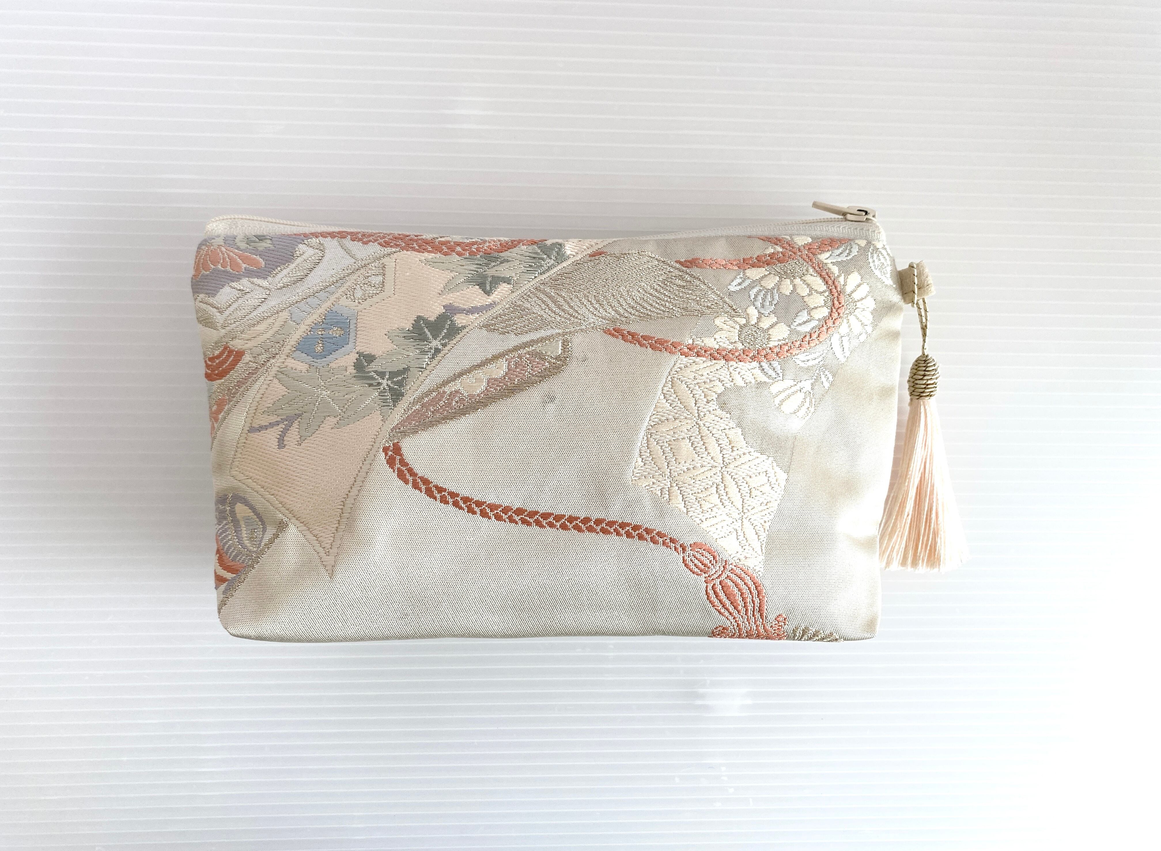 日本の古着物帯をリメイクして作製したポーチでハンドメイド品です