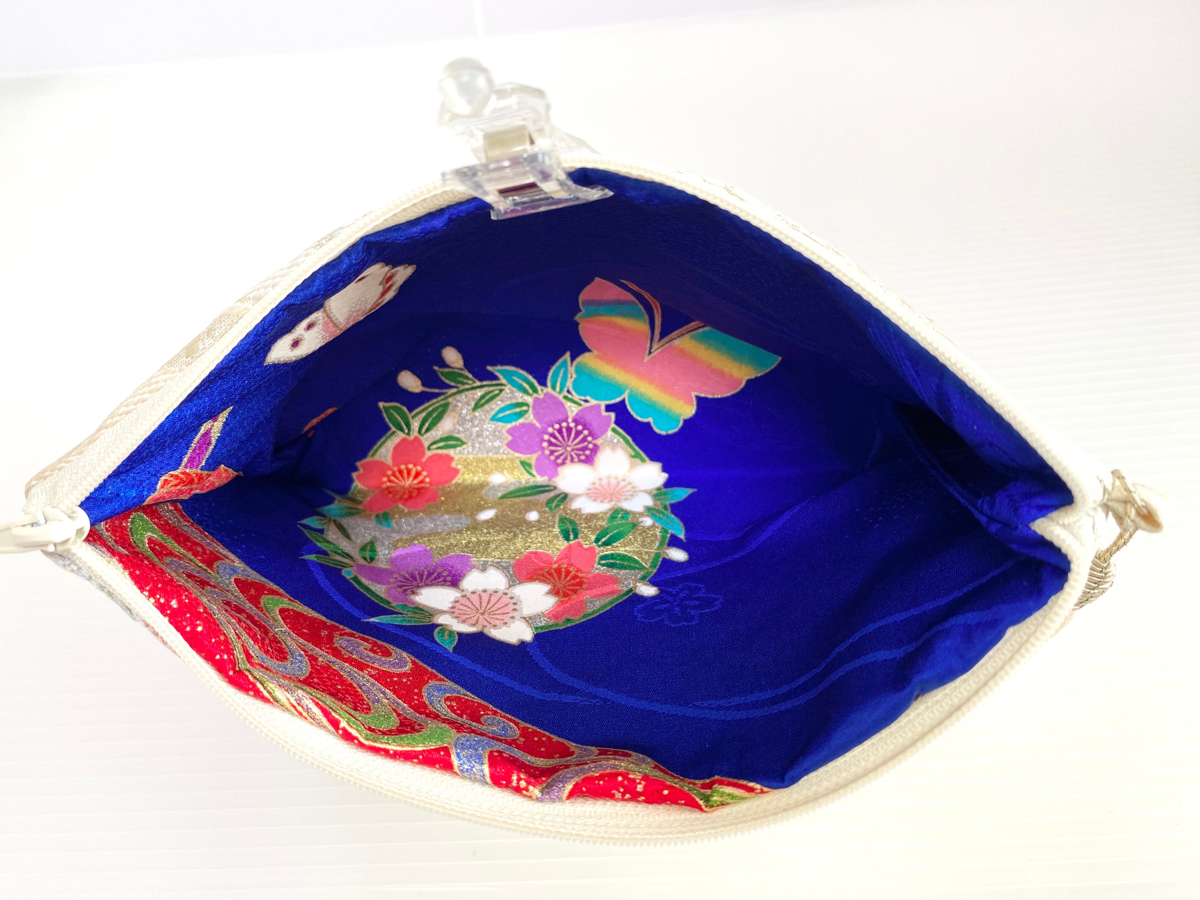 内側の裏生地にも着物布を使用しておりますのでしっかりとした造りの帯リメイクポーチ着物リメイクポーチ