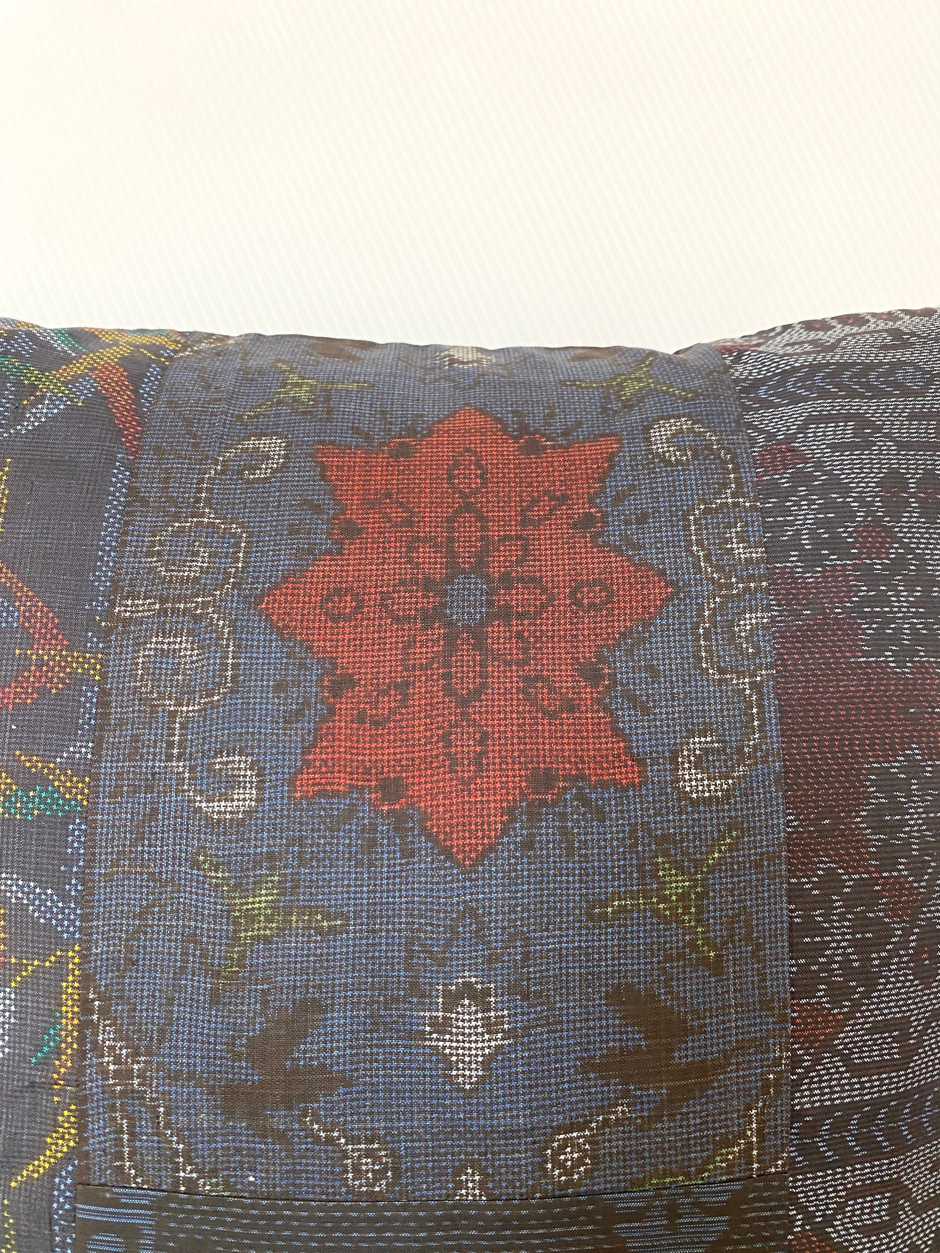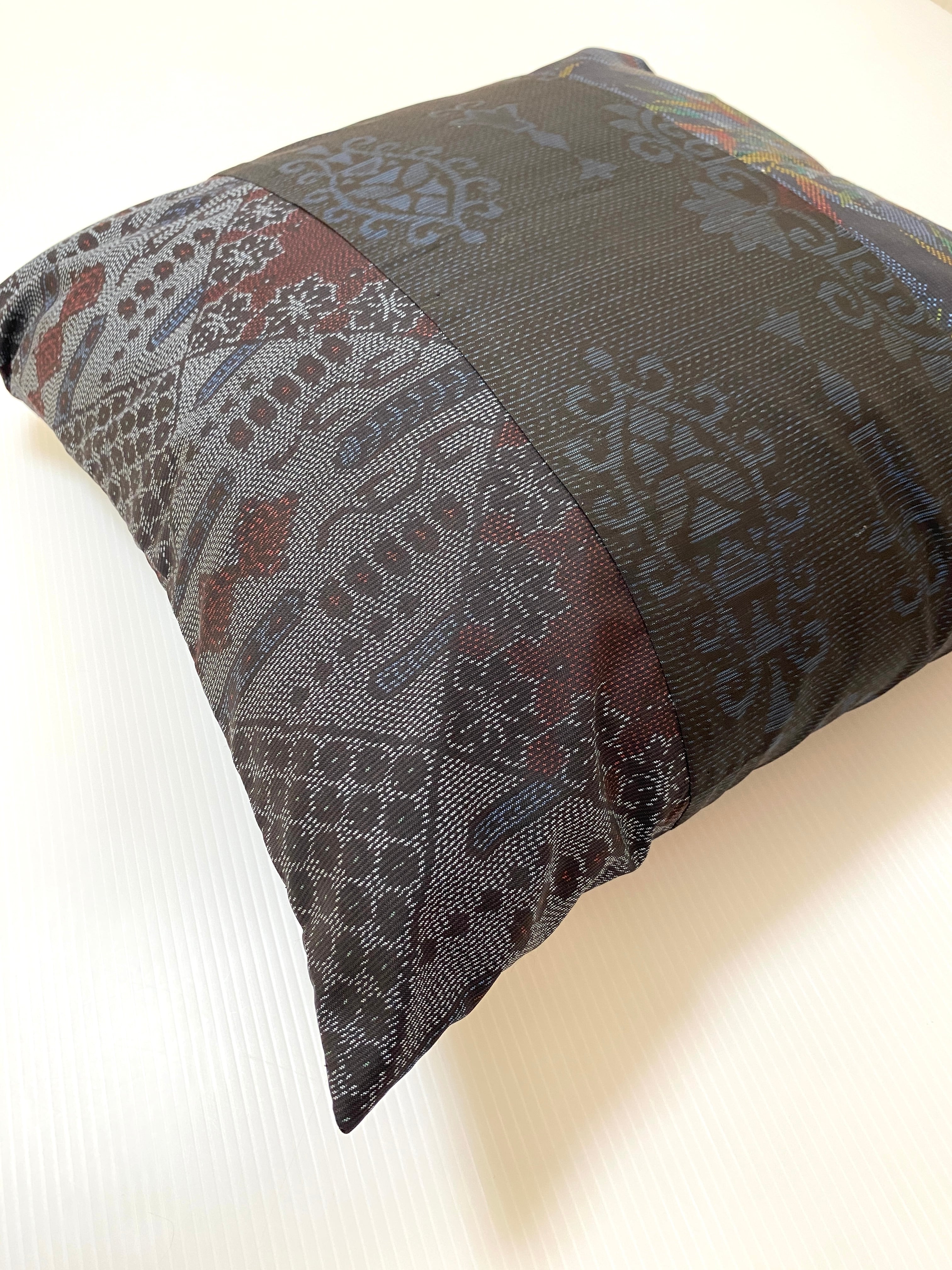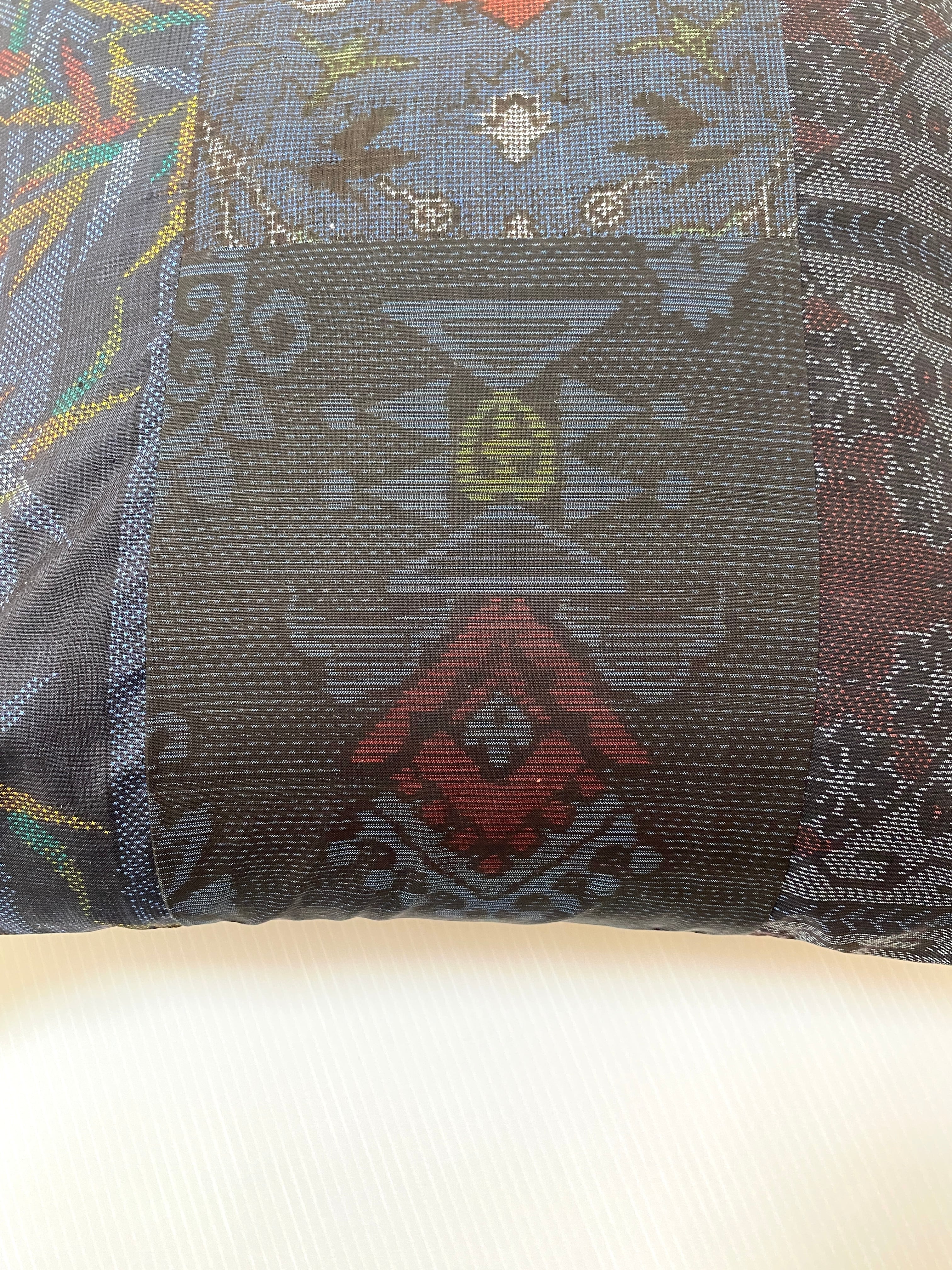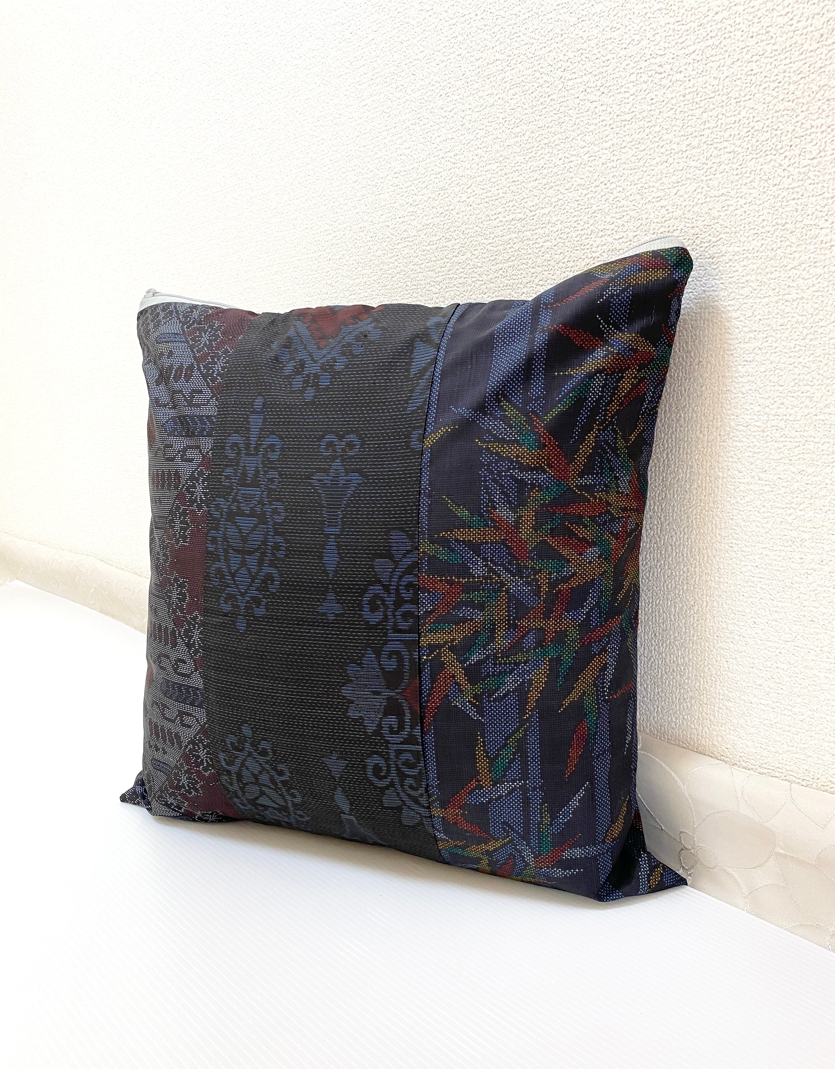 大島の古着物をリメイクして作製したクッションカバー座布団カバーです