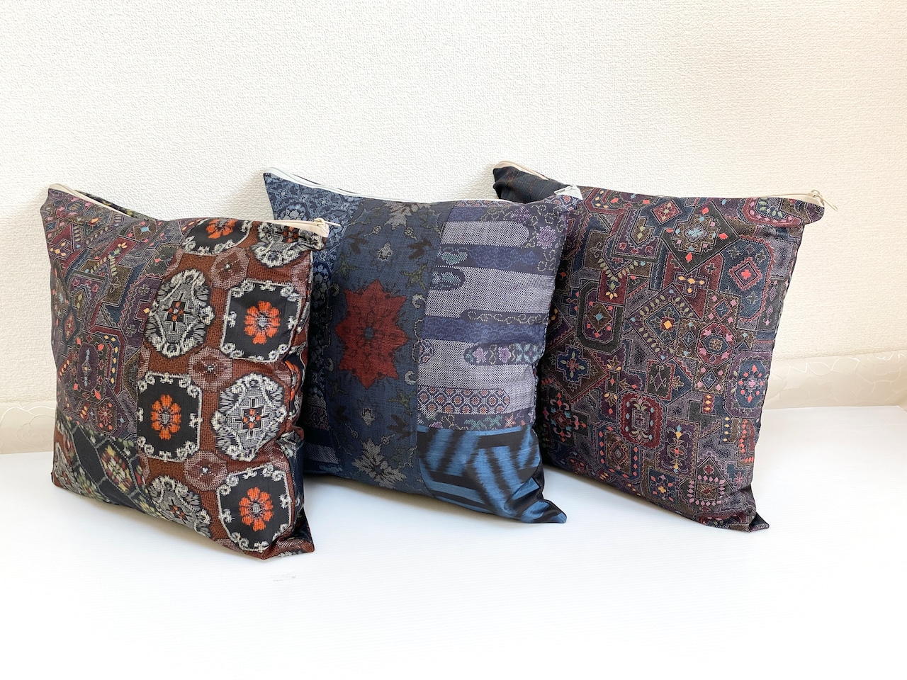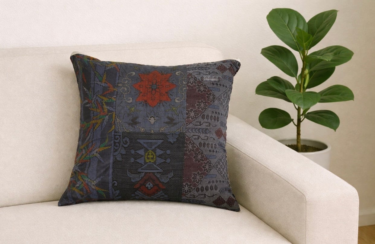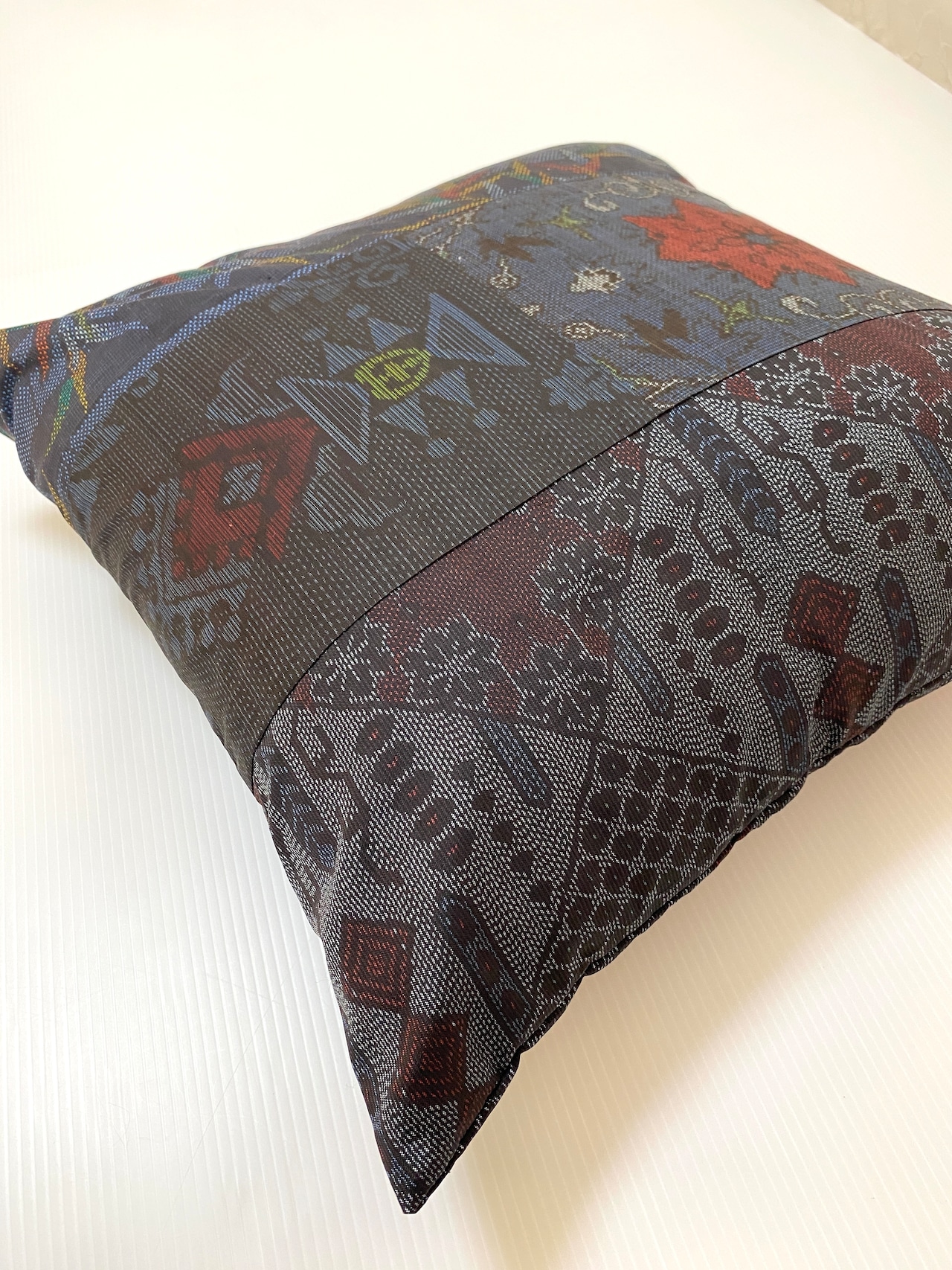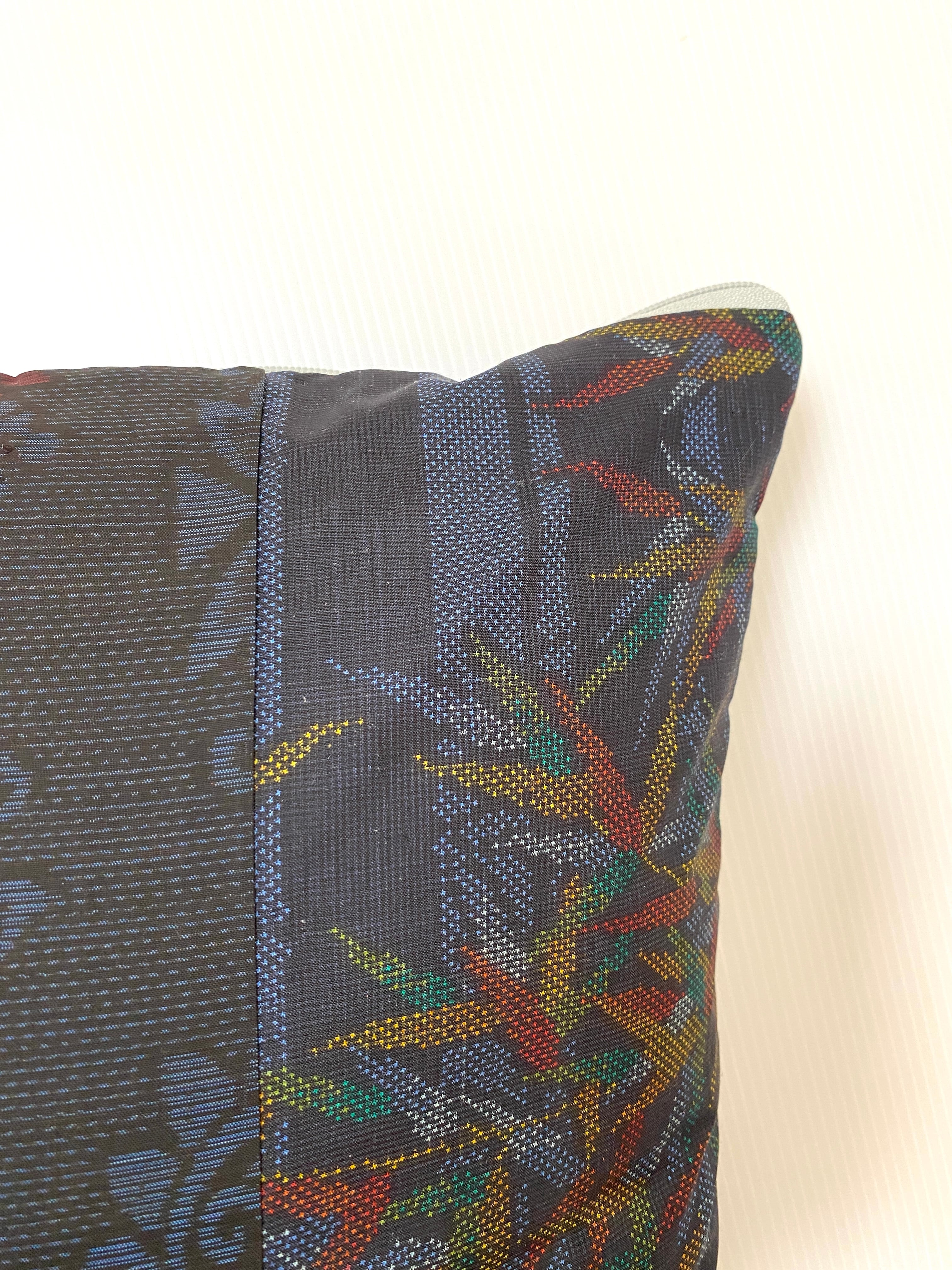 大島の古着物をリメイクして作製したクッションカバー座布団カバーです