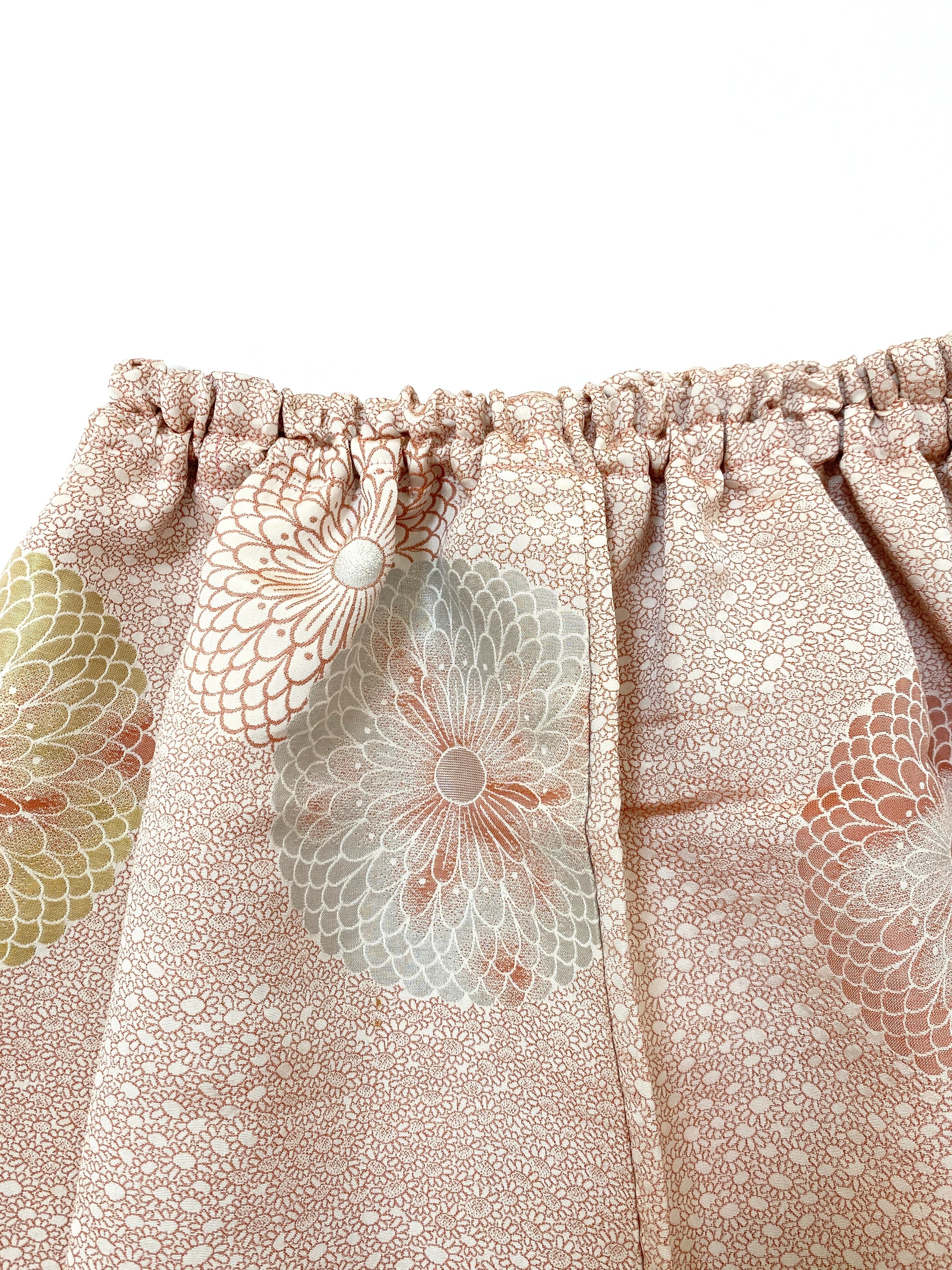 着物をリメイクして作製したウエストゴムロングスカートフリーサイズです