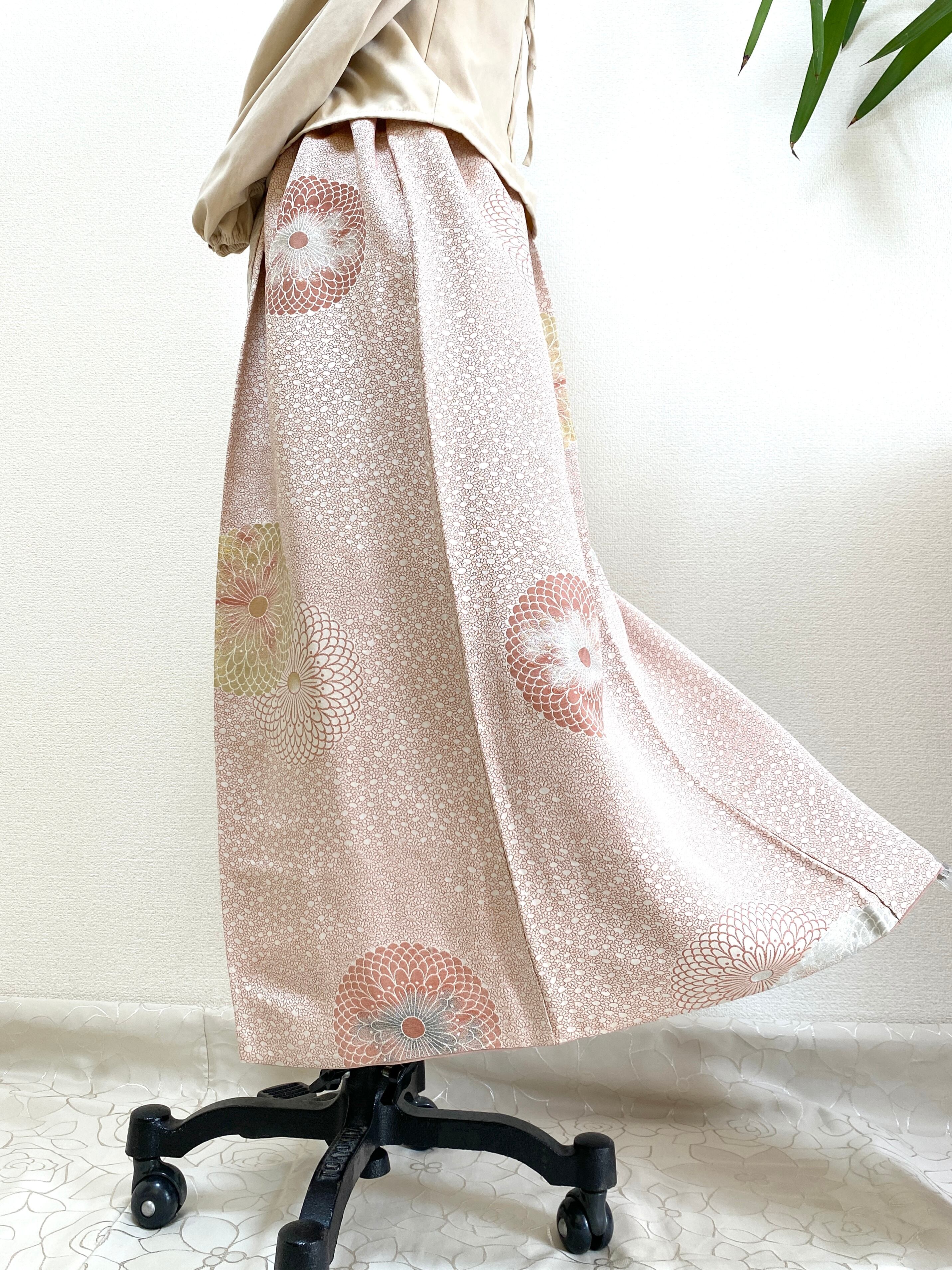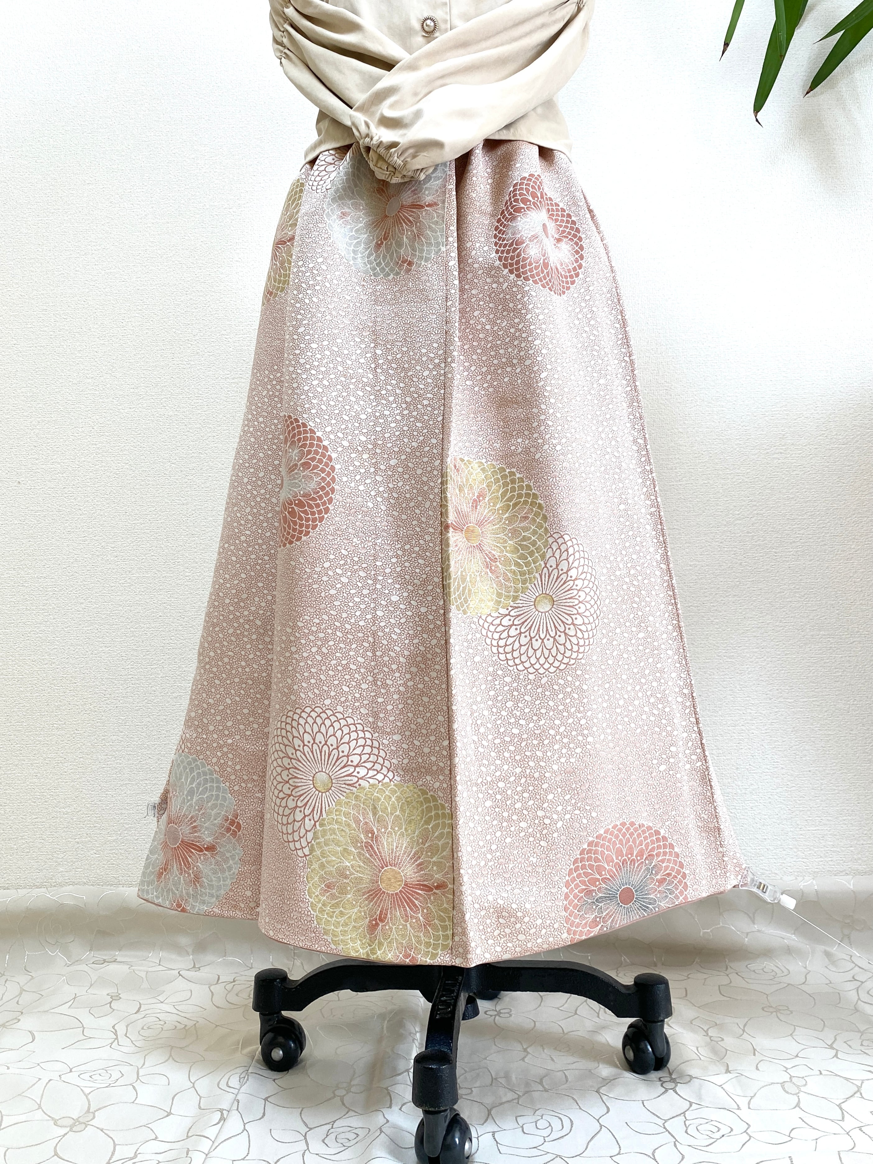 大人可愛いセレブ着物スカートフリーサイズ着物リメイクウエストゴムロングスカートフリーサイズ送料込みハンドメイドNO.6265