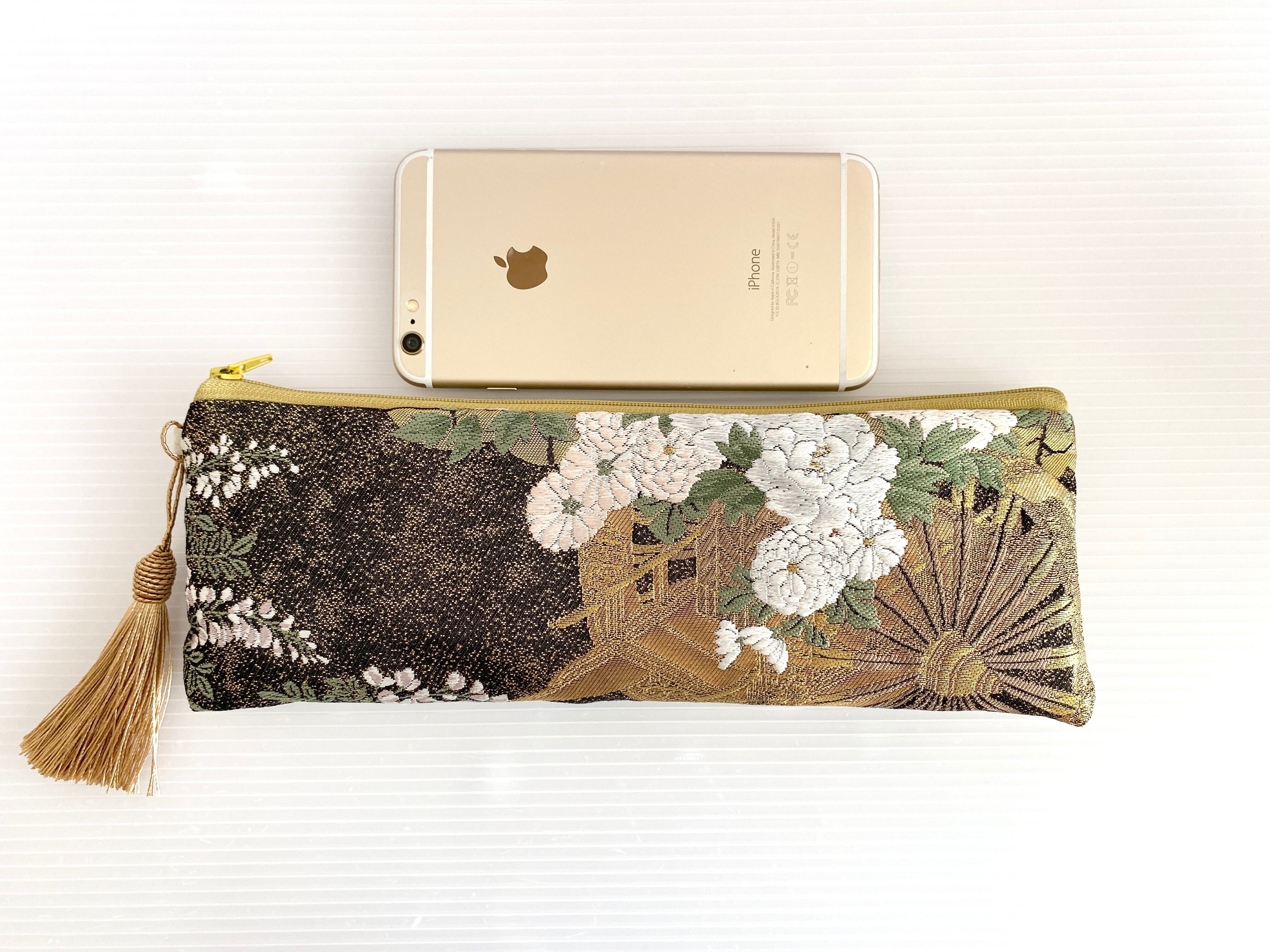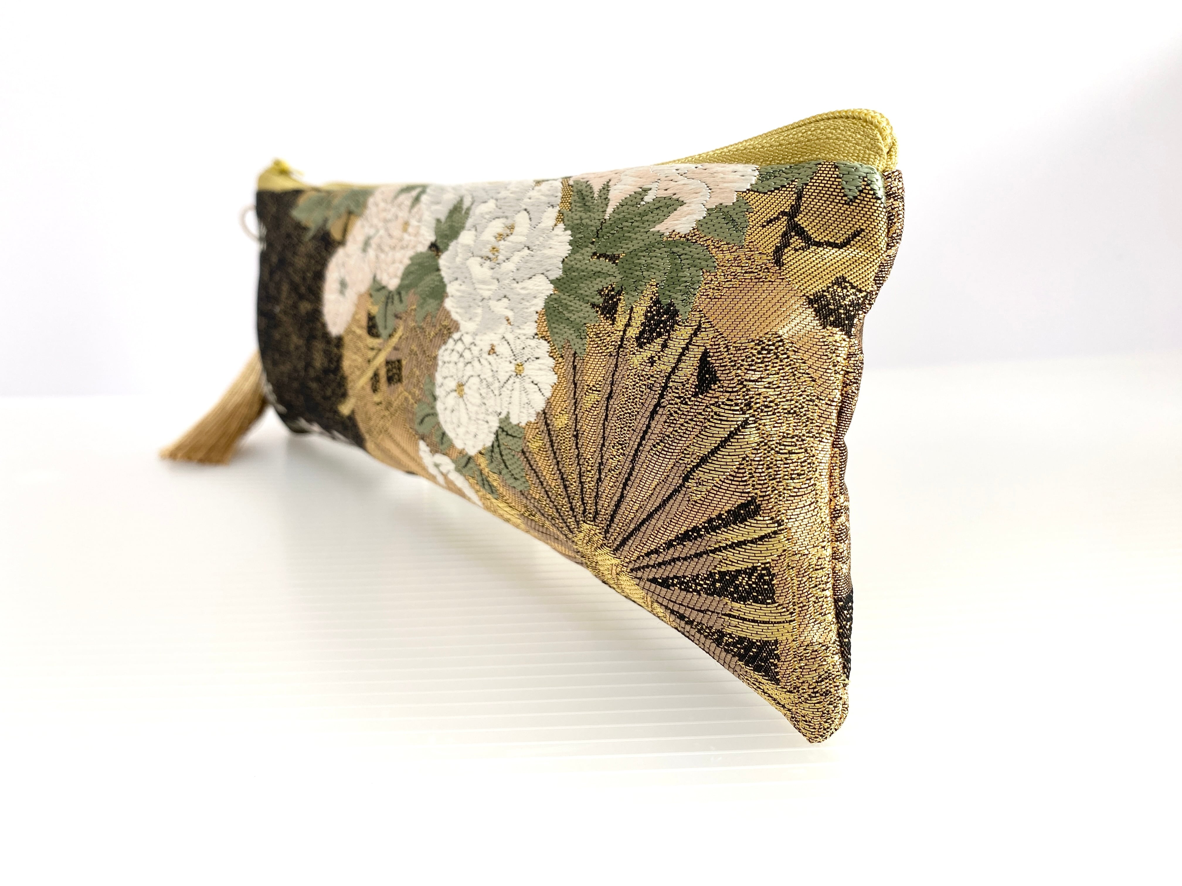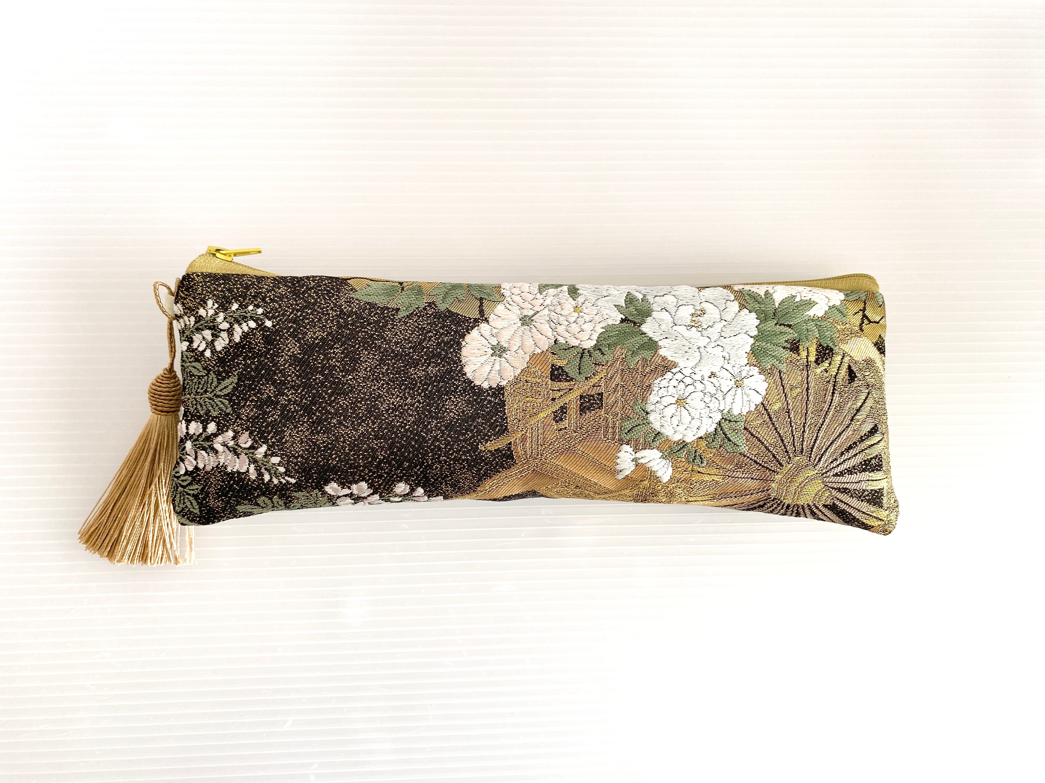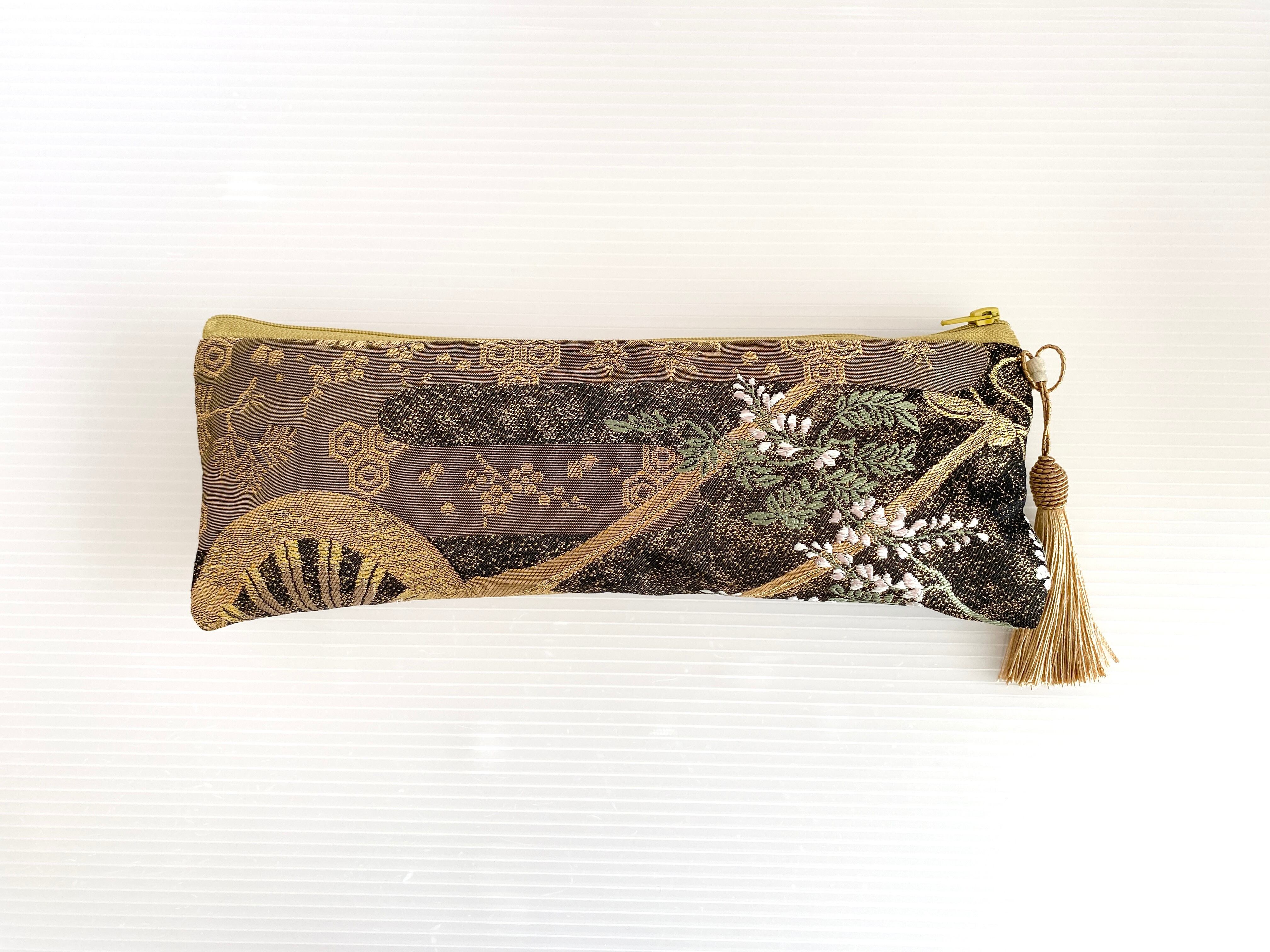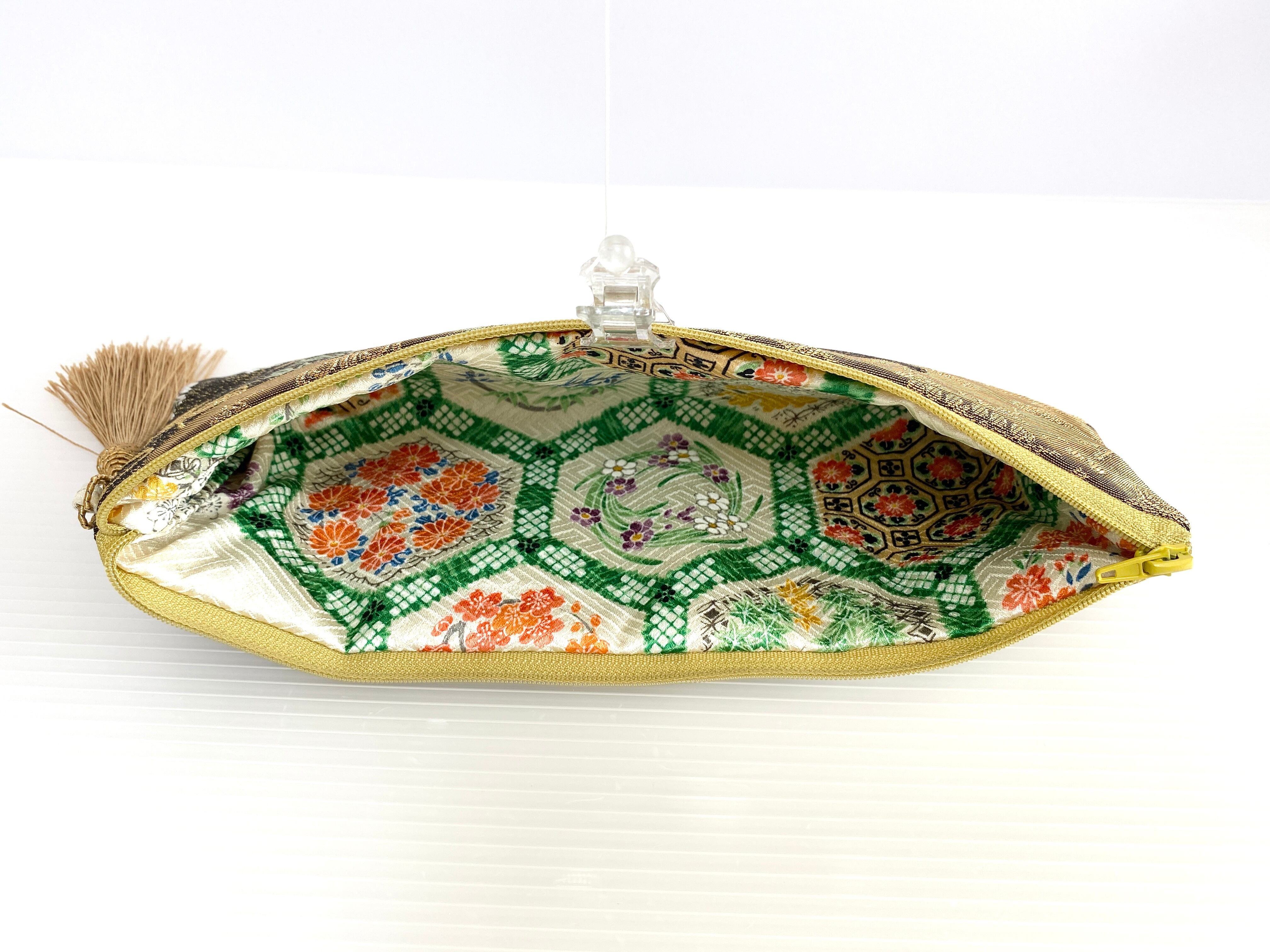 日本の古着物帯をリメイクして作製したポーチでハンドメイド品です
