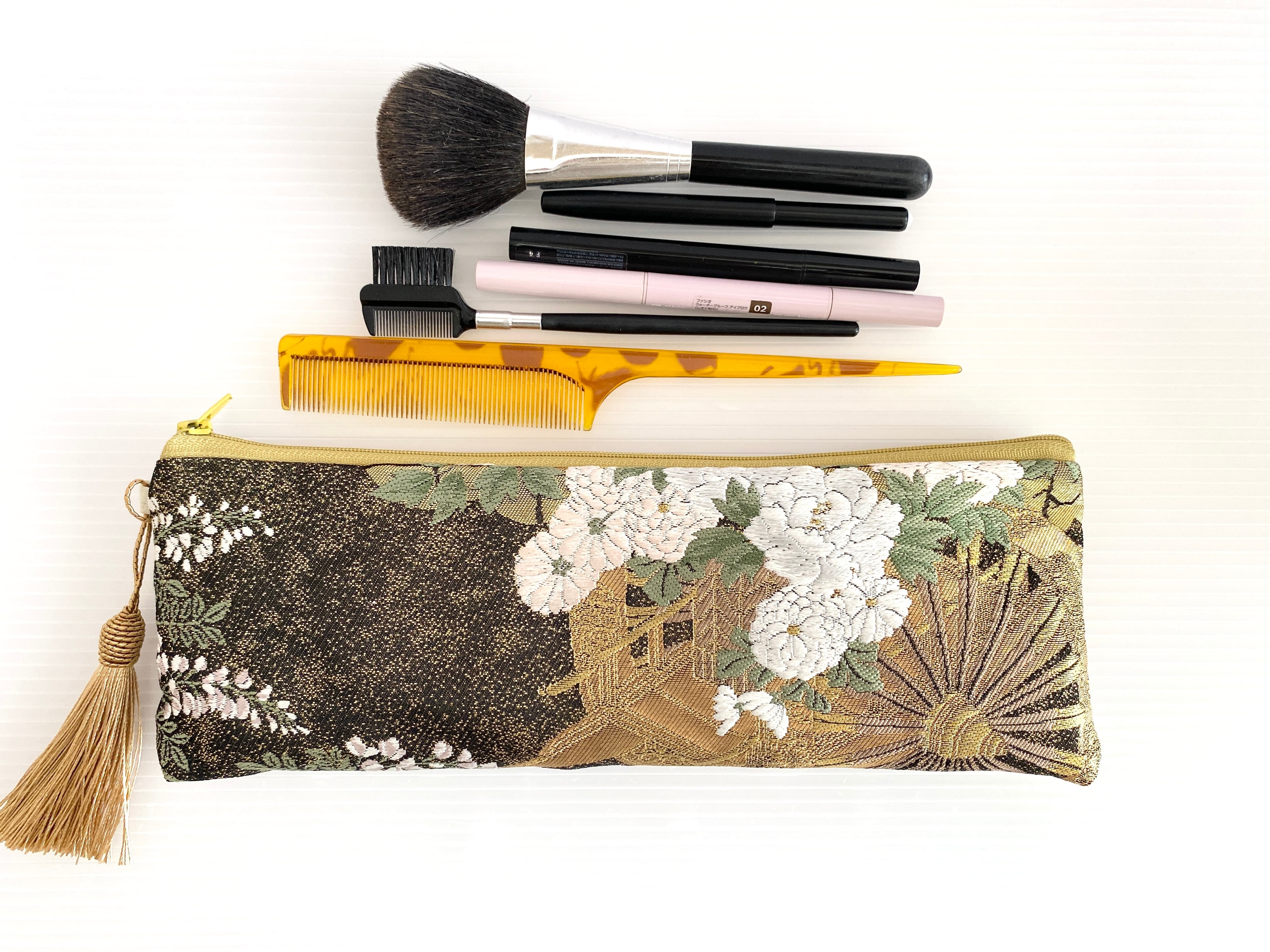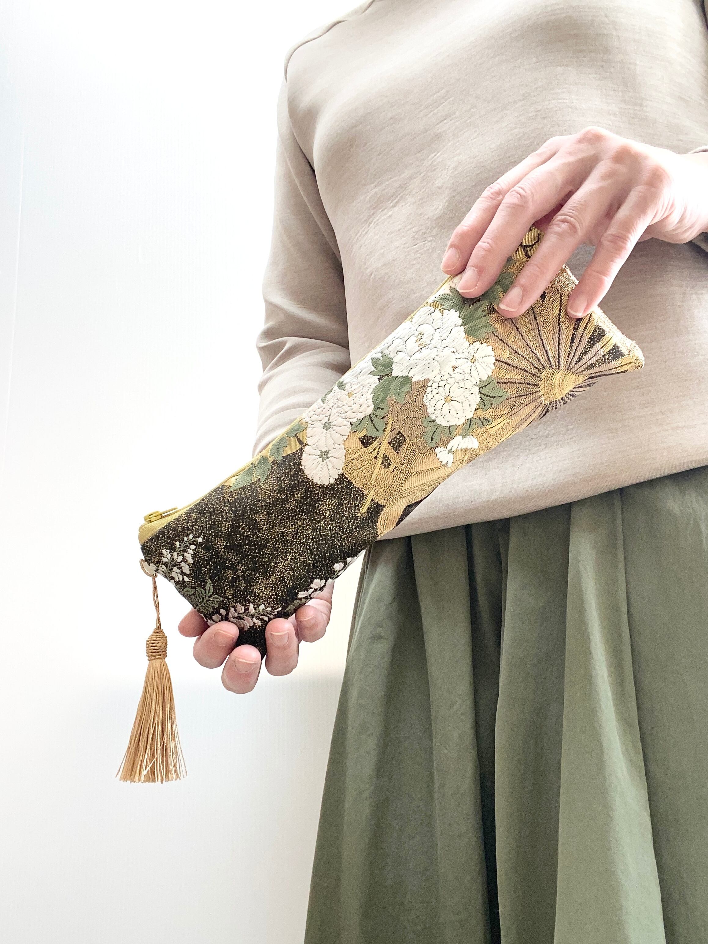 横長ポーチ帯リメイクポーチ着物リメイクポーチ化粧ポーチ細長ポーチ扇子入れバッグインバッグ送料込みハンドメイドNO.6266