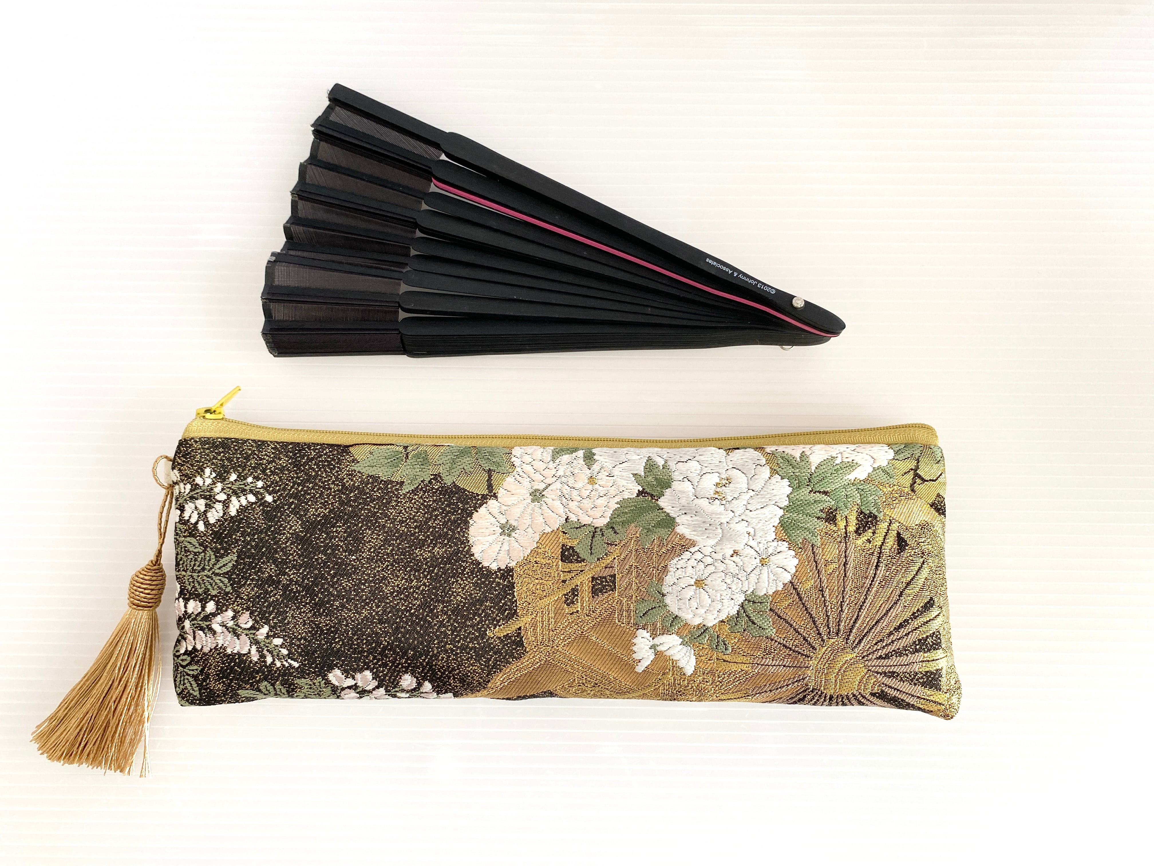 触り心地が滑らかで手にしっくりとくる安心感。絵柄の鮮やかさは日本の着物帯ならではの存在感で素晴らしく華やかな美しさ