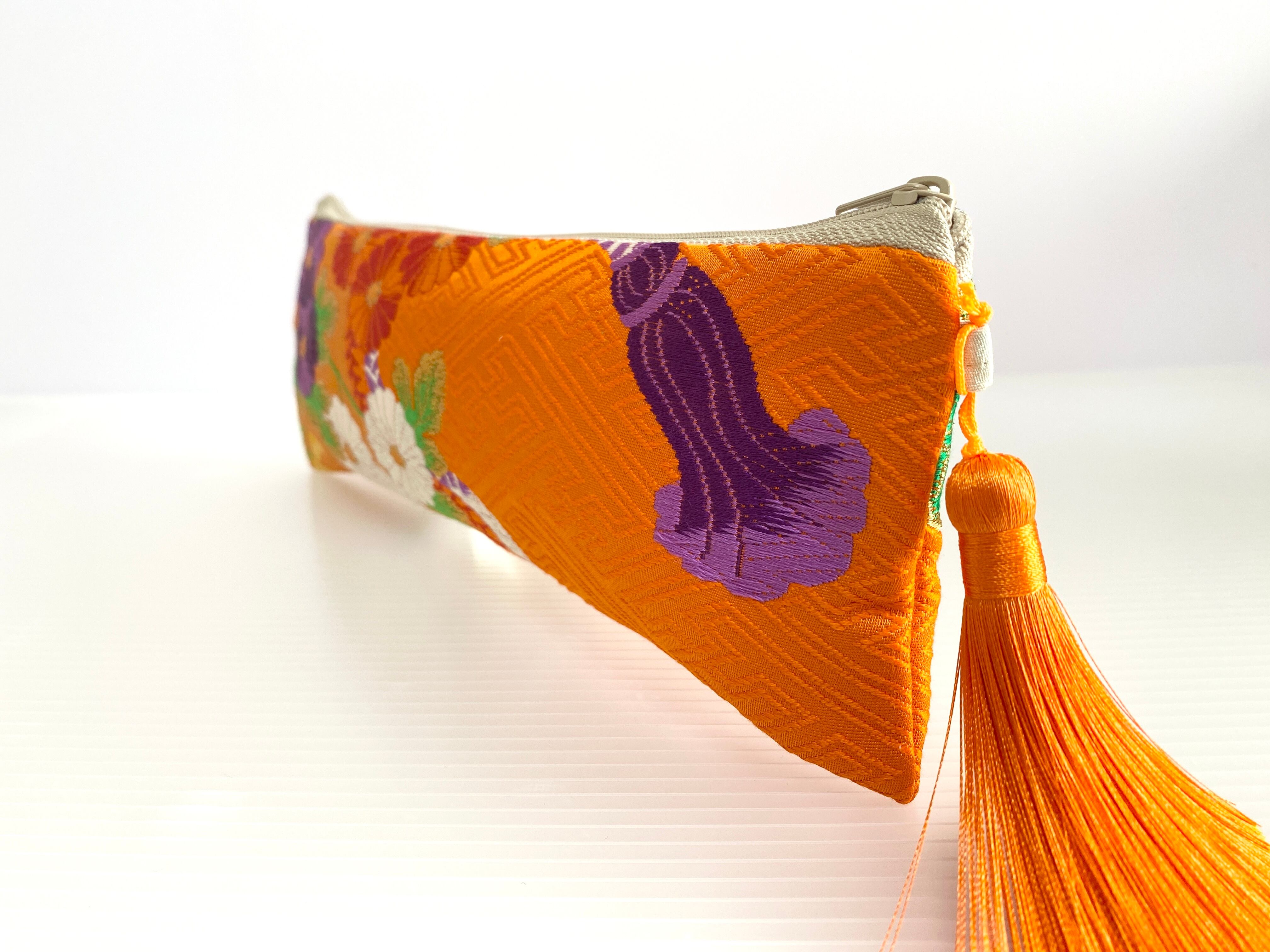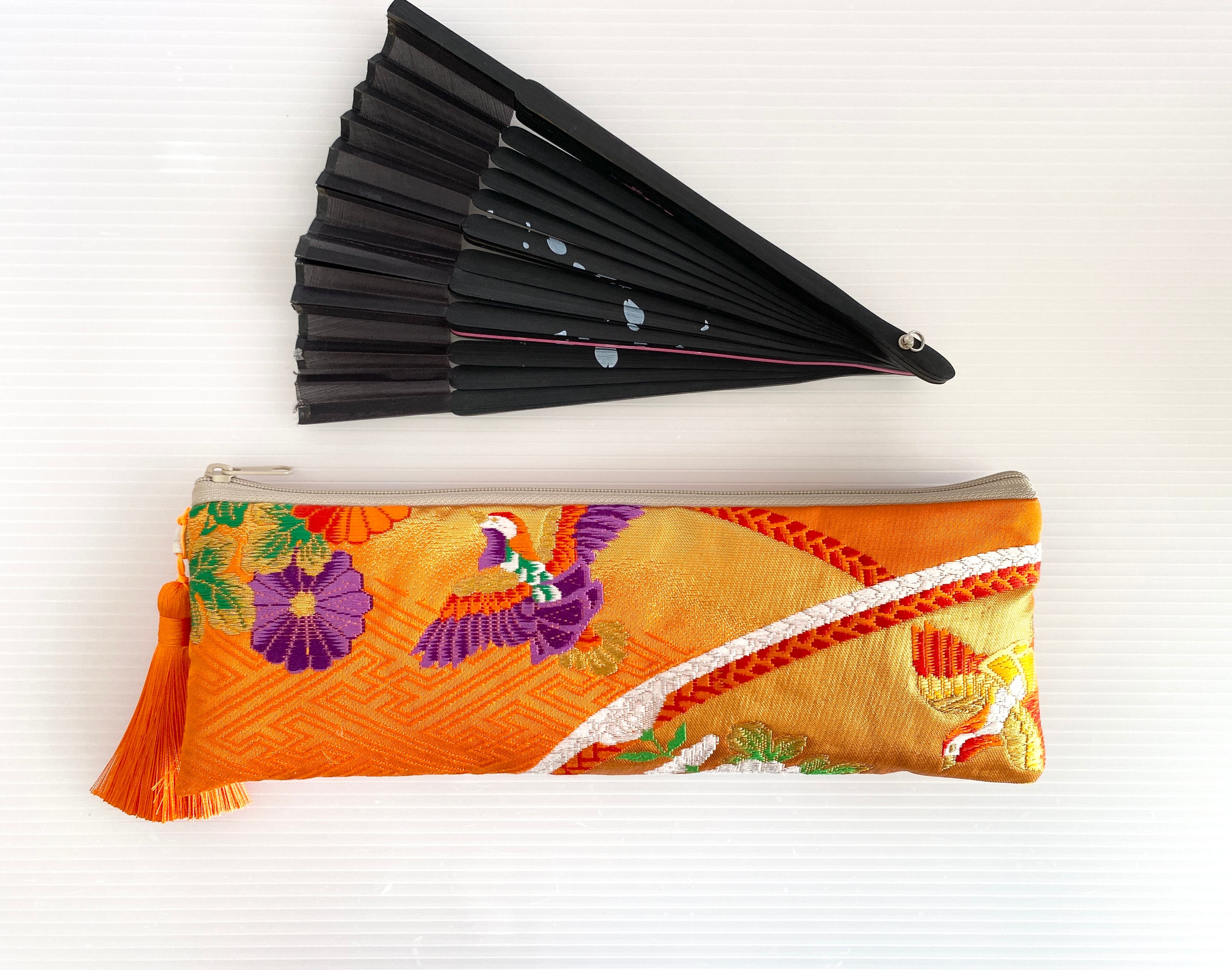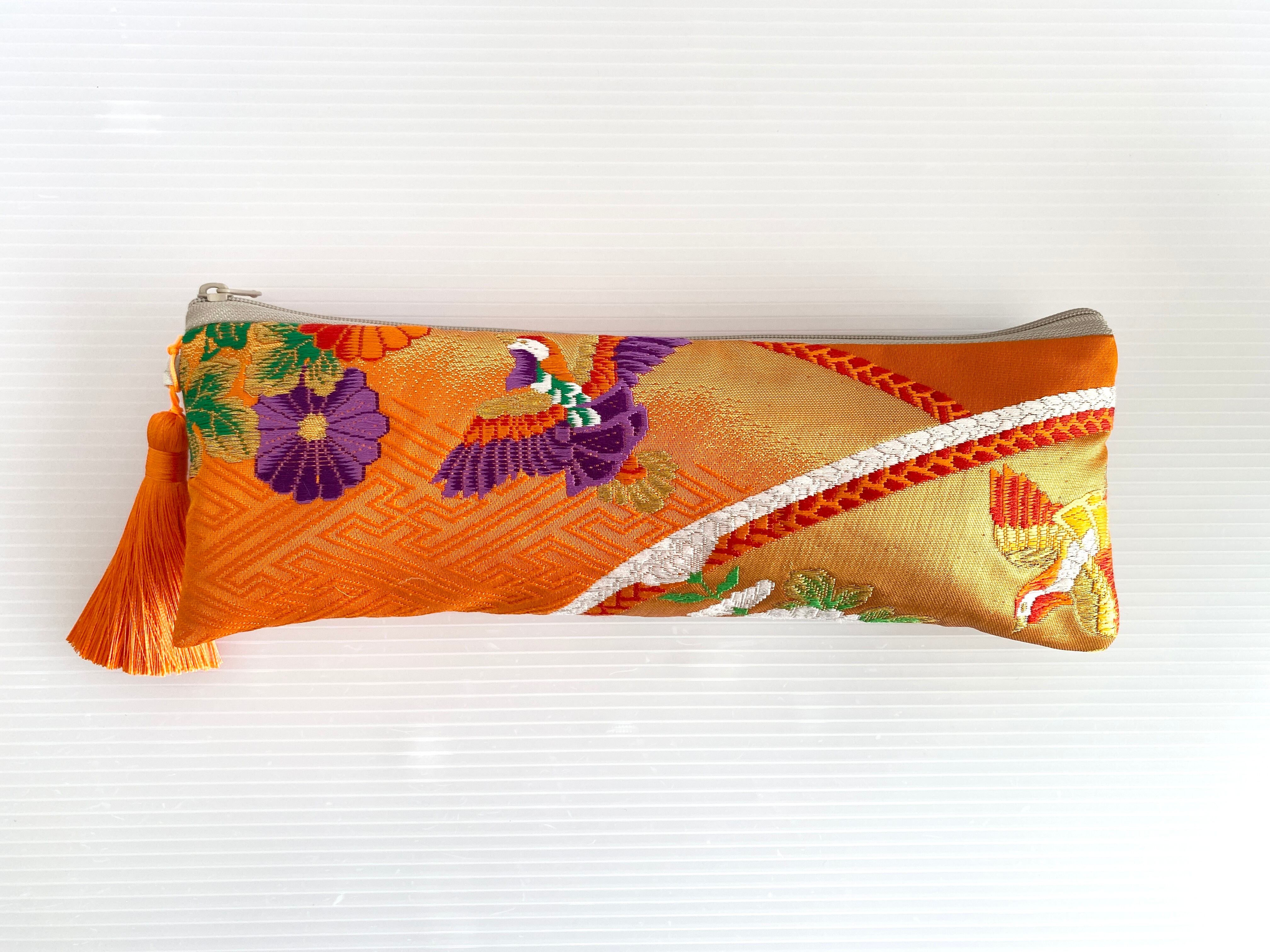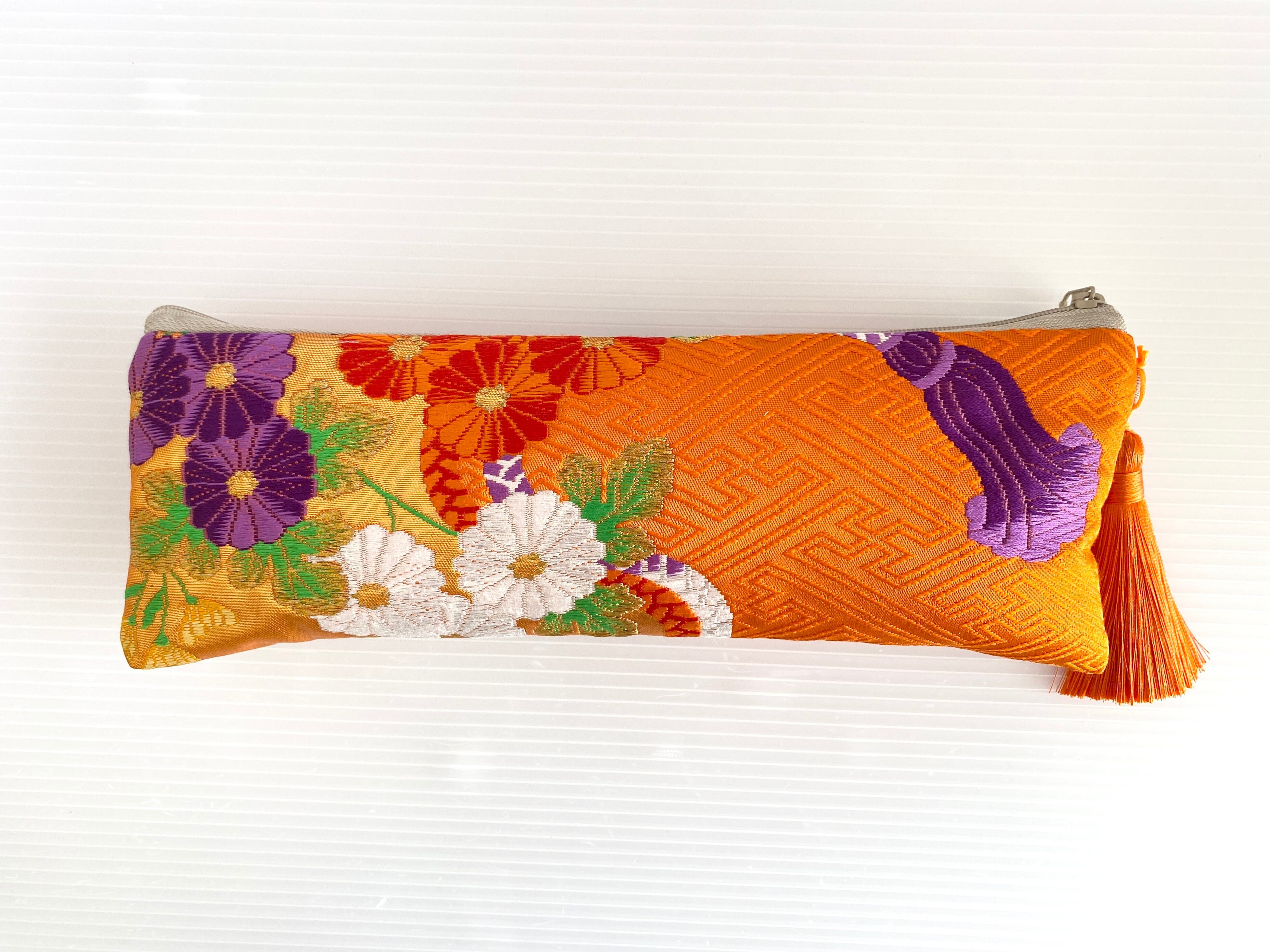 横長ポーチ帯リメイクポーチ着物リメイクポーチ化粧ポーチ細長ポーチ扇子入れバッグインバッグ送料込みハンドメイドNO.6268