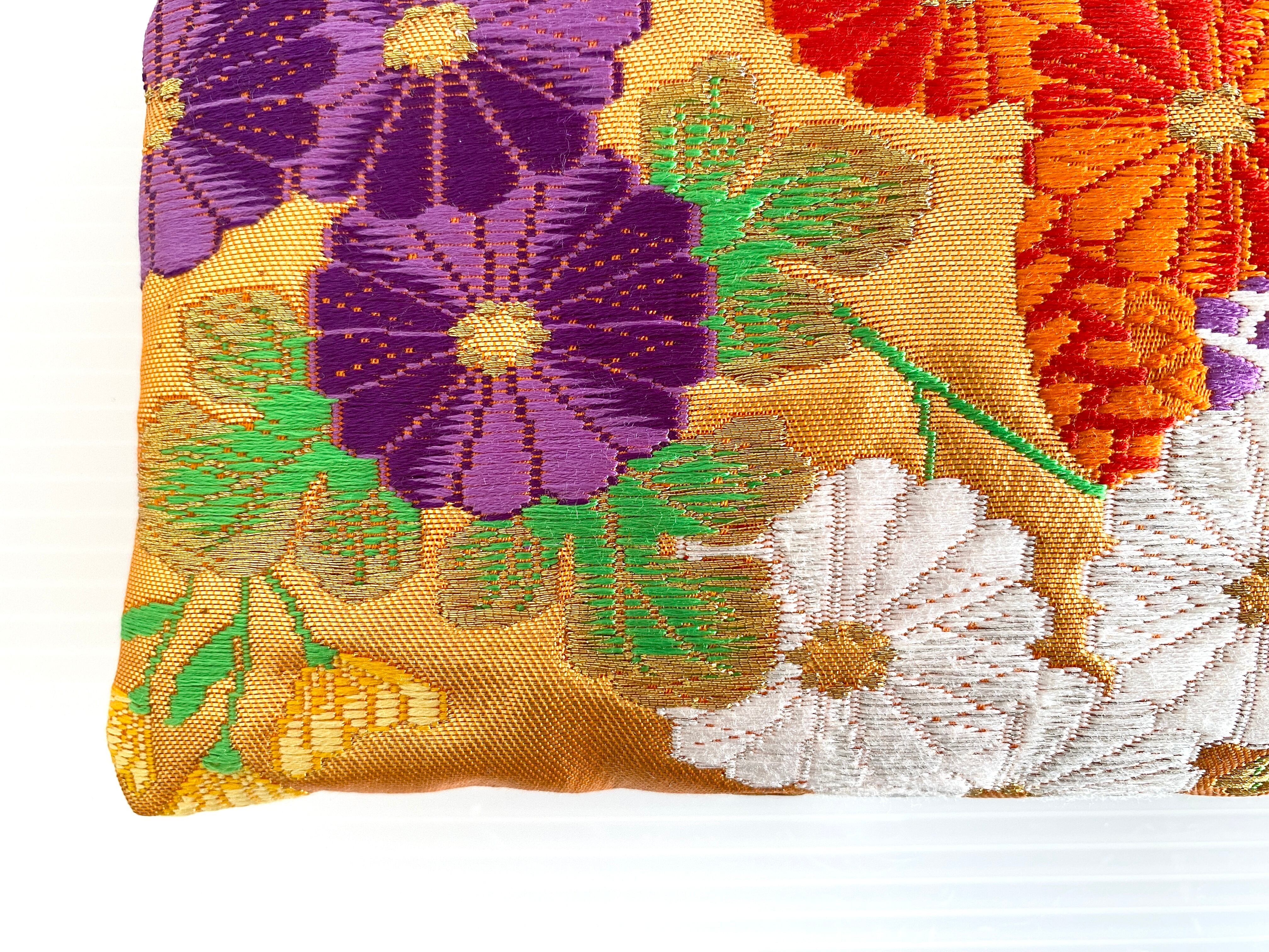 触り心地が滑らかで手にしっくりとくる安心感。絵柄の鮮やかさは日本の着物帯ならではの存在感で素晴らしく華やかな美しさ