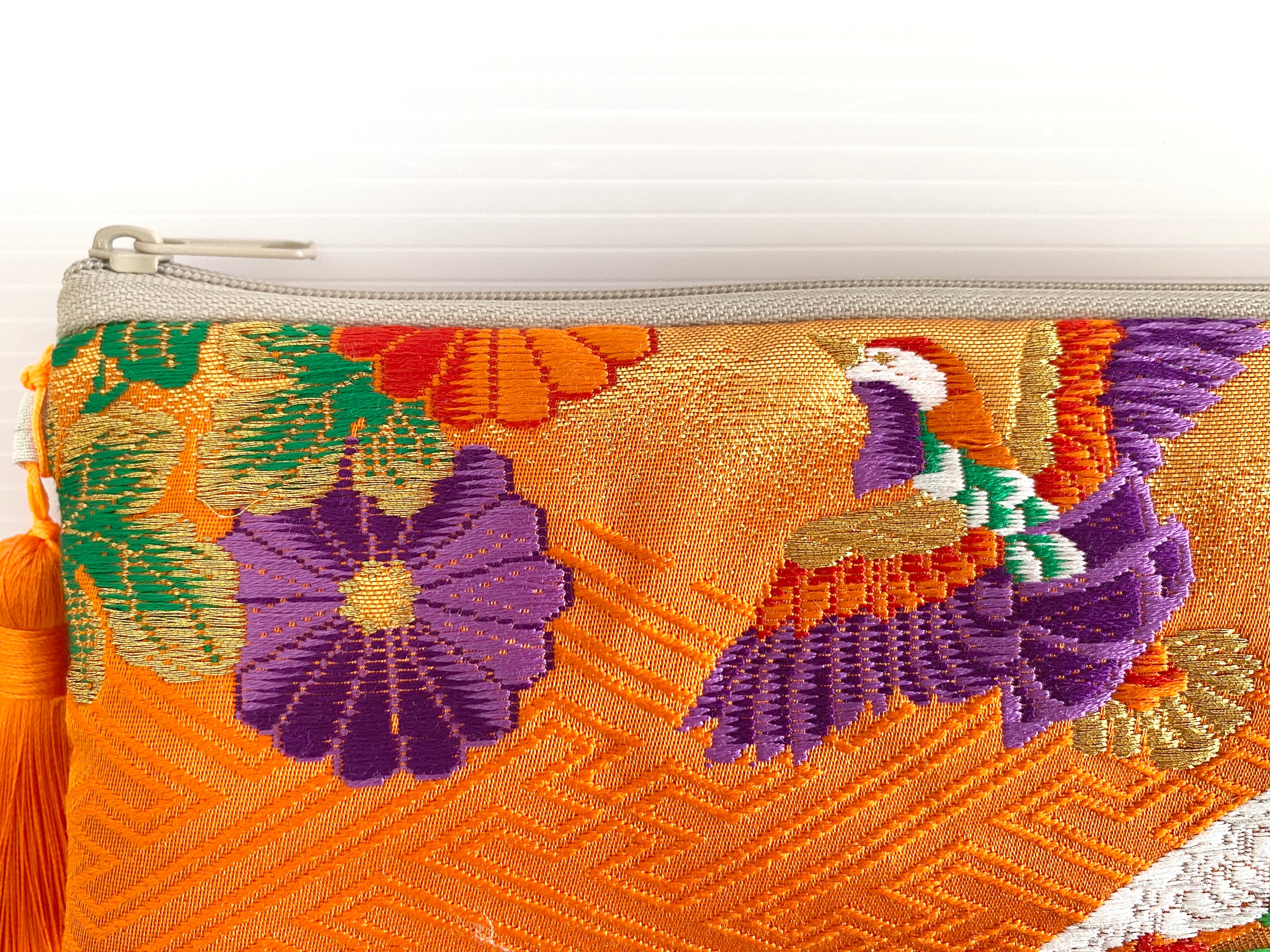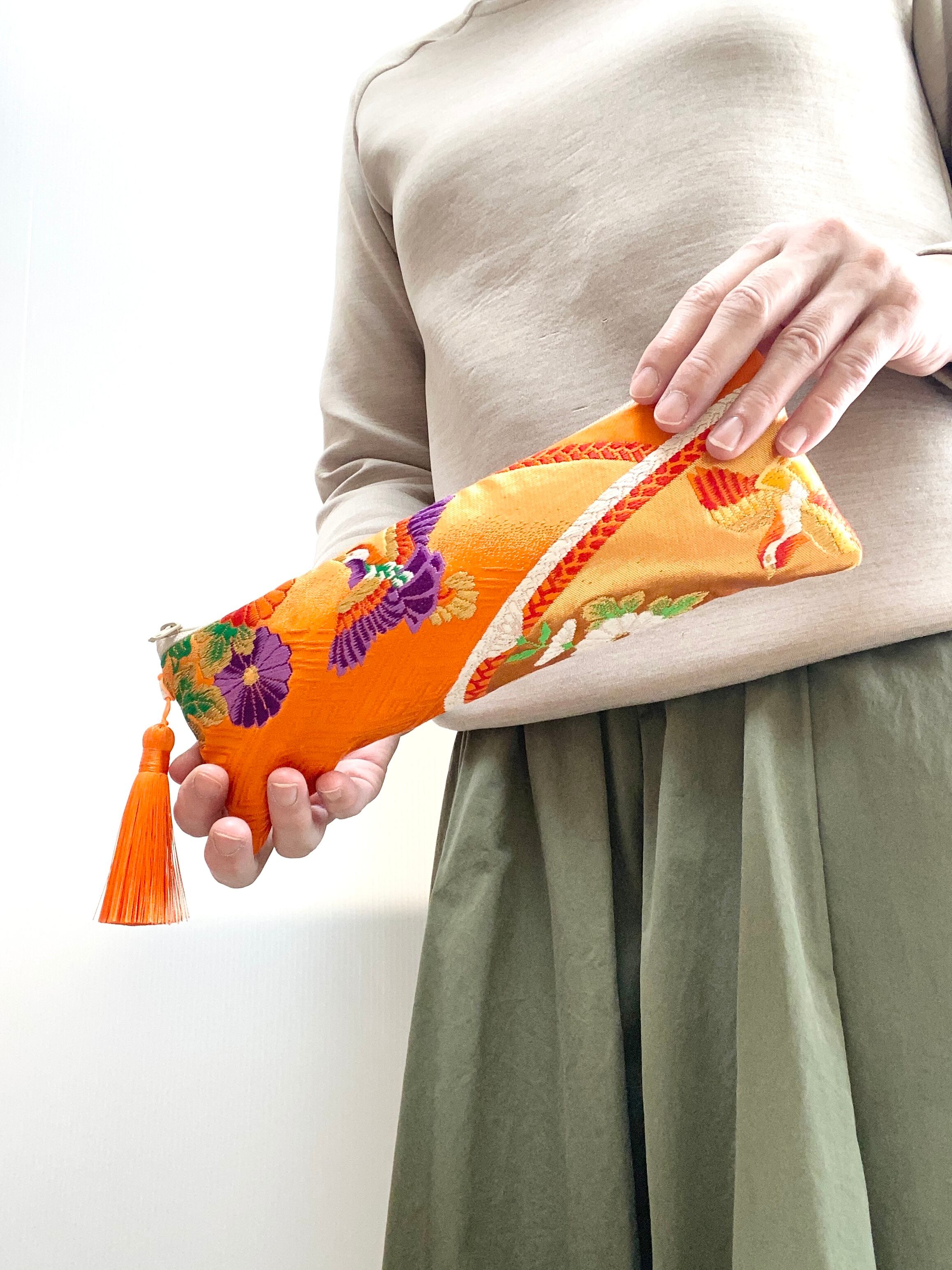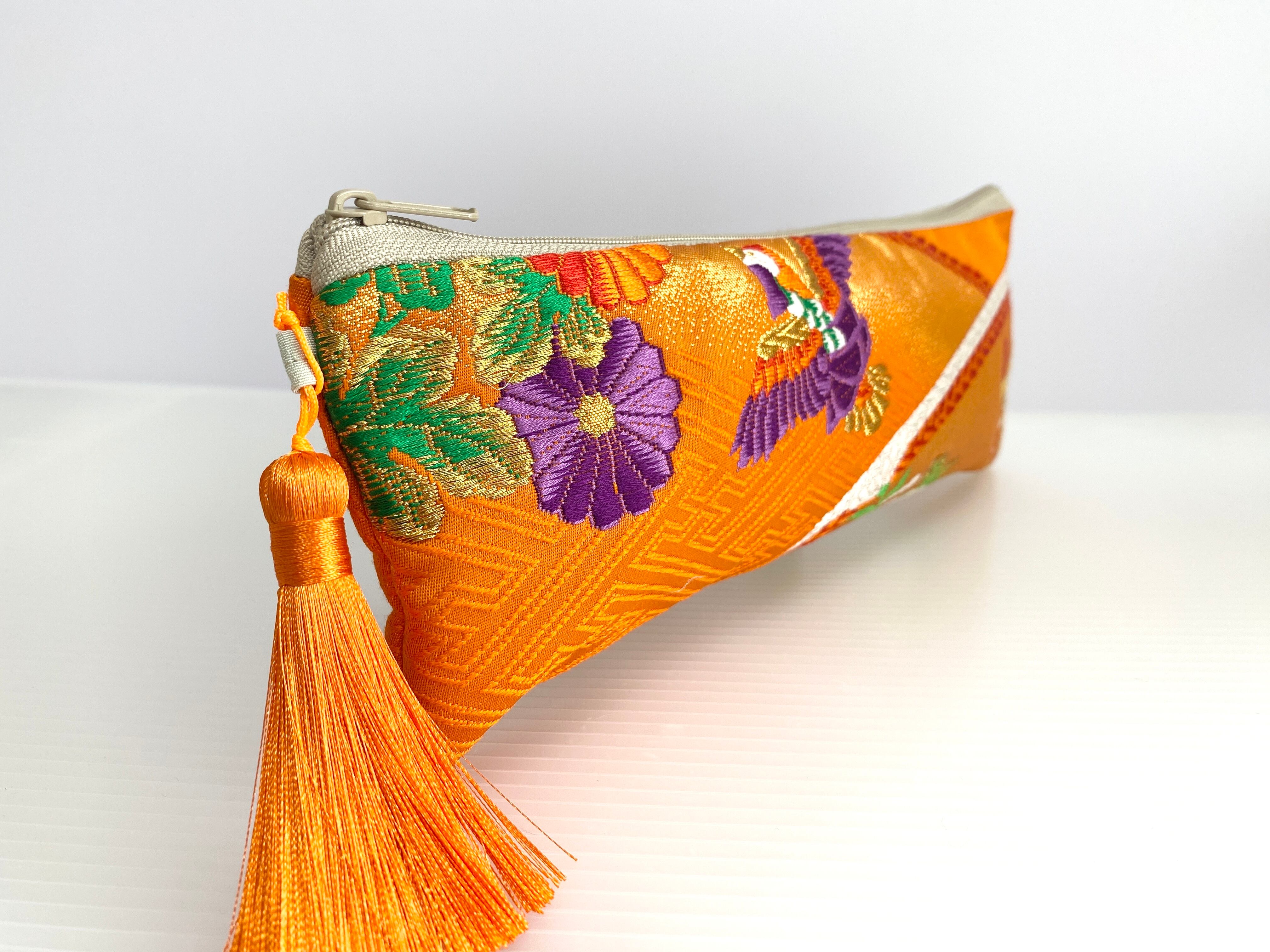日本の古着物帯をリメイクして作製したポーチでハンドメイド品です