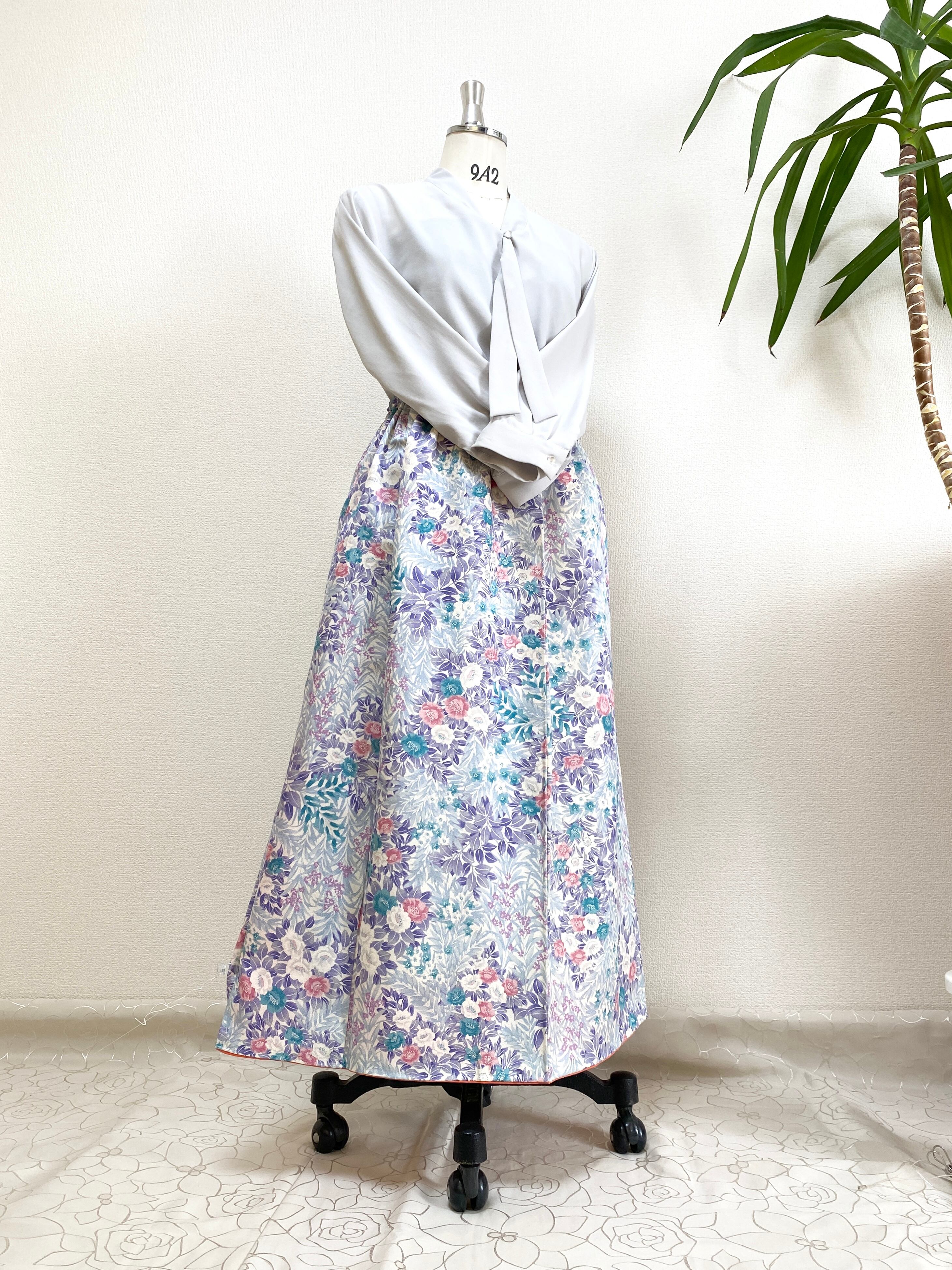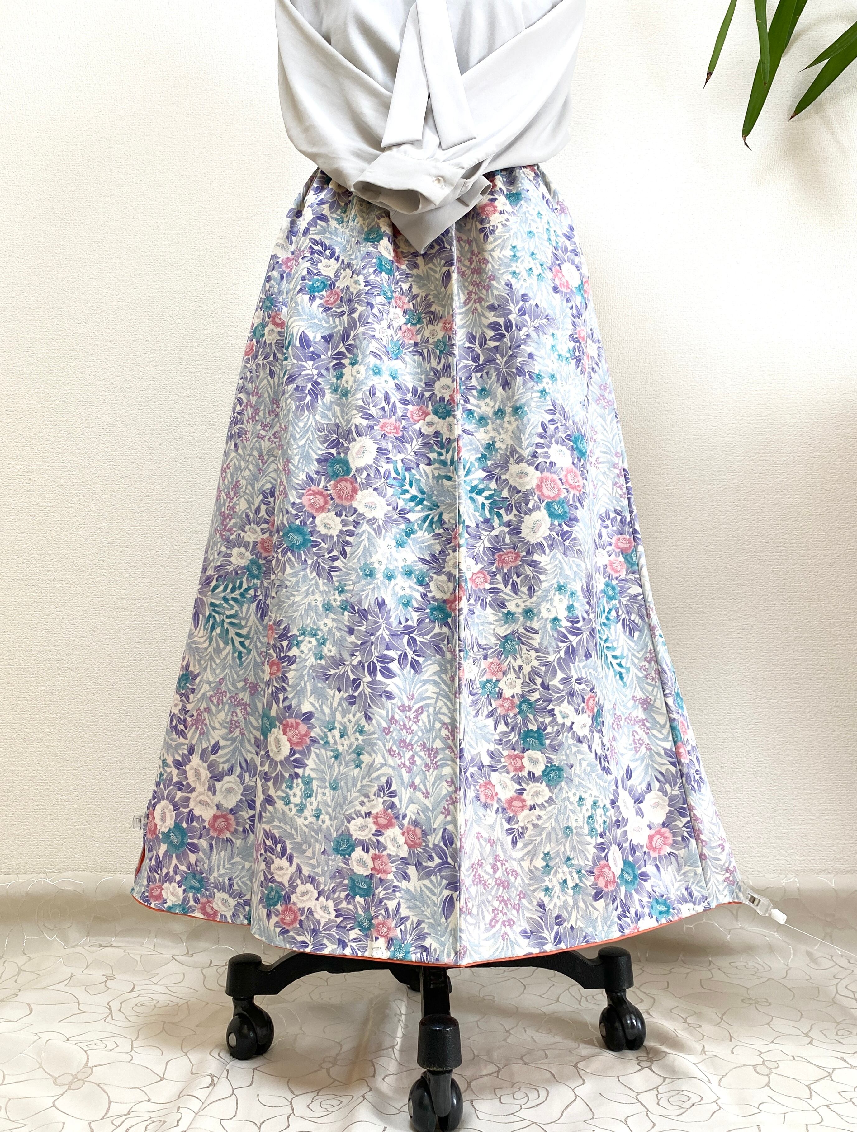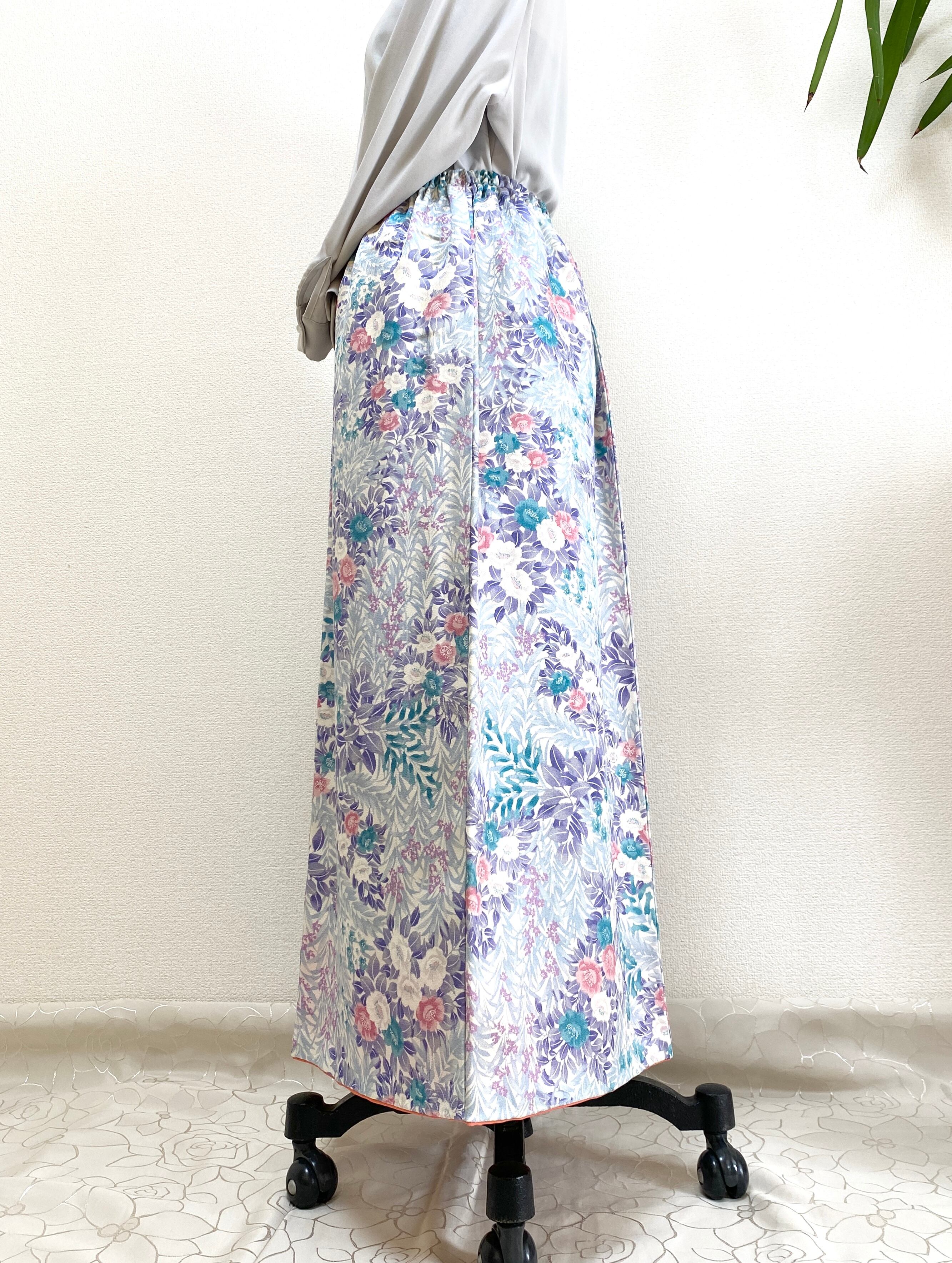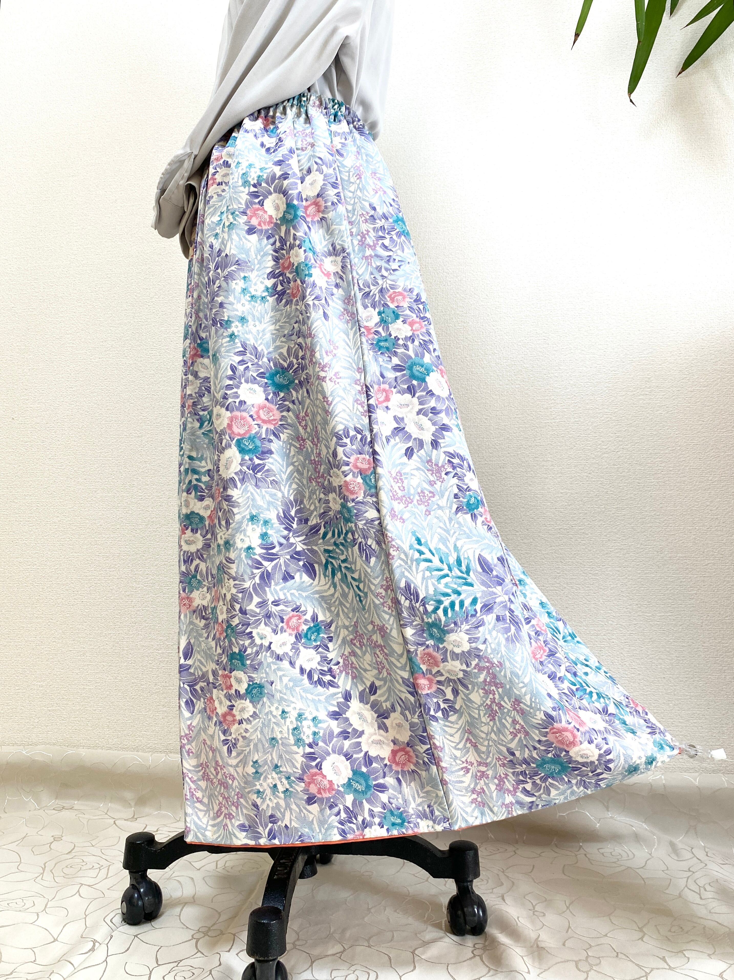 大人可愛いセレブ着物スカートフリーサイズ着物リメイクウエストゴムロングスカートフリーサイズ送料込みハンドメイドNO.6270