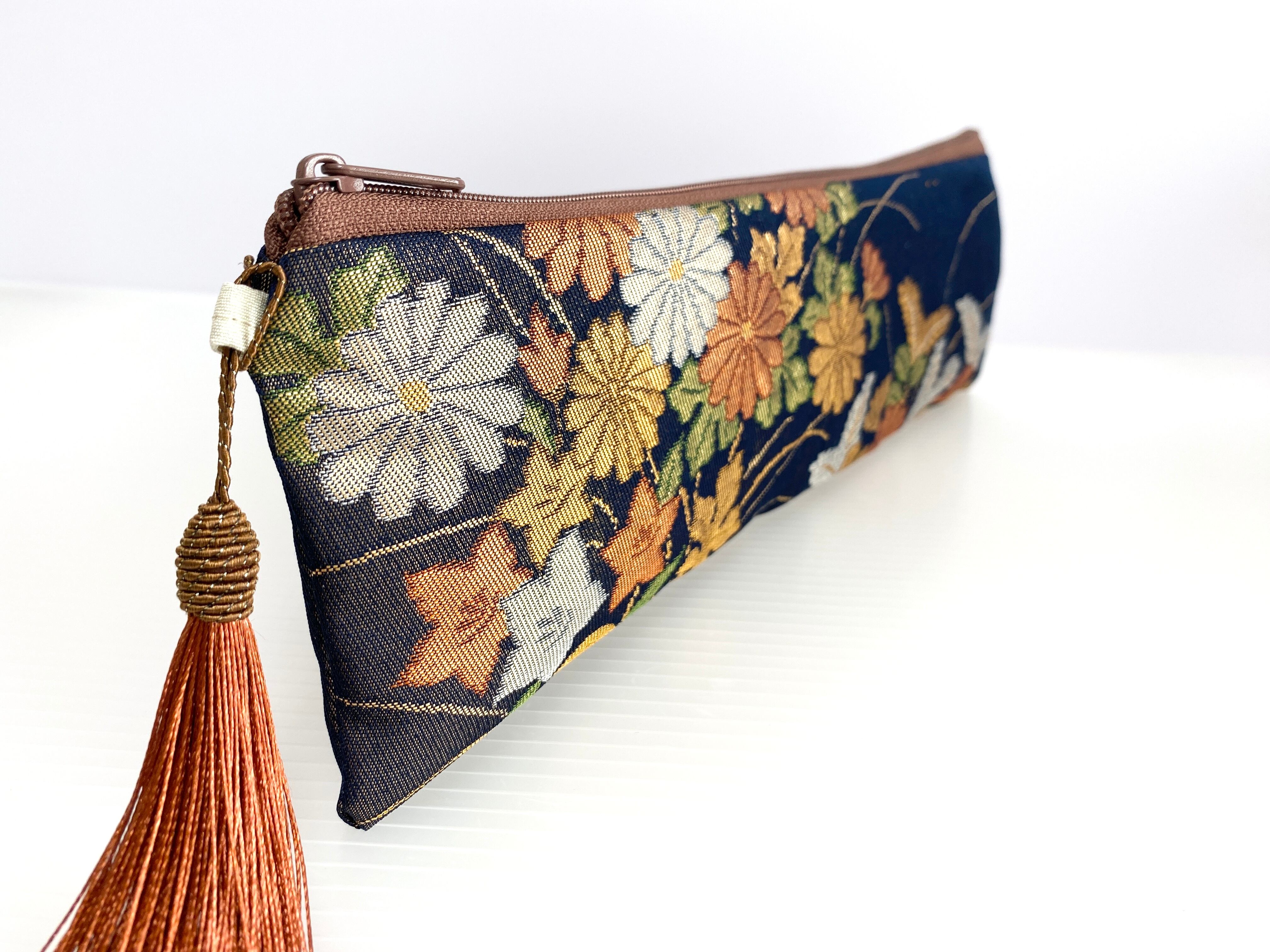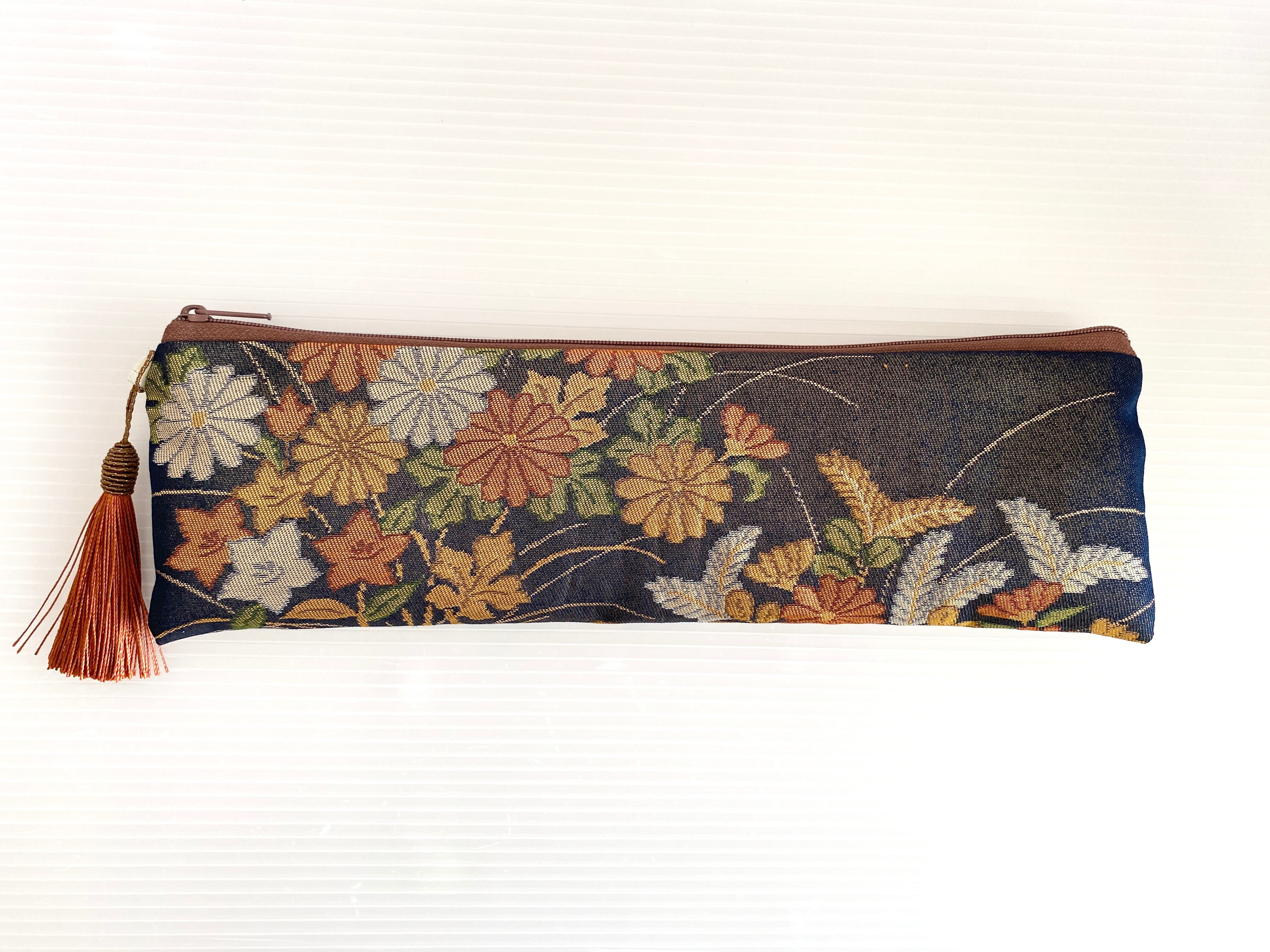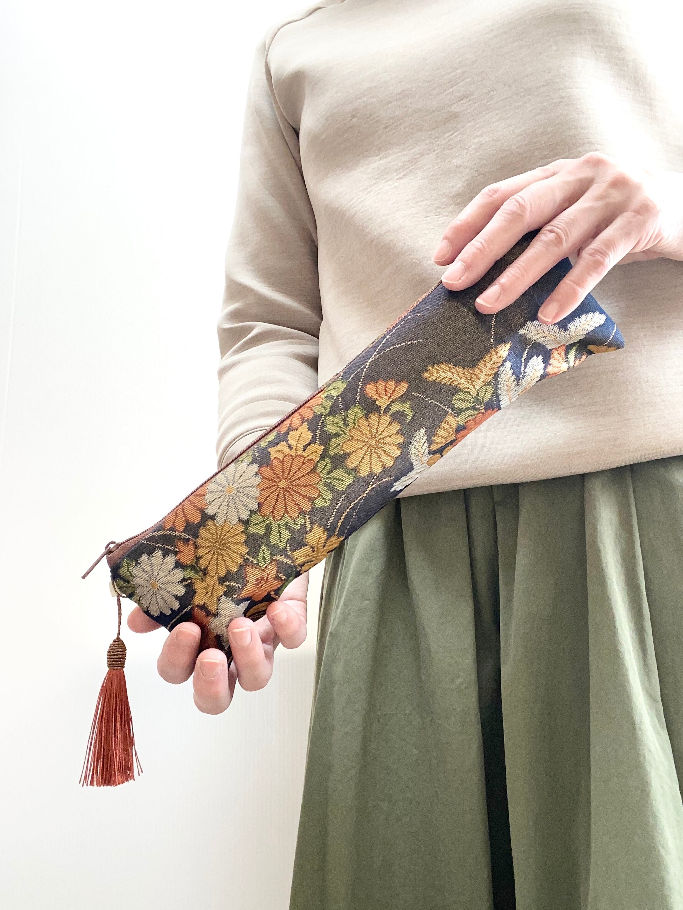 横長ポーチ帯リメイクポーチ着物リメイクポーチ化粧ポーチ細長ポーチ扇子入れバッグインバッグ送料込みハンドメイドNO.6271