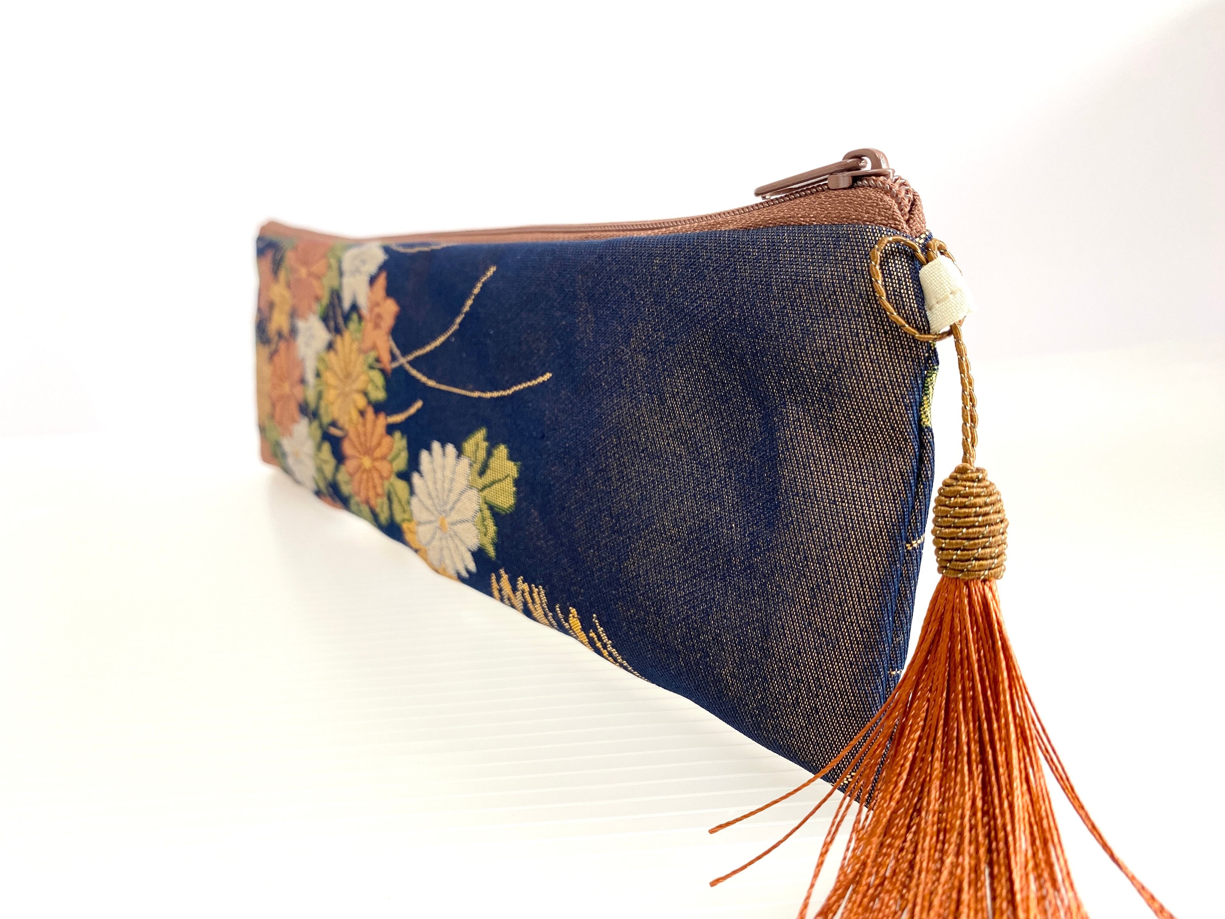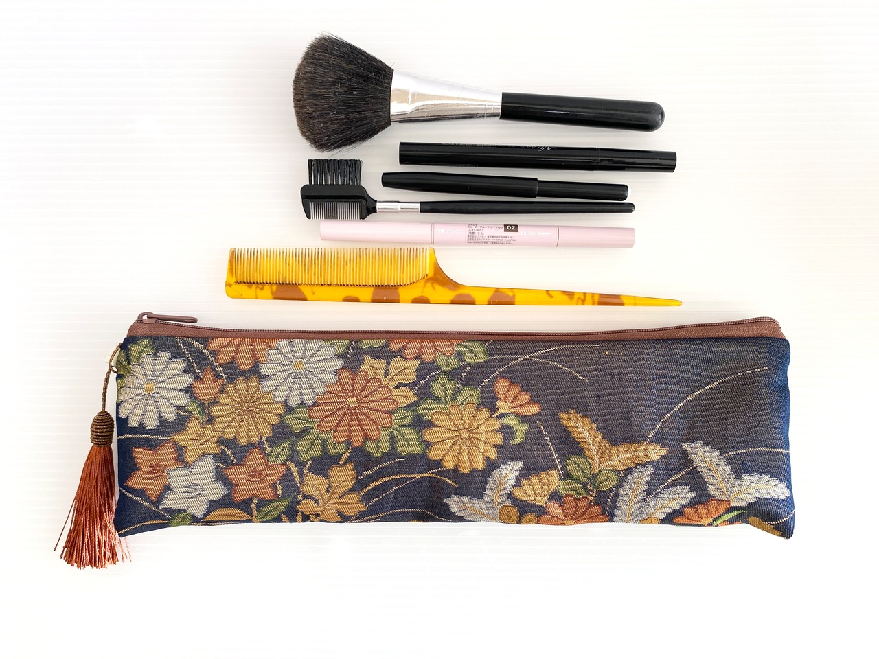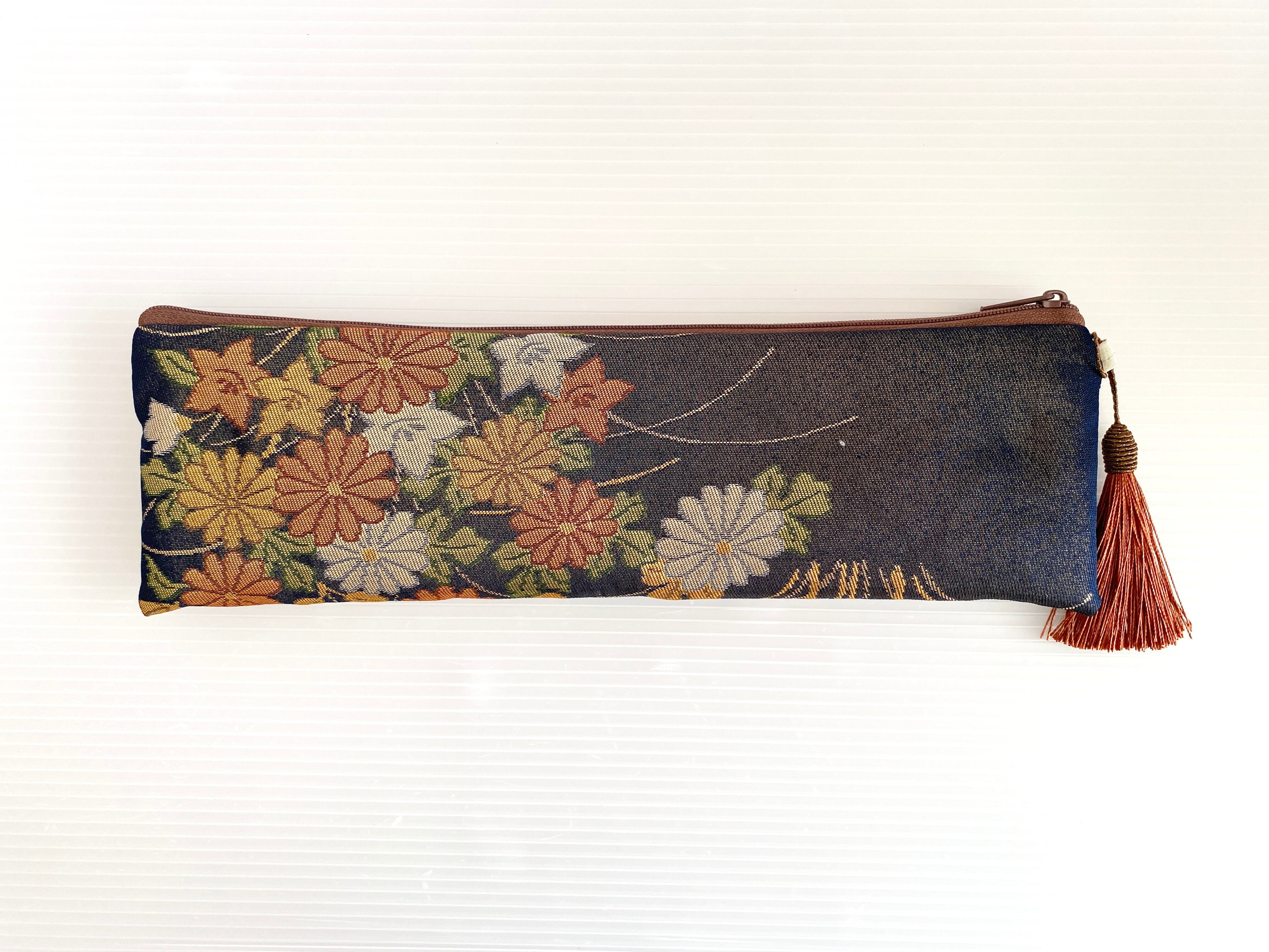 横長ポーチ帯リメイクポーチ着物リメイクポーチ化粧ポーチ細長ポーチ扇子入れバッグインバッグ送料込みハンドメイドNO.6271