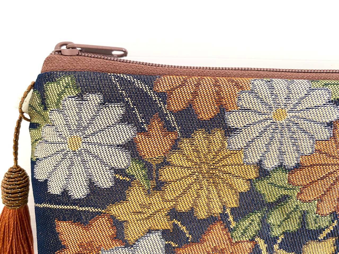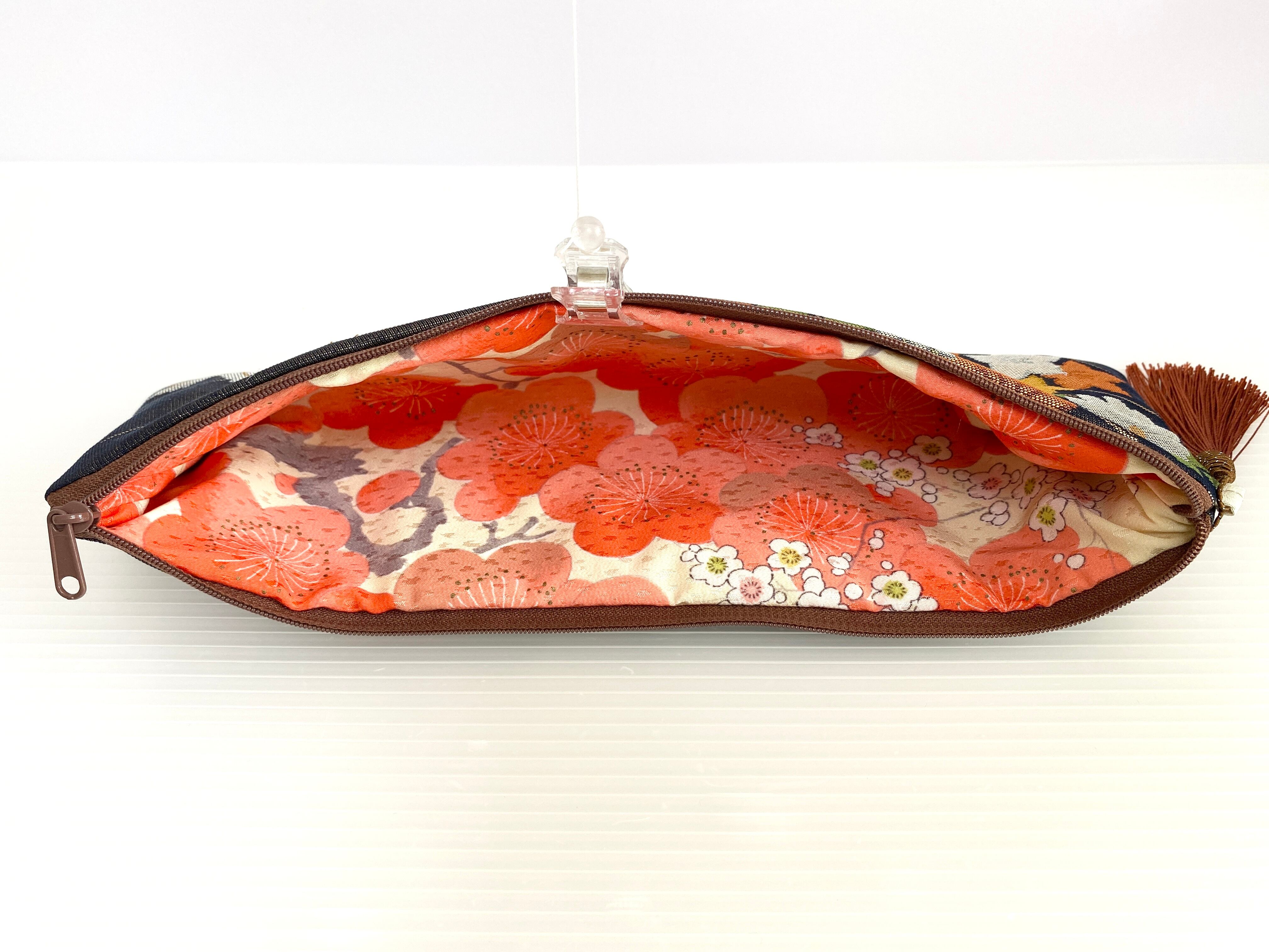 内側の裏生地にも着物布を使用しておりますのでしっかりとした造りの帯リメイクポーチ着物リメイクポーチ 横長さがあるので使い勝手が良いです