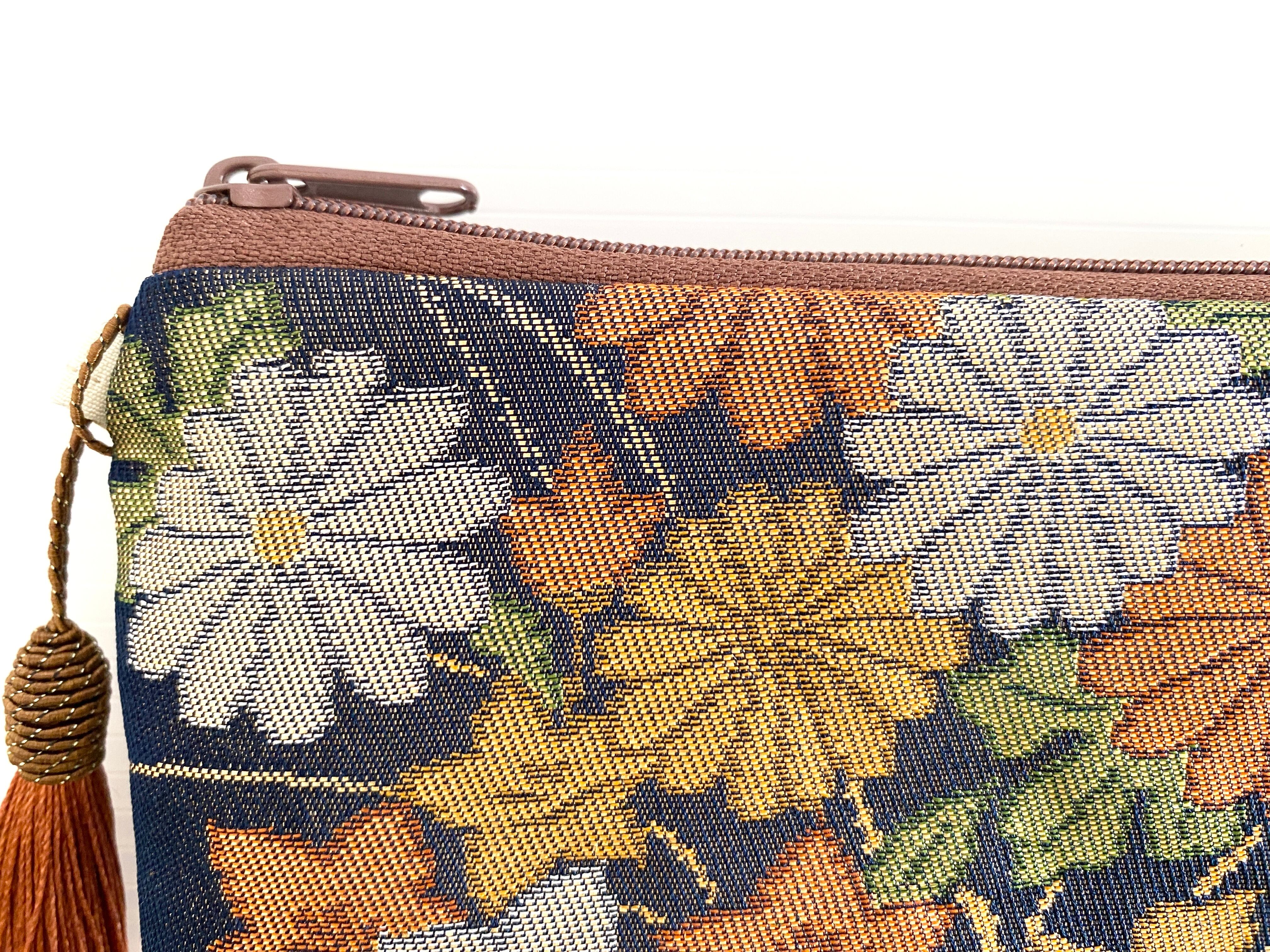 日本の古着物帯をリメイクして作製したポーチでハンドメイド品です