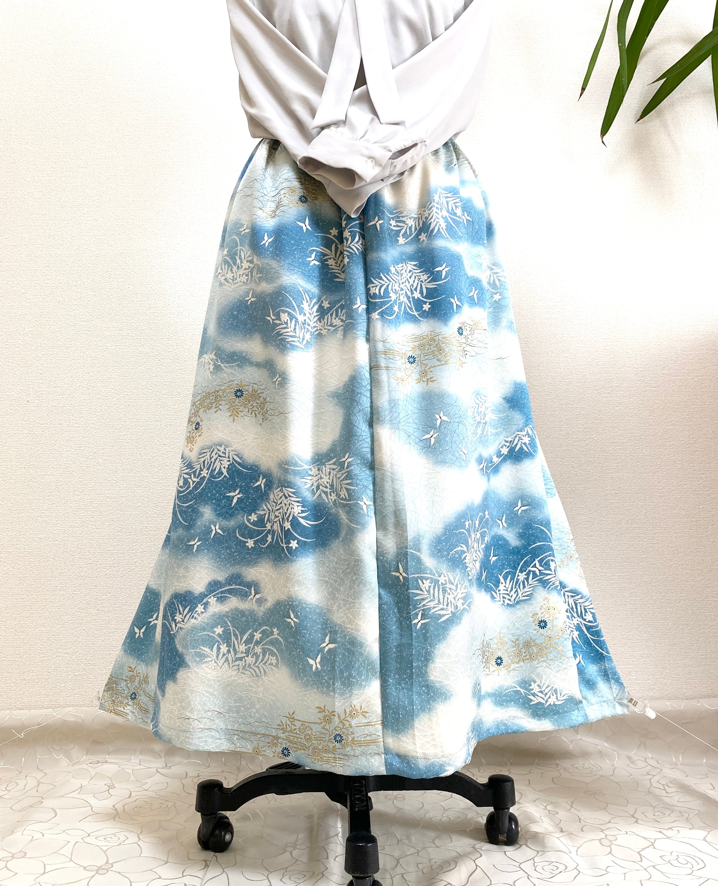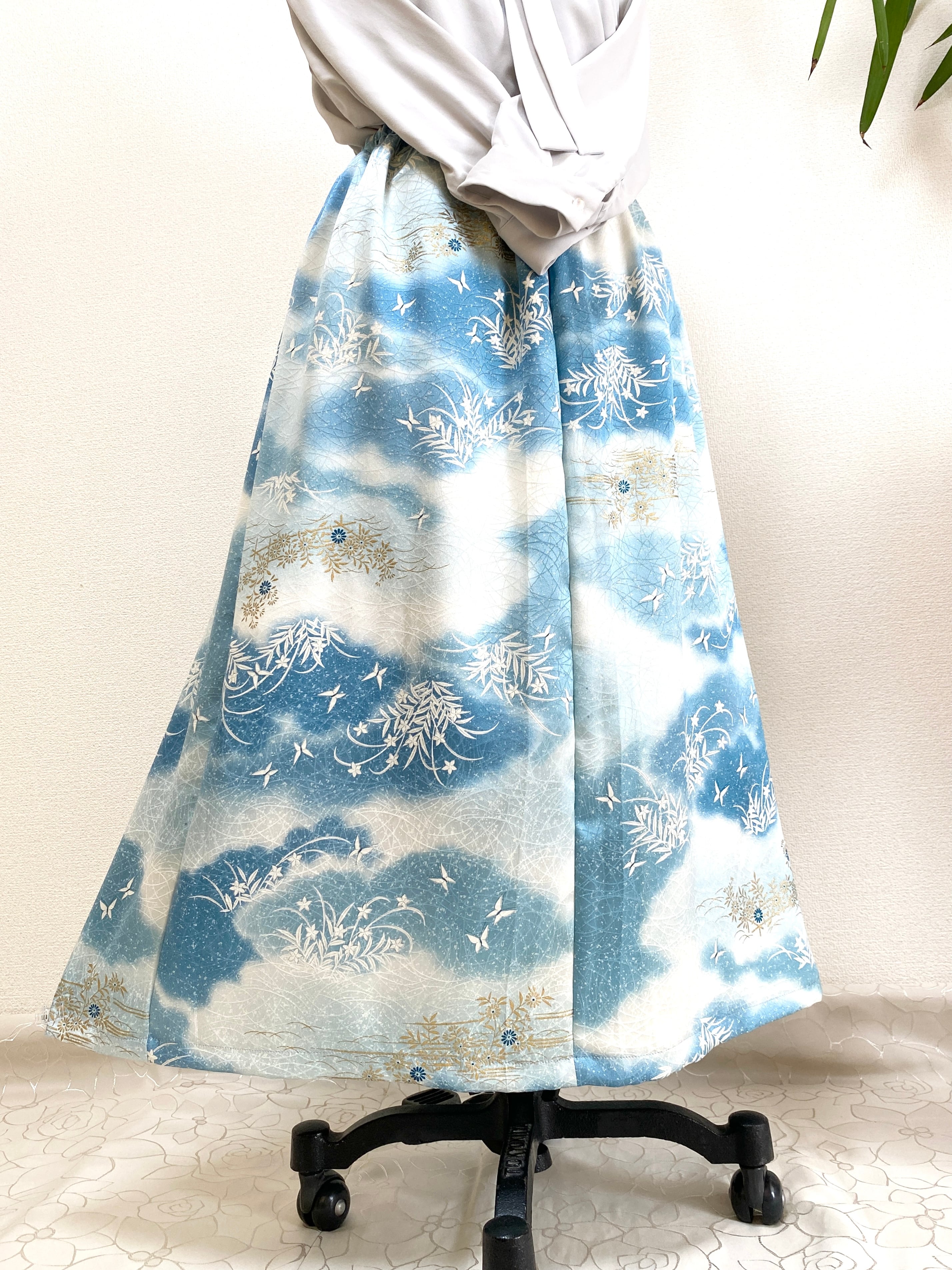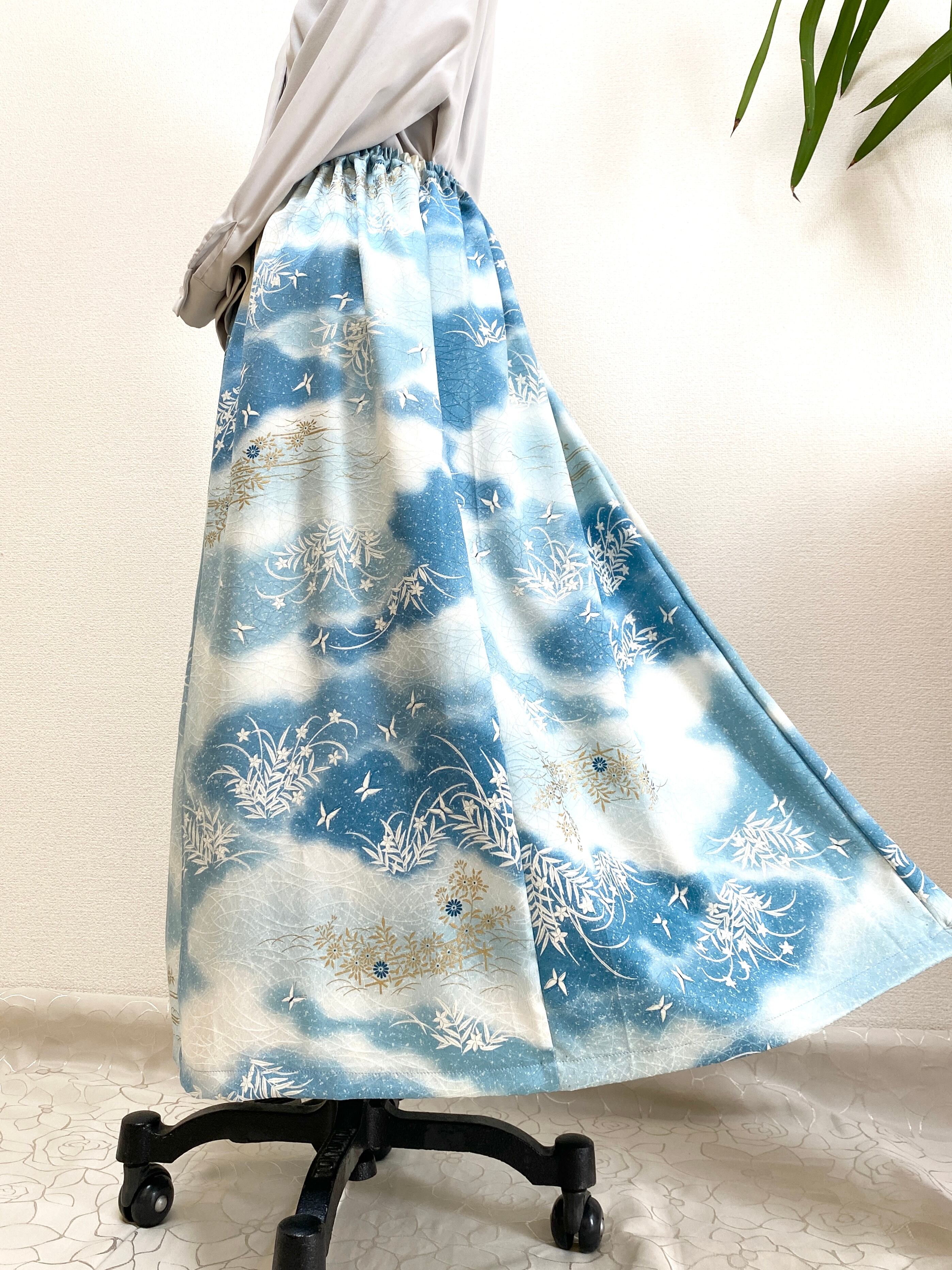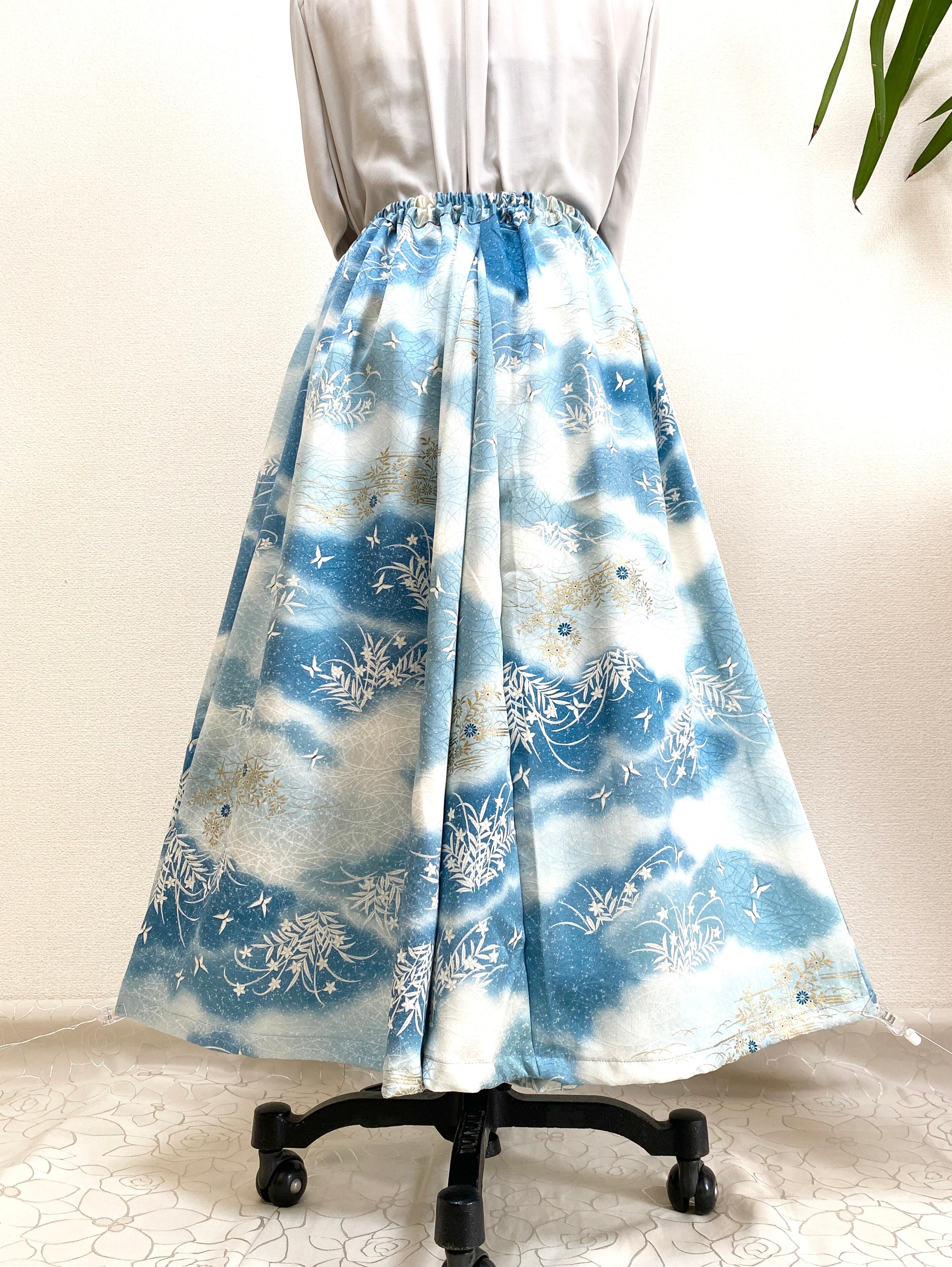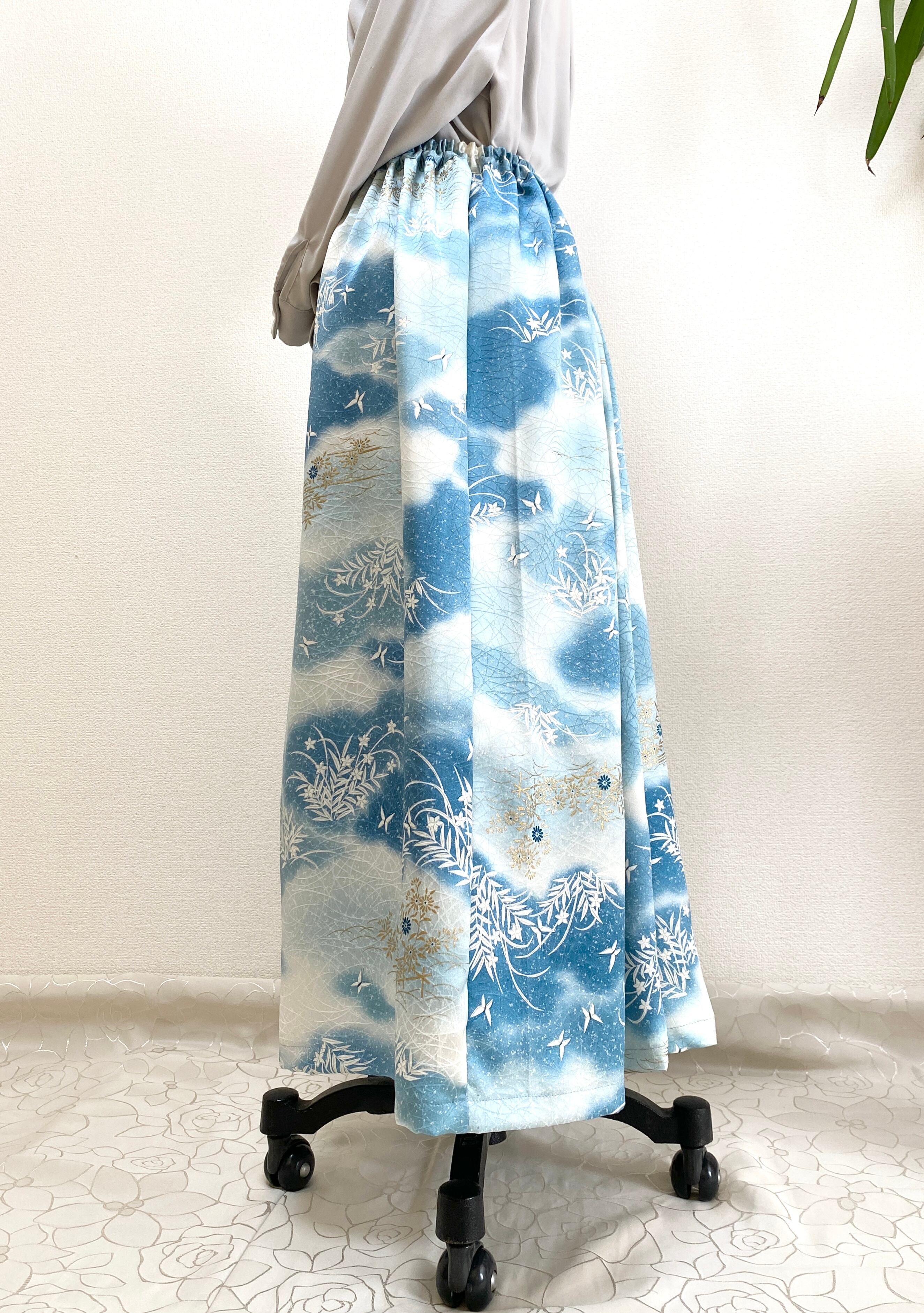 大人可愛いセレブ着物スカートフリーサイズ着物リメイクウエストゴムロングスカートフリーサイズ送料込みハンドメイドNO.6272