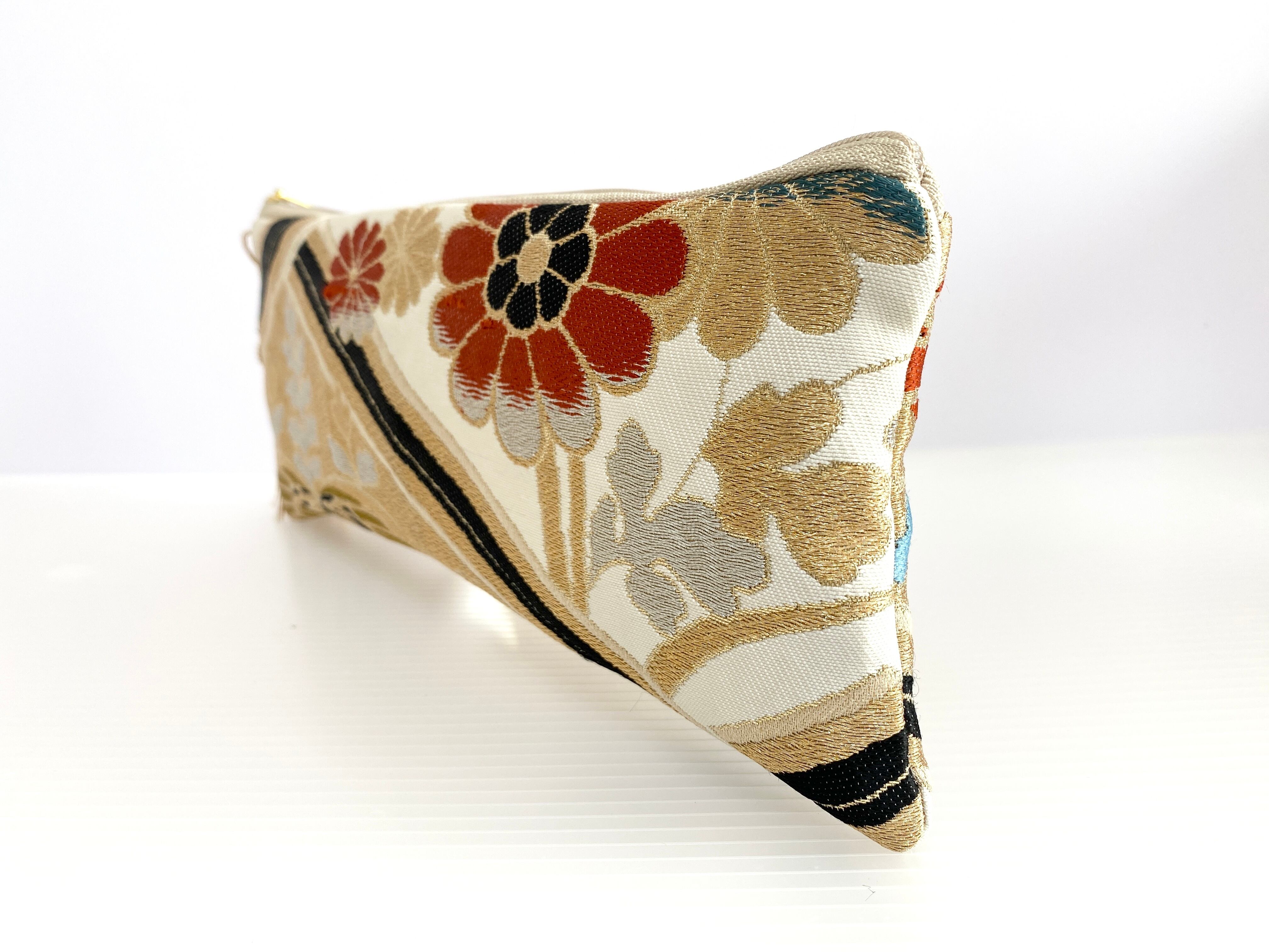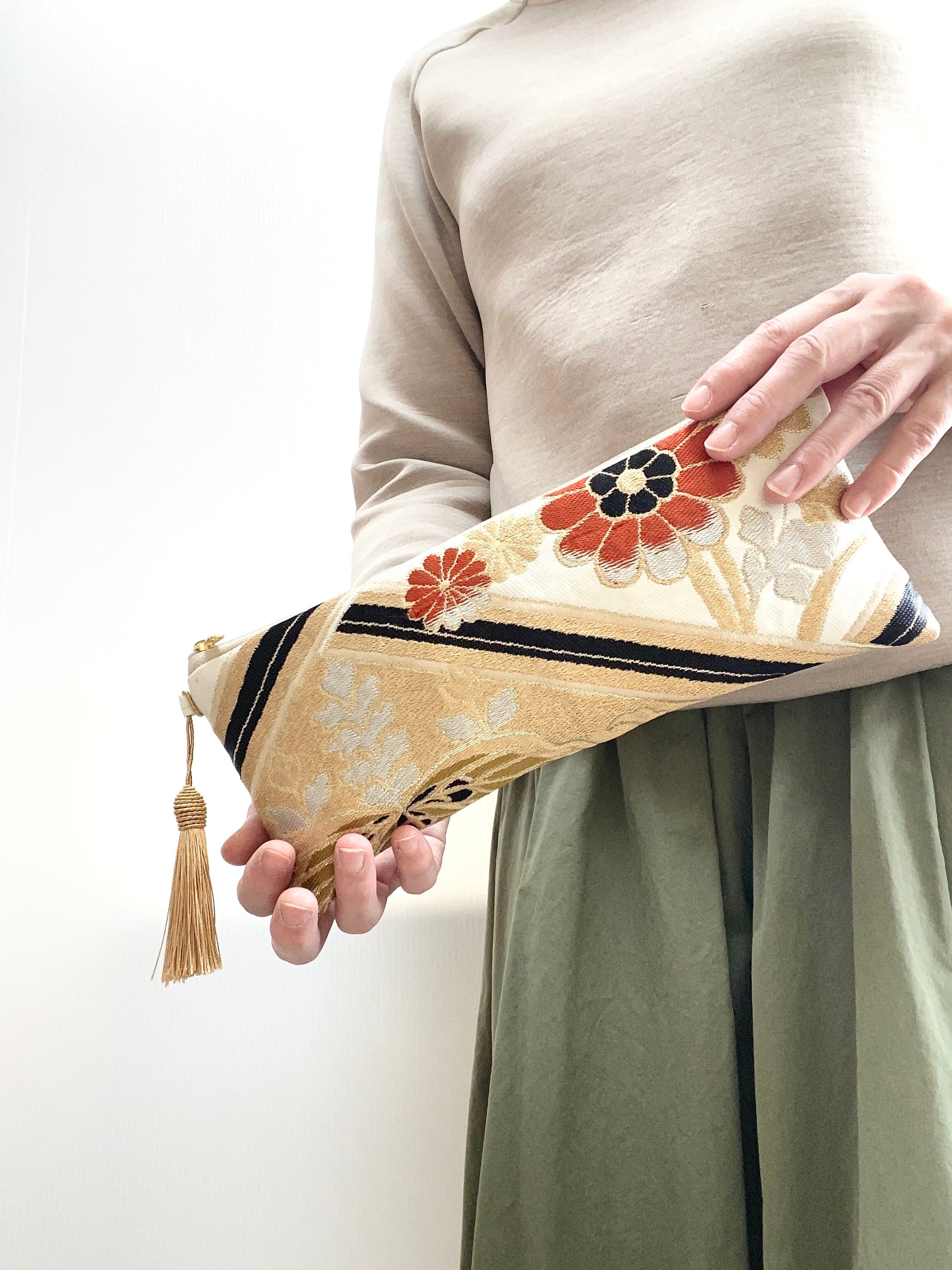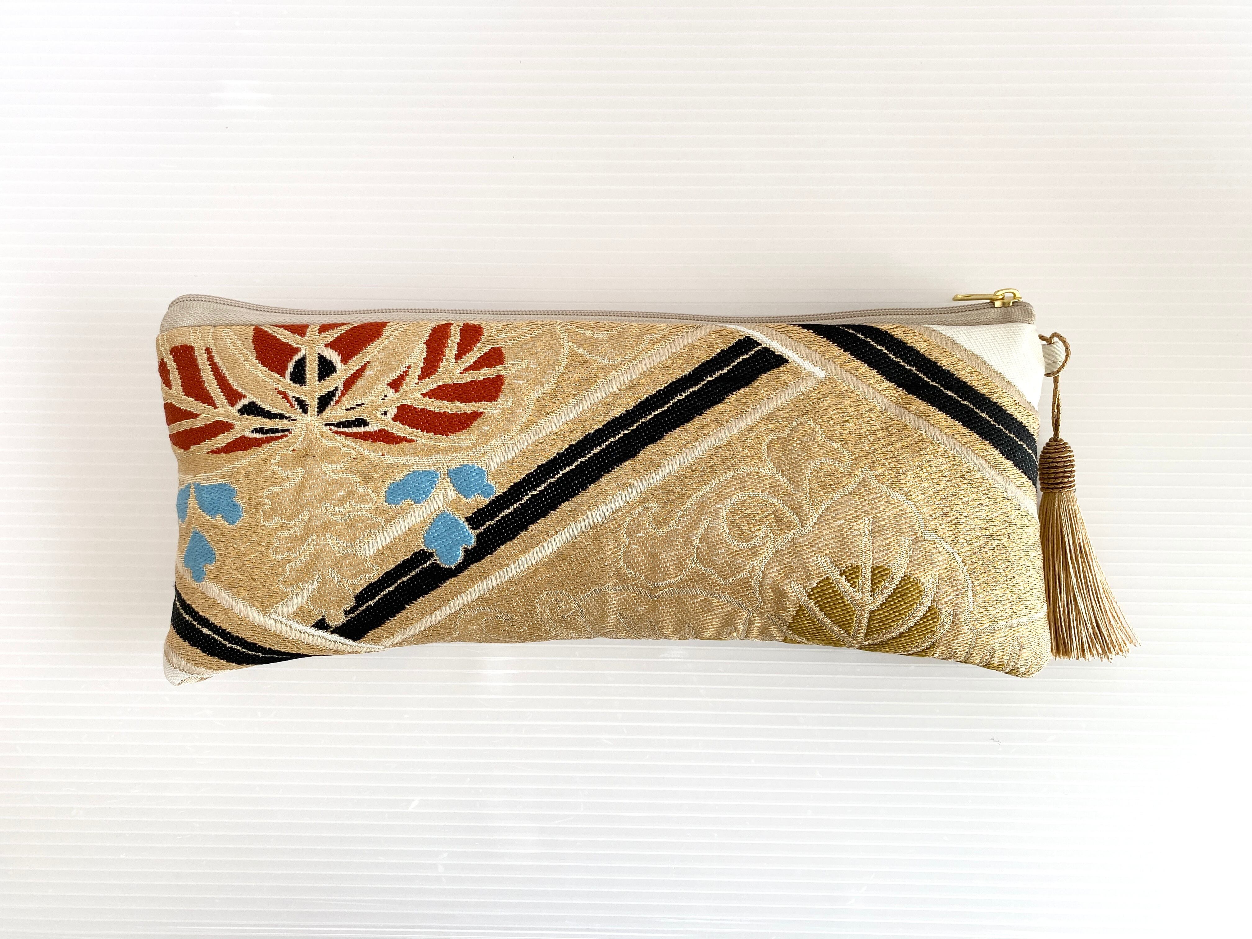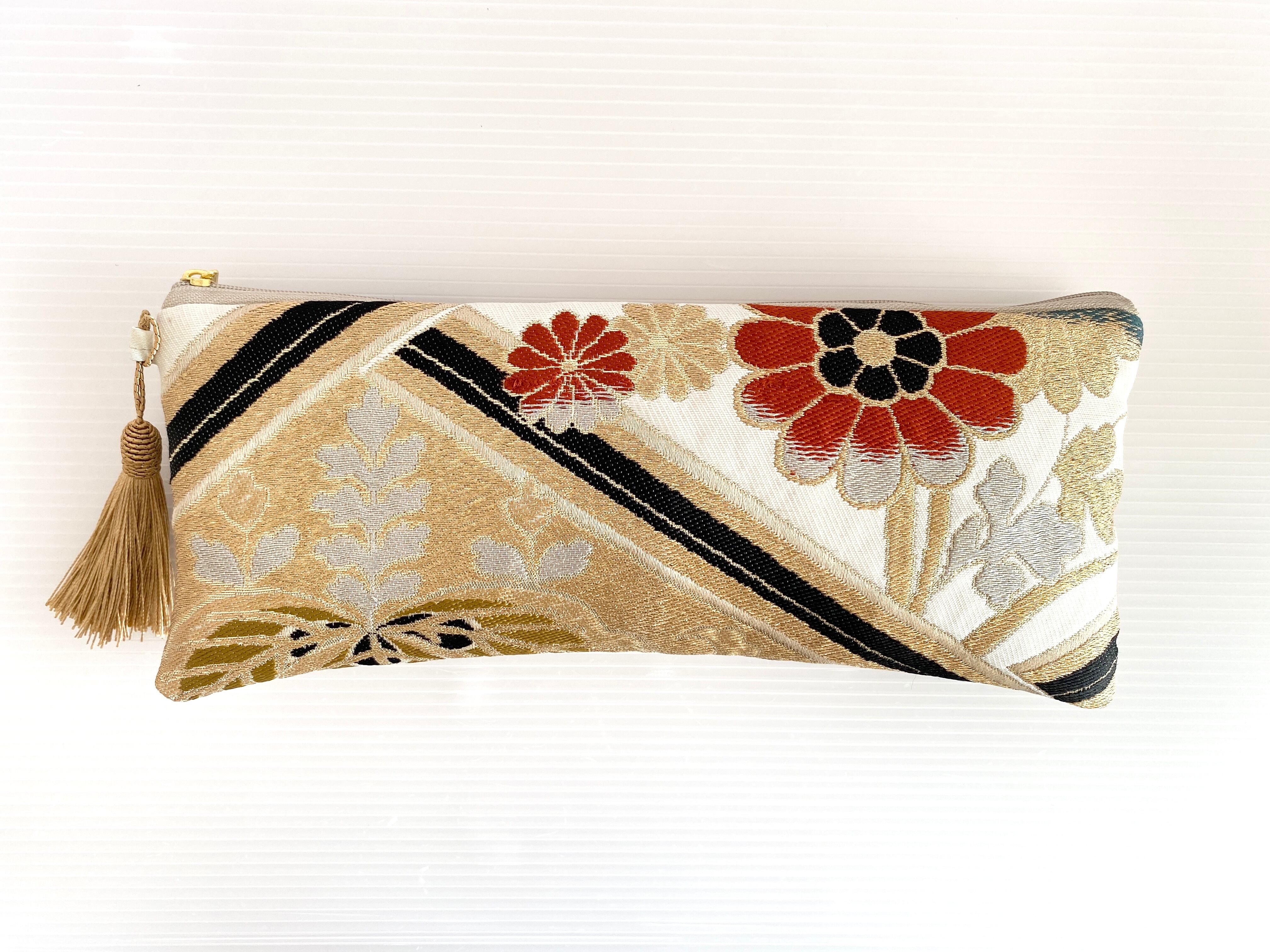 日本の古着物帯をリメイクして作製したポーチでハンドメイド品です