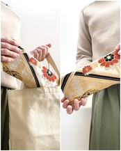 商品はハンドメイド職人が1点1点丁寧に仕上げております。生地の検品は厳選し注意して行っておりますが古帯や古着物をリメイクという特性上、生地にごく多少の難(糸や生地の擦れ折りシワ針穴など等)がある物もございます。ですが販売するにあたりよほどのシミや糸ほつれ・臭いのあるものは使用しておりませんのでご安心頂き着物帯リメイクをご理解・ご了承のうえ購入して頂きますようお願い致します