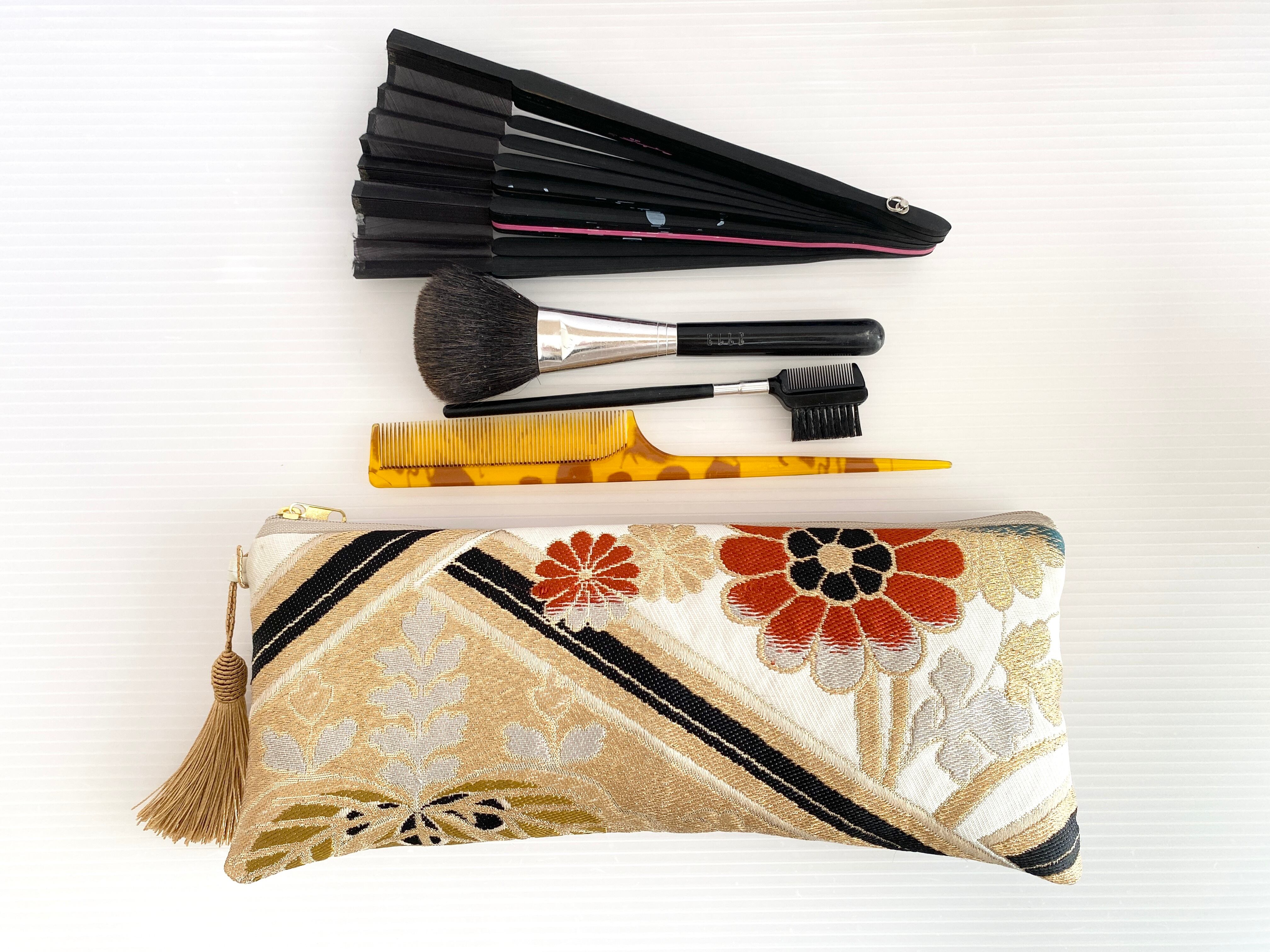 横長ポーチ帯リメイクポーチ着物リメイクポーチ化粧ポーチ細長ポーチ扇子入れバッグインバッグ送料込みハンドメイドNO.6276
