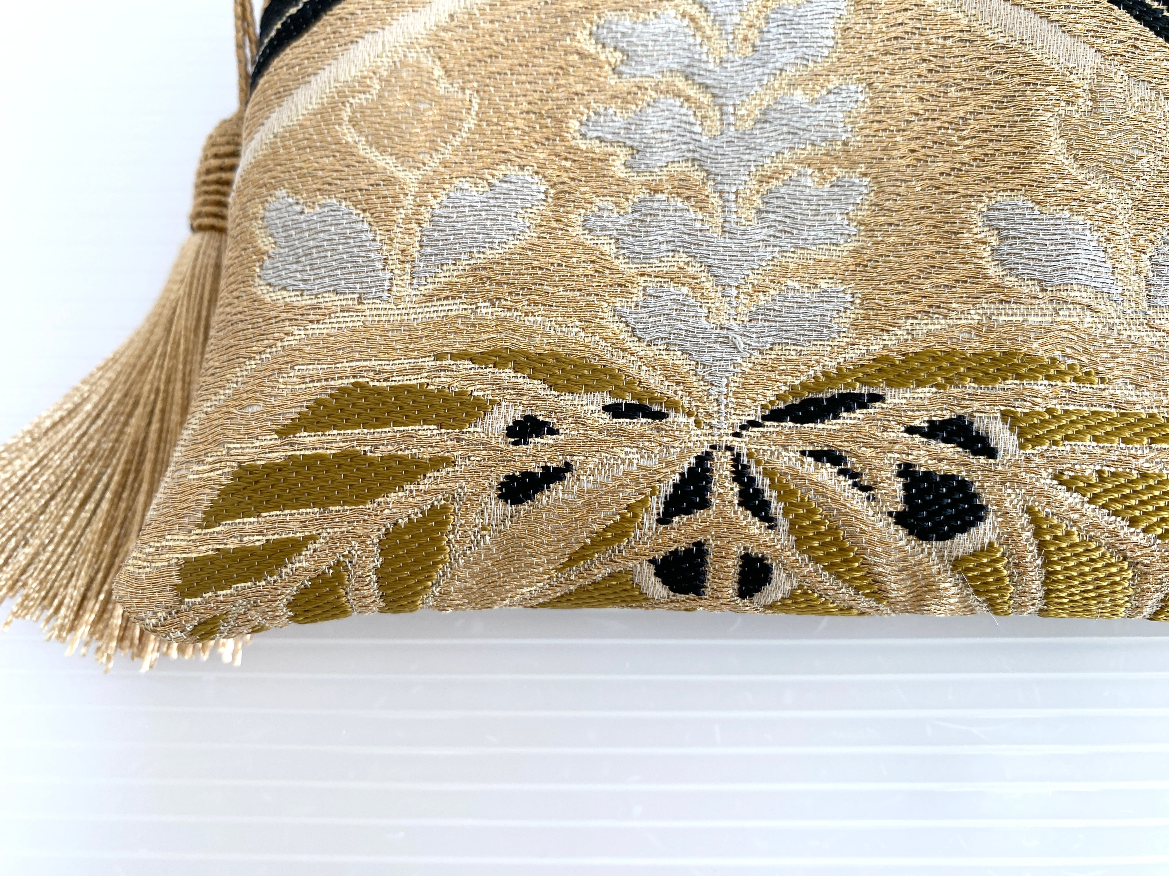 触り心地が滑らかで手にしっくりとくる安心感。絵柄の鮮やかさは日本の着物帯ならではの存在感で素晴らしく華やかな美しさ