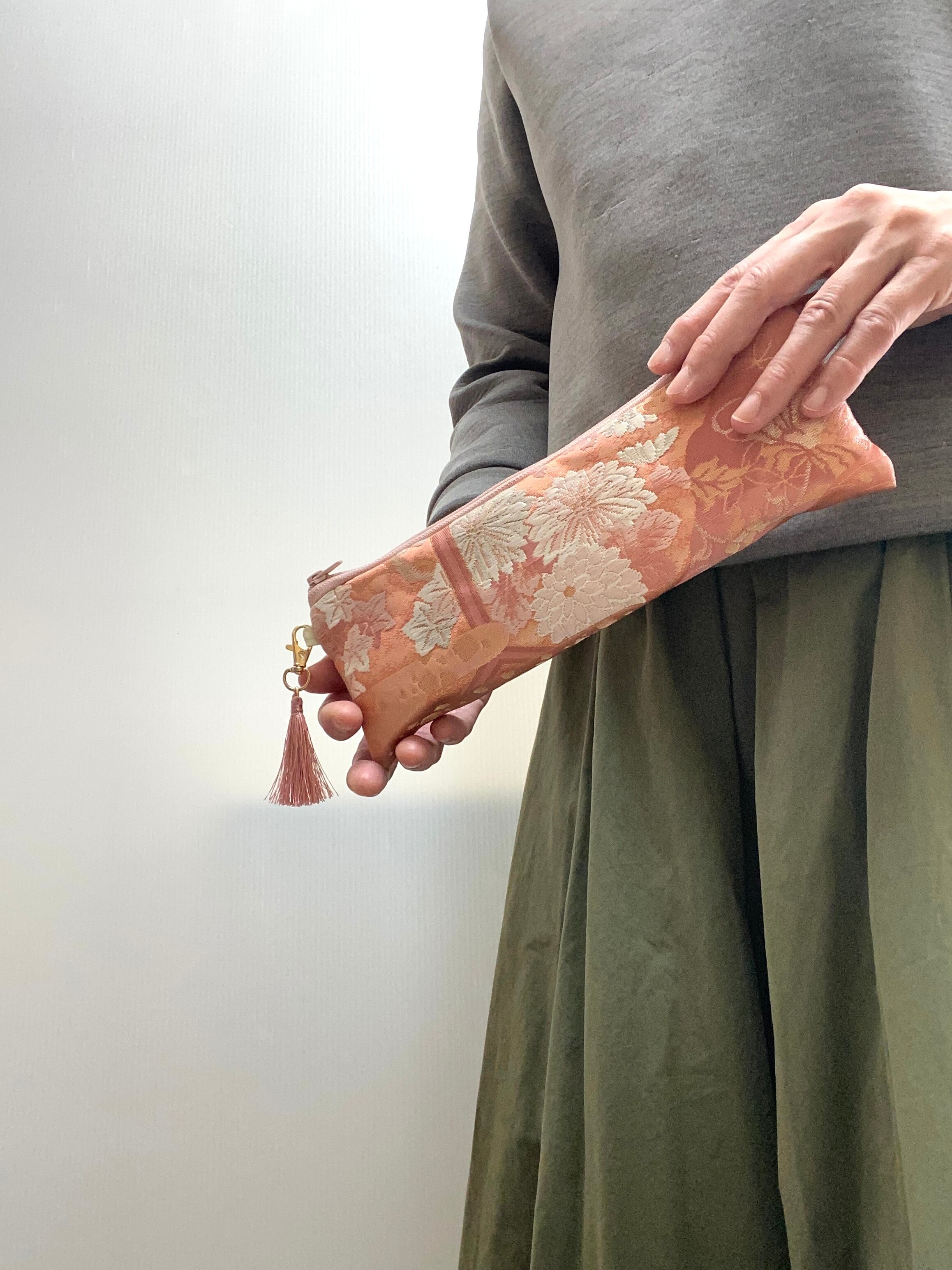 横長ポーチ帯リメイクポーチ着物リメイクポーチ化粧ポーチ細長ポーチ扇子入れバッグインバッグ送料込みハンドメイドNO.6300