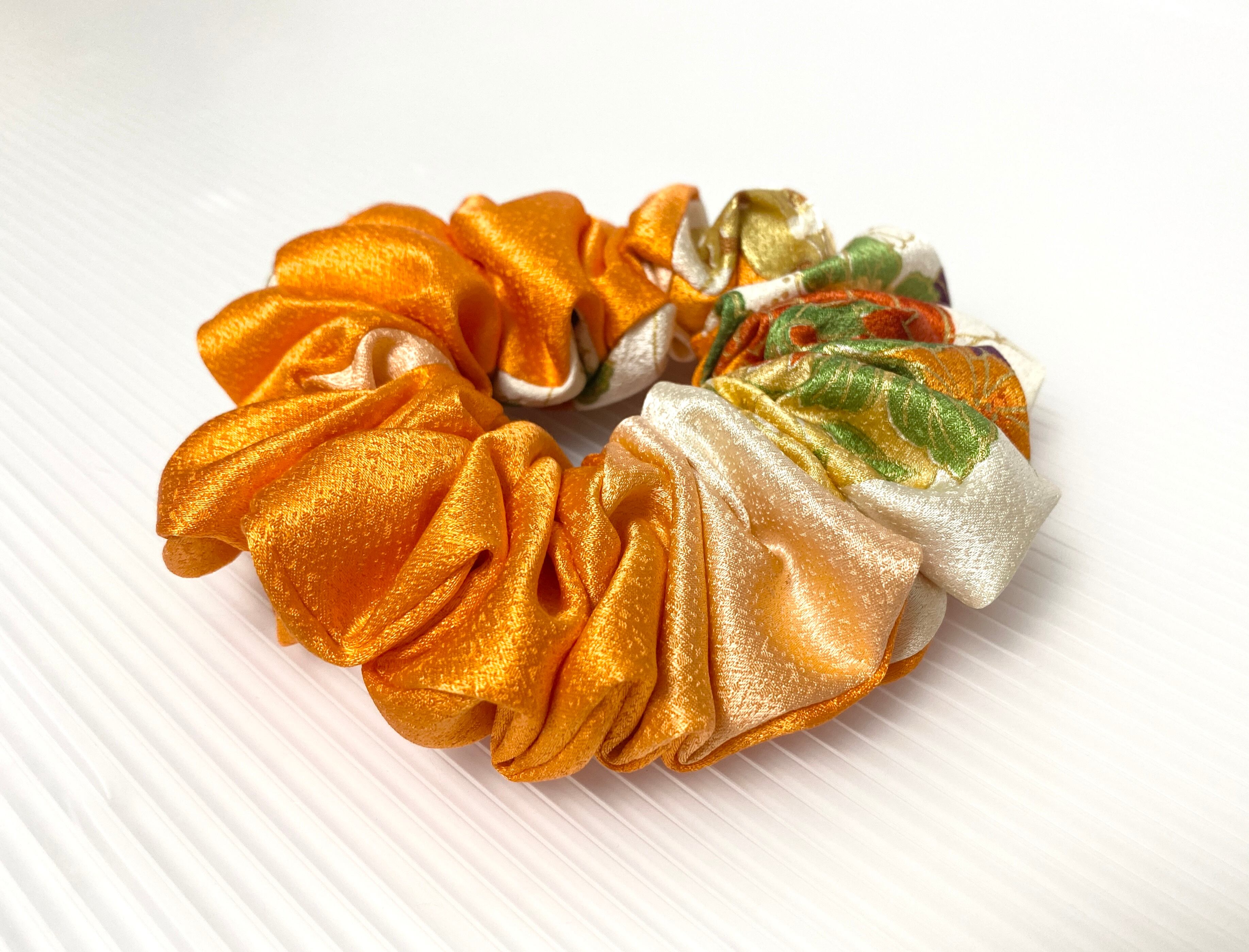 着物布生地なので柔らかで薄い布生地な為触り心地が良く滑らかで髪結びの装着がとても良いシュシュヘアゴムです