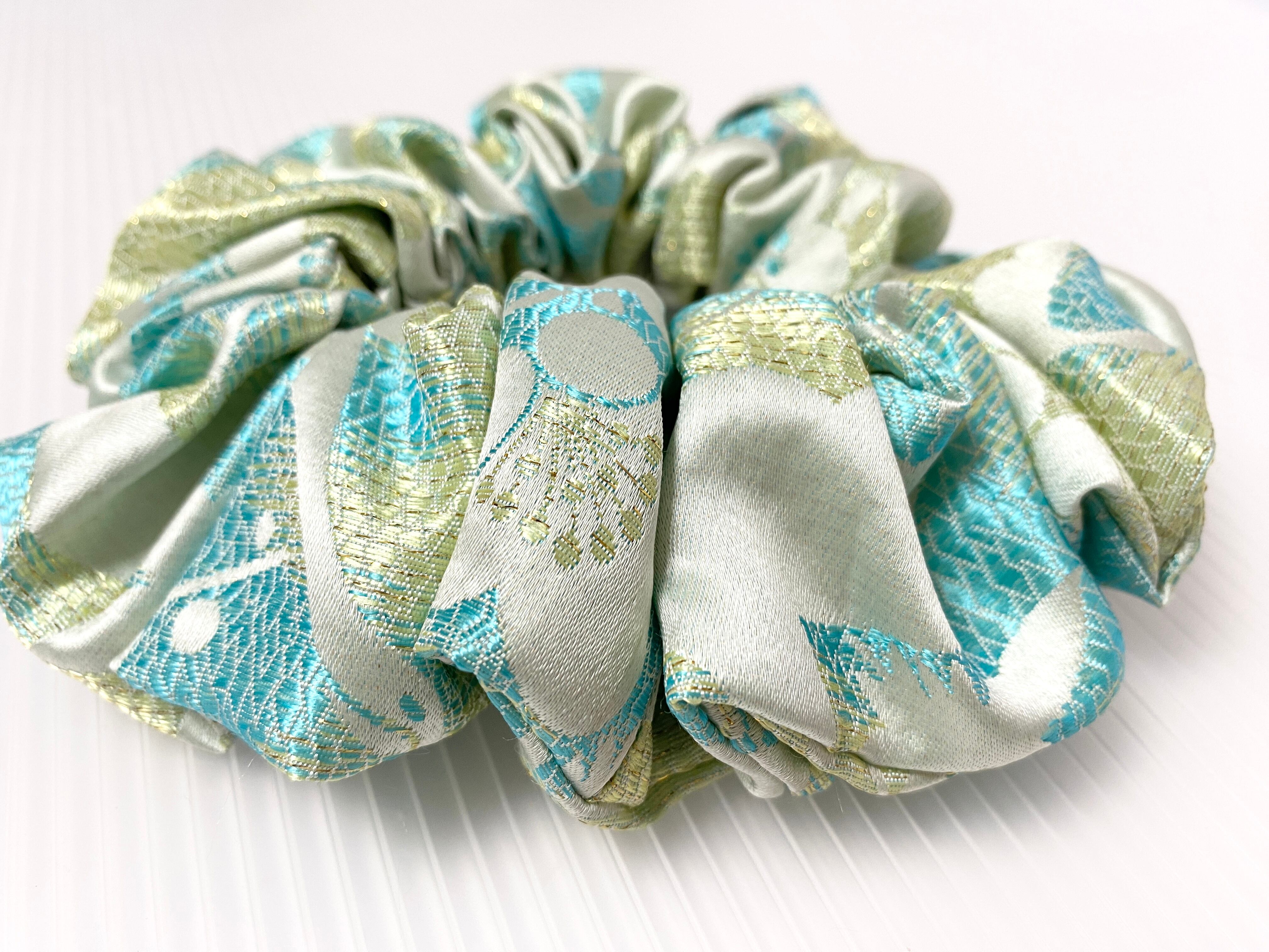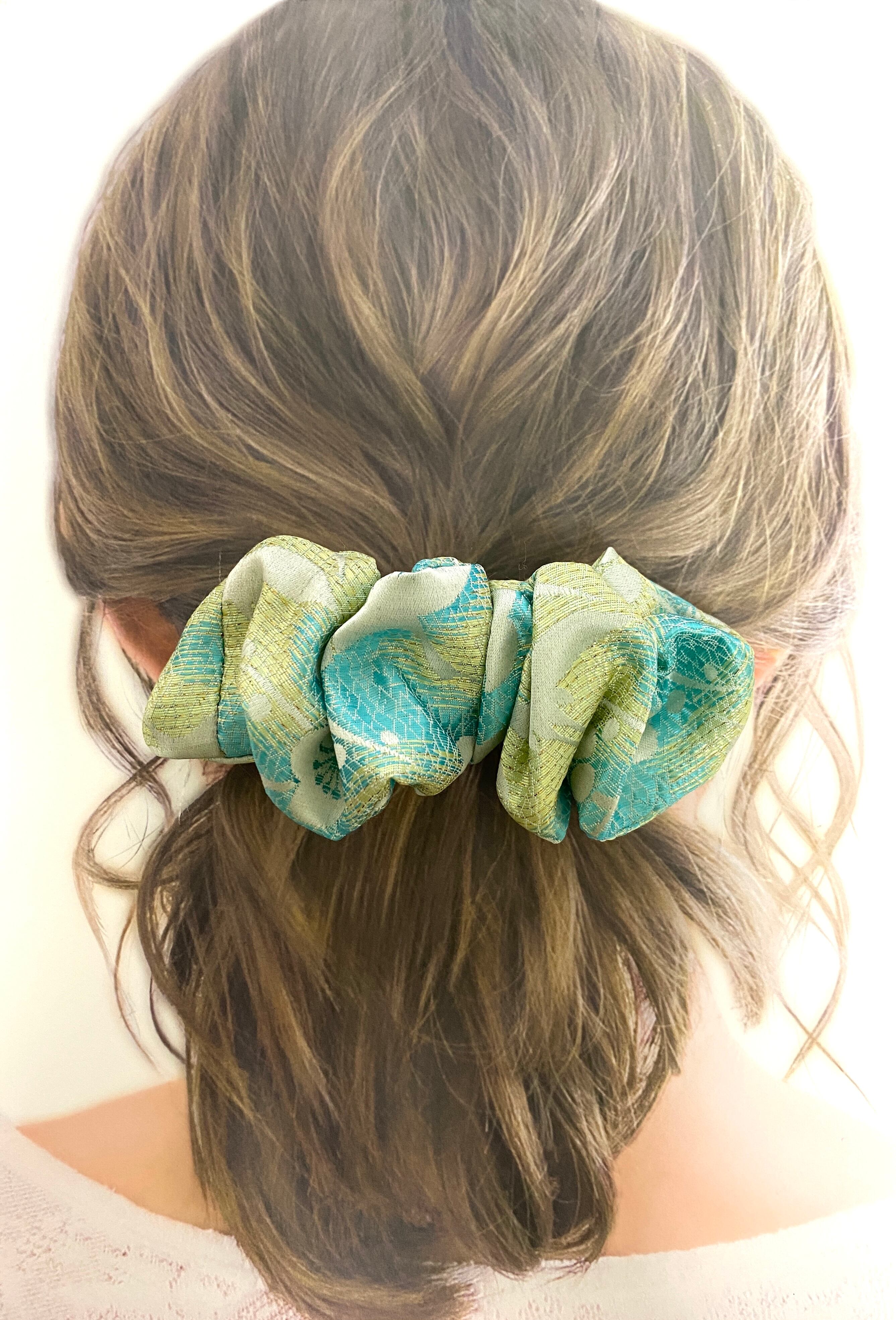 着物布生地なので柔らかで薄い布生地な為触り心地が良く滑らかで髪結びの装着がとても良いシュシュヘアゴムです