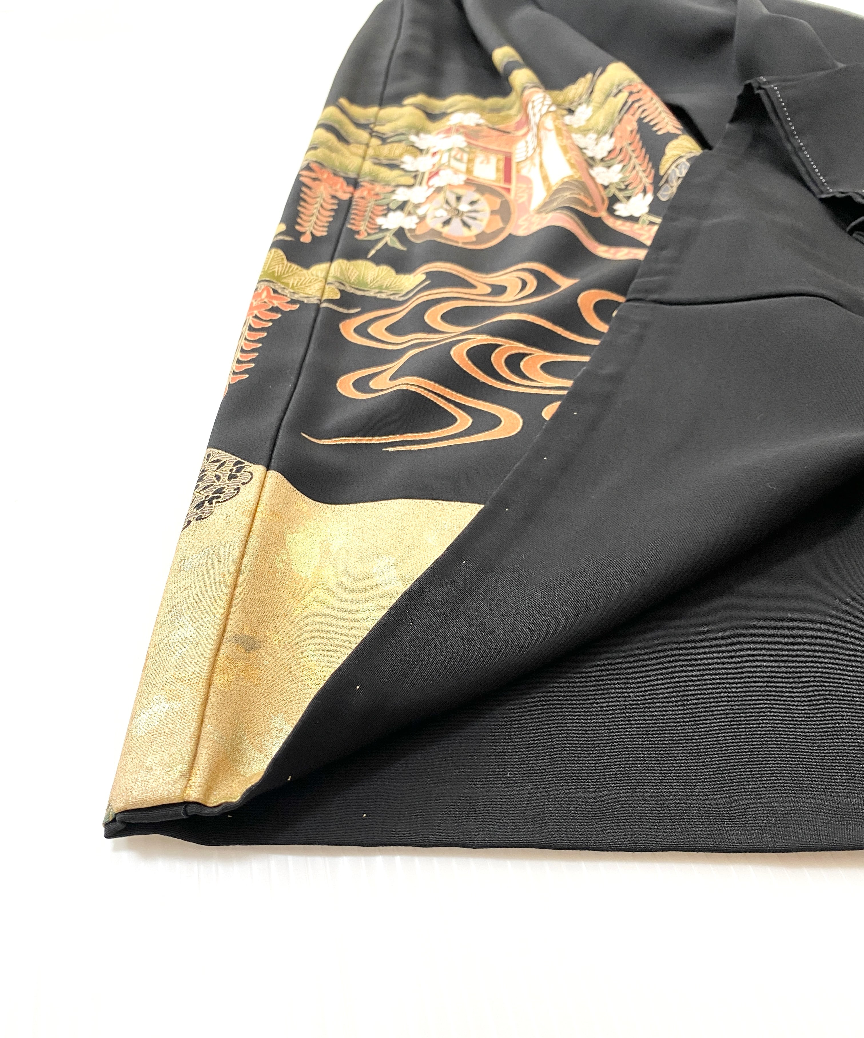 黒留袖着物をリメイクして作製したウエストゴムロングスカートフリーサイズです