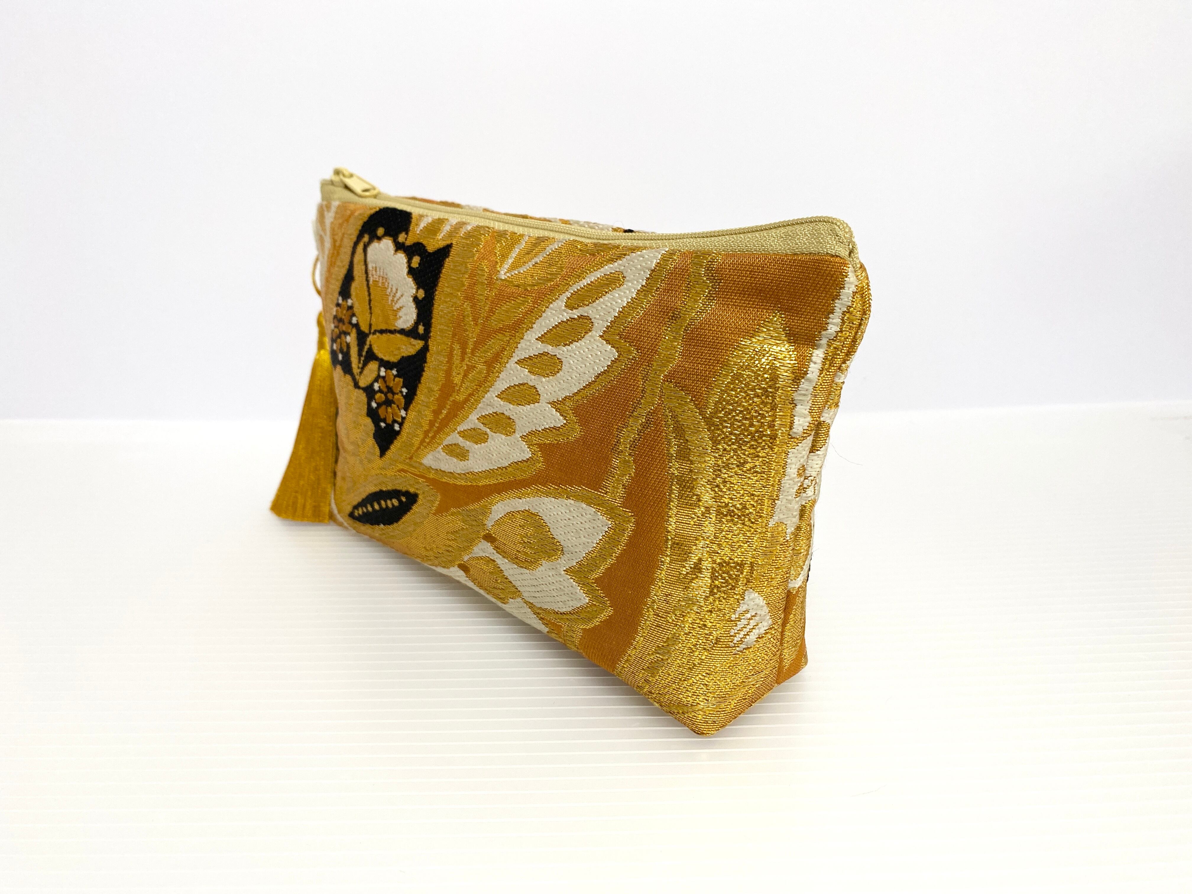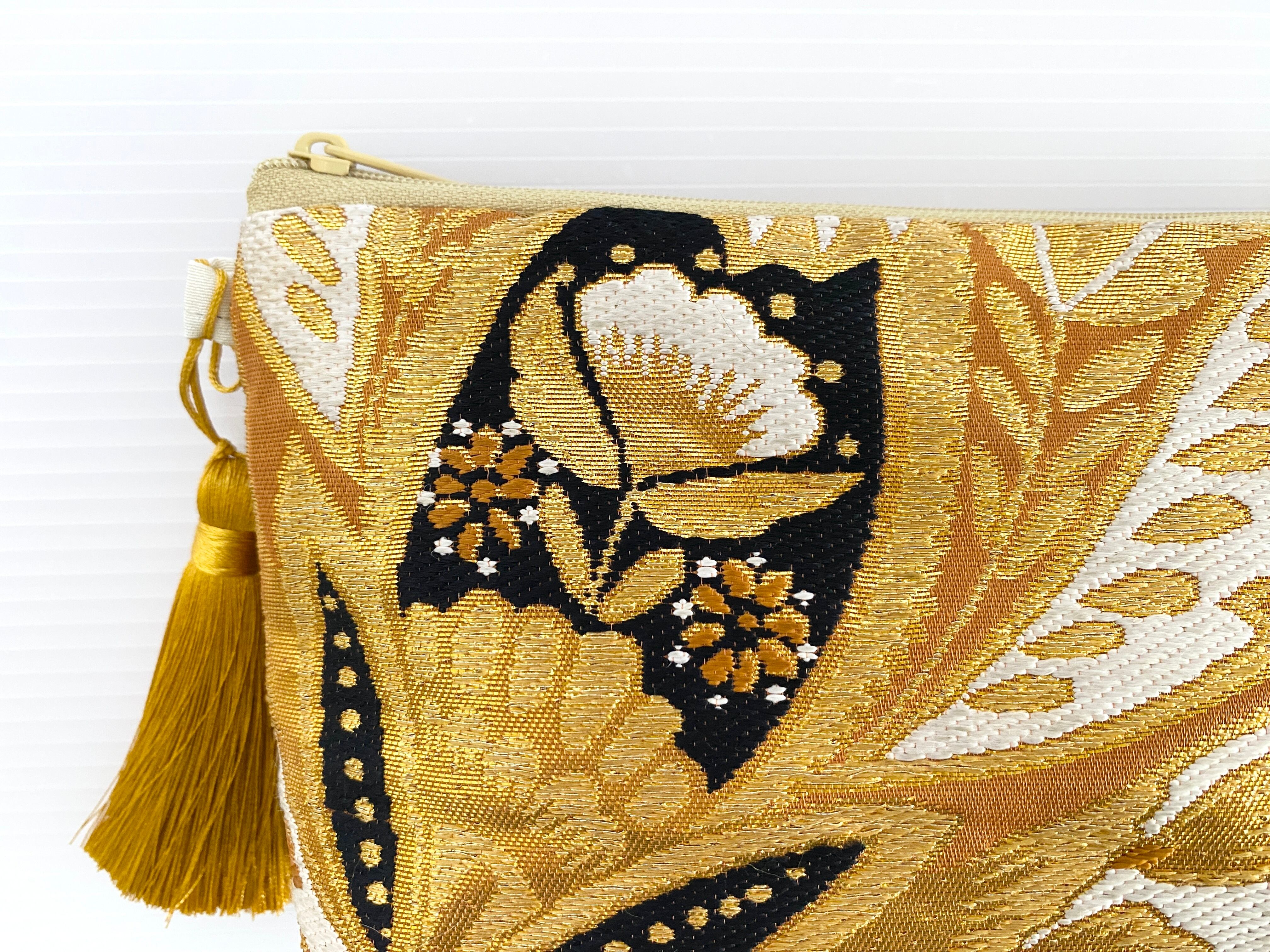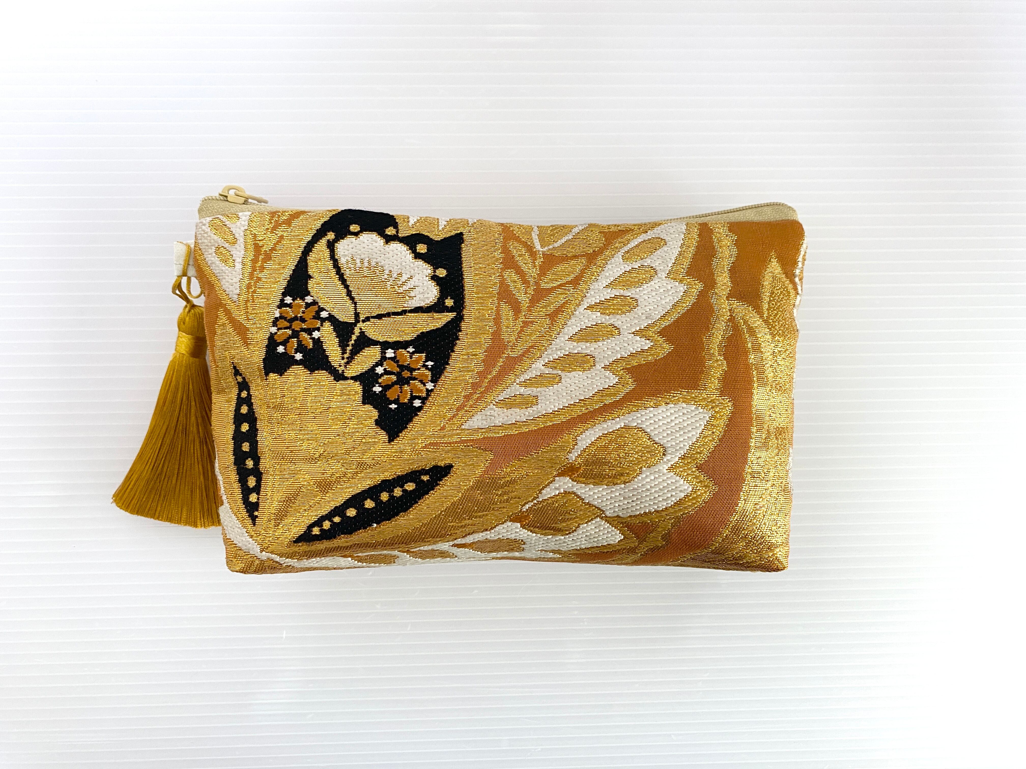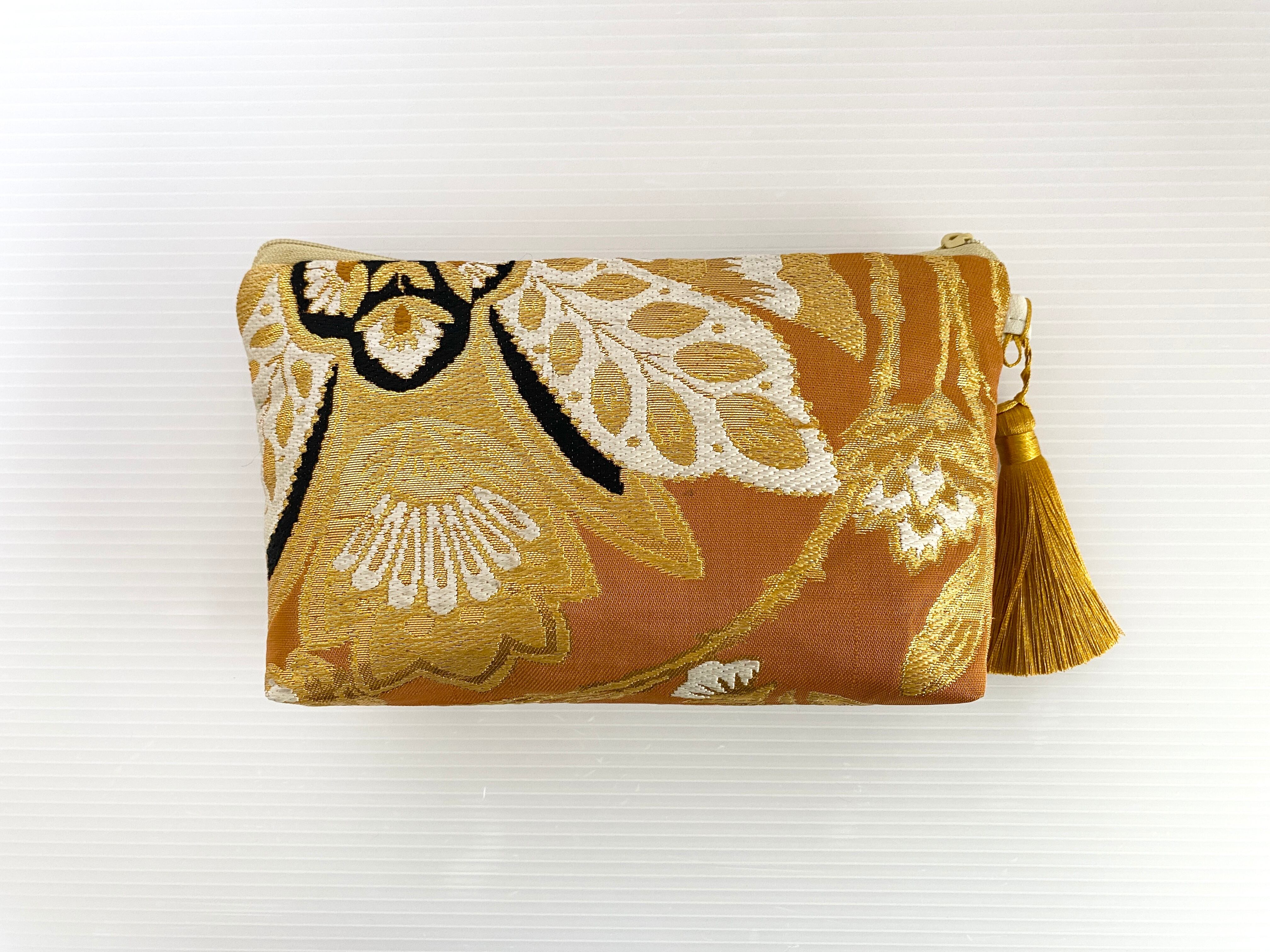 日本の古着物帯をリメイクして作製したポーチでハンドメイド品です