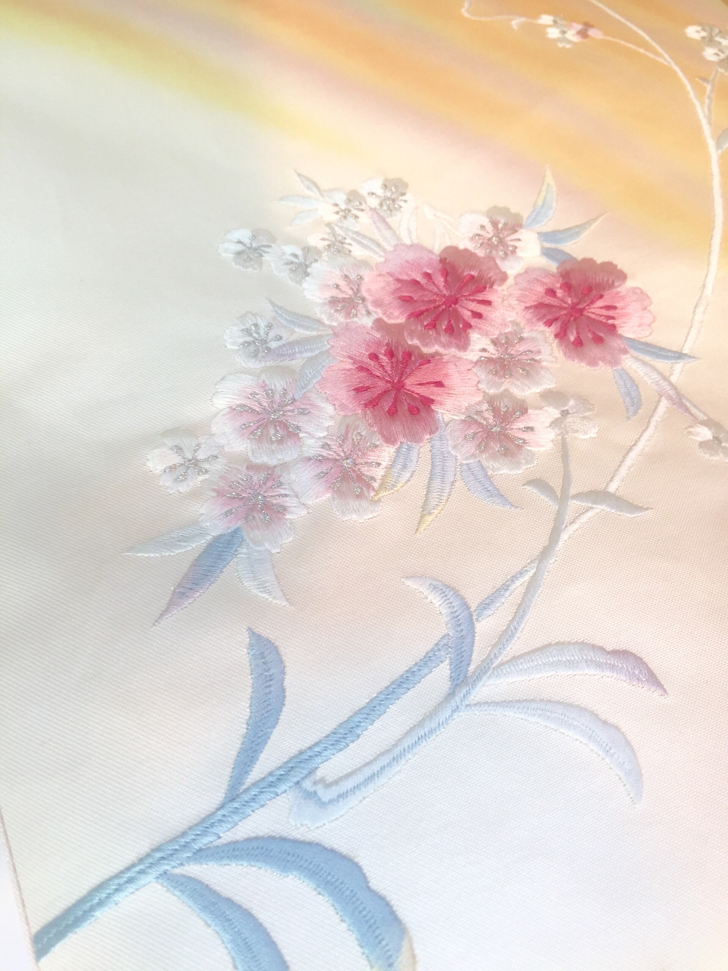 触り心地が滑らかで手にしっくりとくる安心感。絵柄の鮮やかさは日本の帯ならではの存在感で素晴らしく華やかな美しさです。