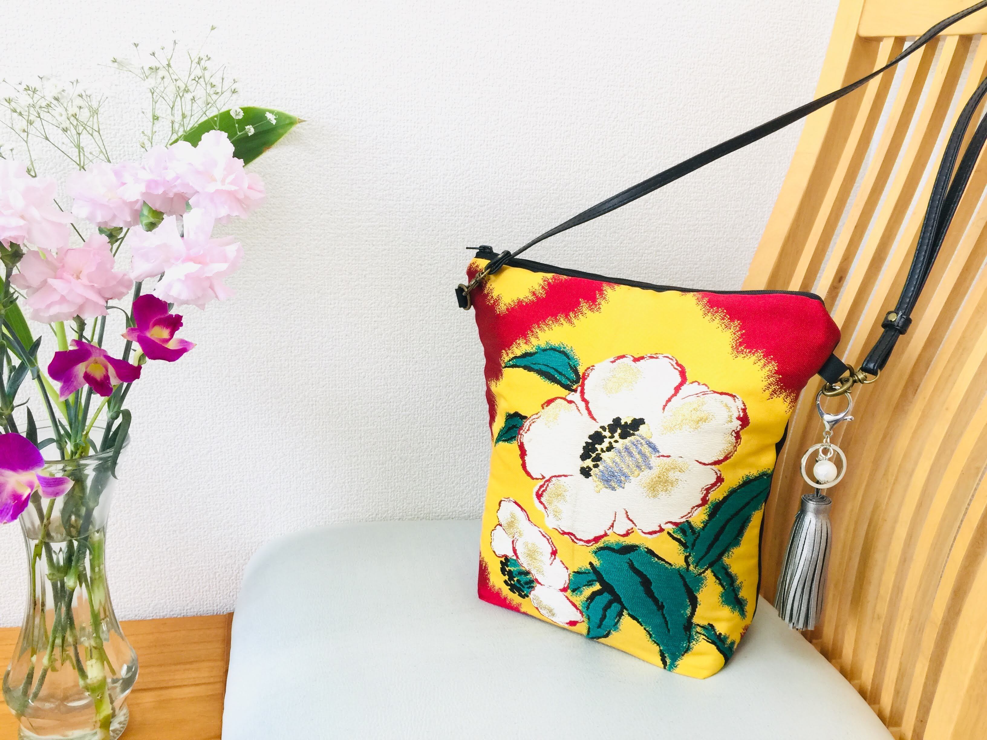 日本の古帯をリメイクして作成したバッグでハンドメイド品です。 帯リメイクバッグショルダーバッグ斜め掛けバッグ。