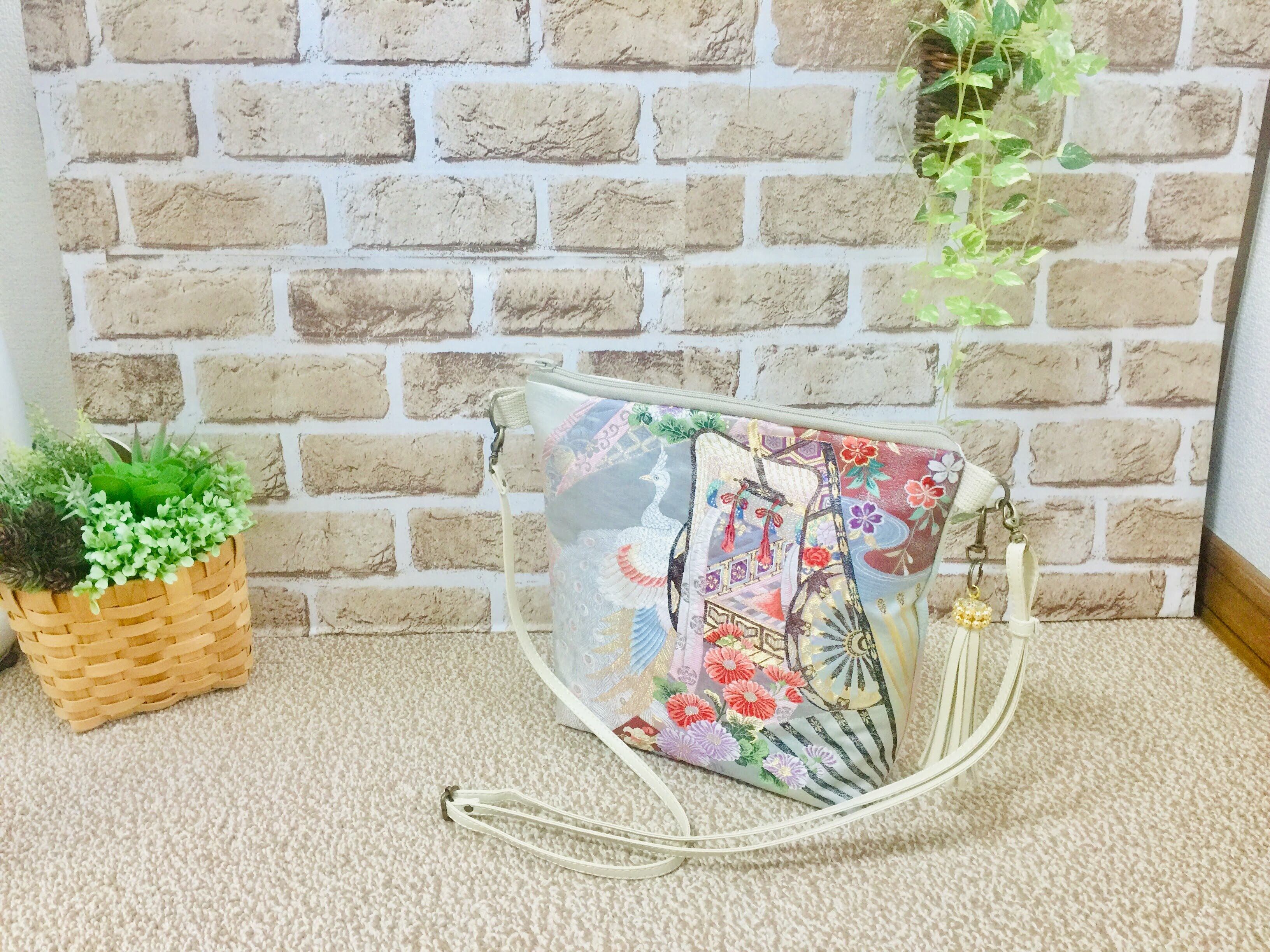 日本の古帯をリメイクして作成したショルダーバッグでハンドメイド品です。 帯リメイクバッグ。