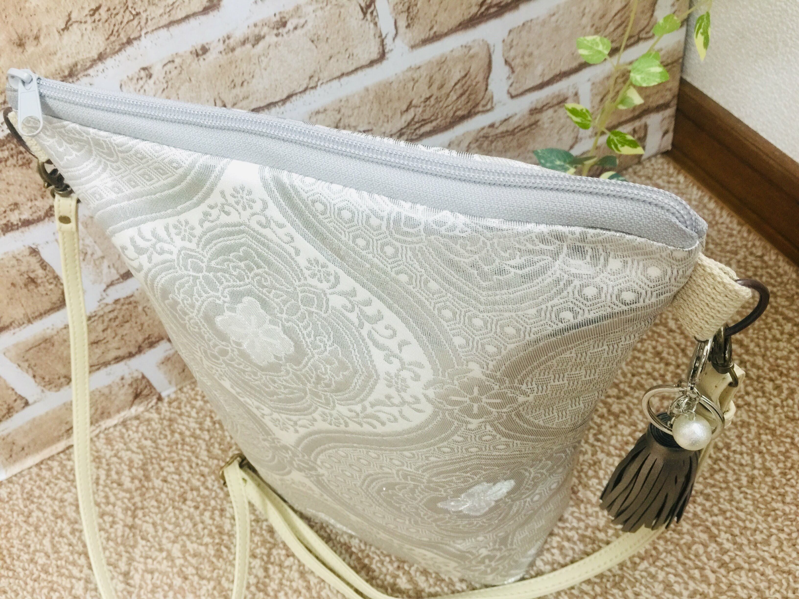 日本の古帯をリメイクして作成したショルダーバッグでハンドメイド品です。 帯リメイクバッグ。