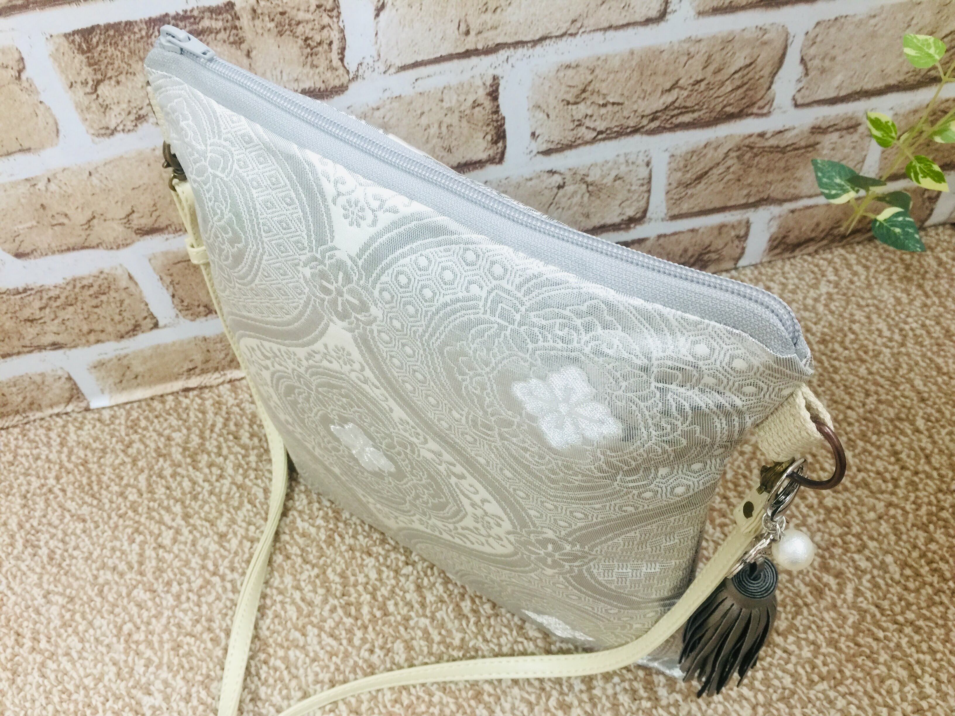 日本の古帯をリメイクして作成した帯リメイクバッグでショルダーとクラッチの2wayタイプのリメイクバッグでハンドメイド品です。 帯リメイクバッグ。