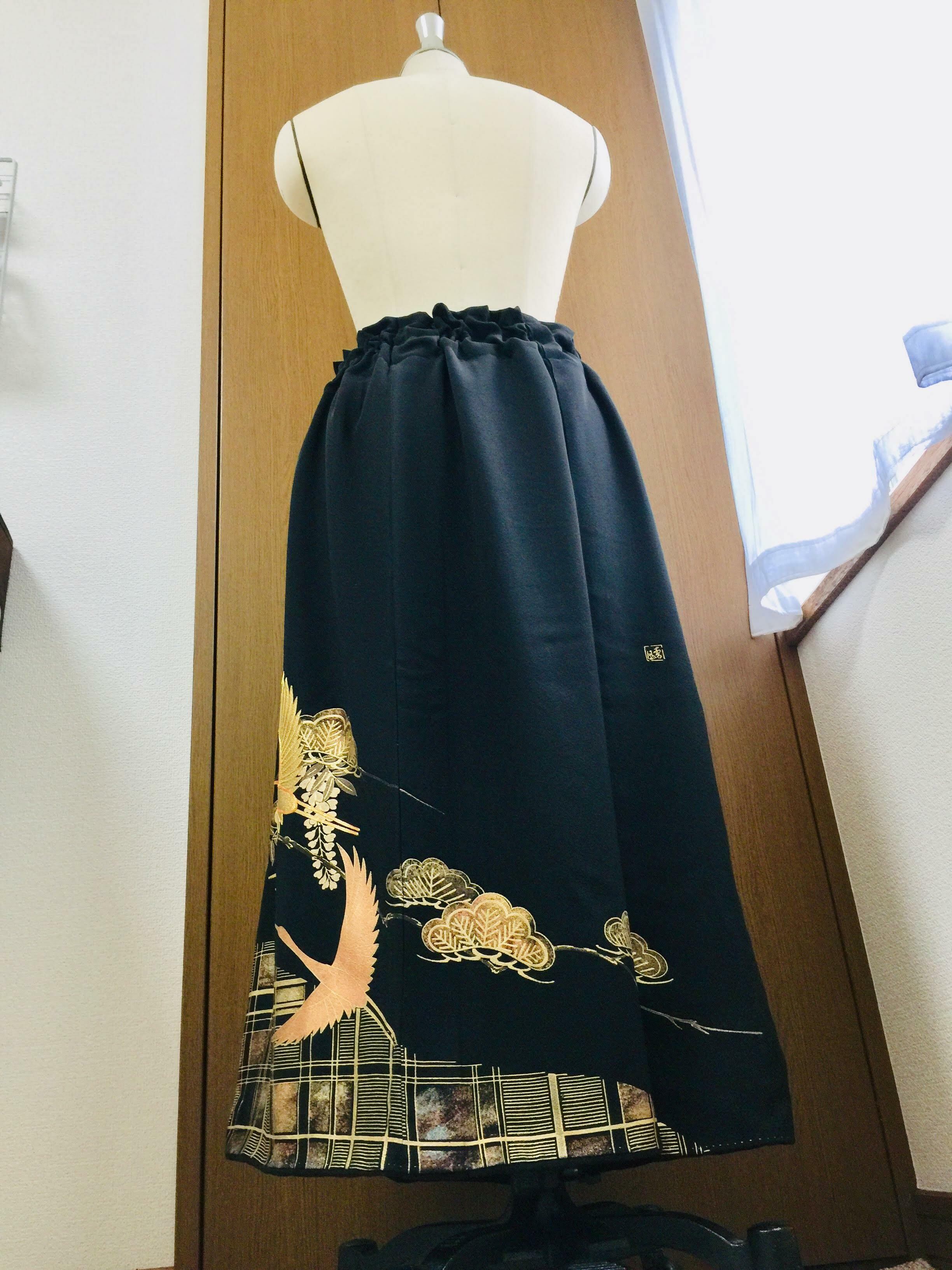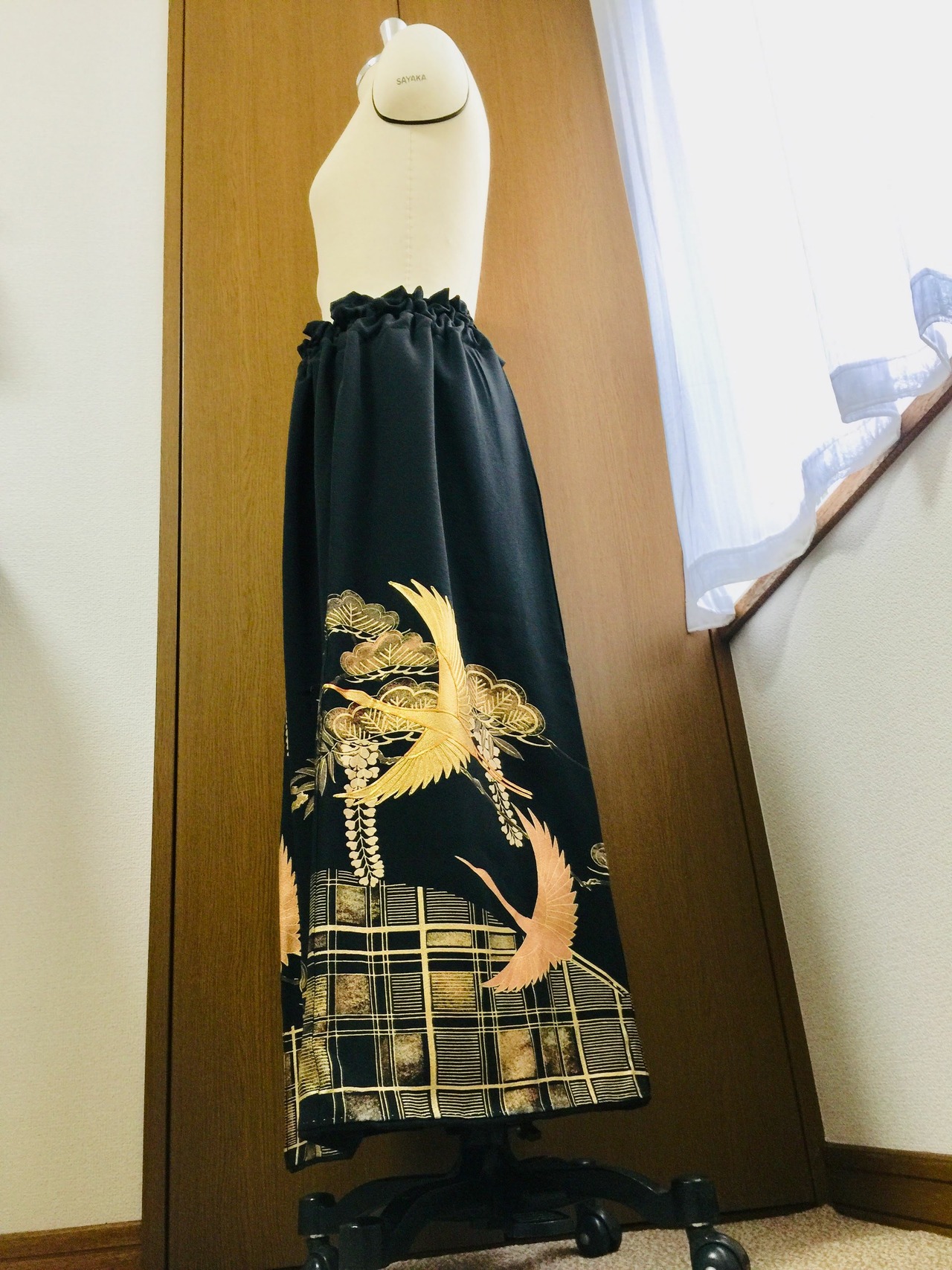 黒留袖で作製したドレススカートです。黒留袖リメイクドレススカート