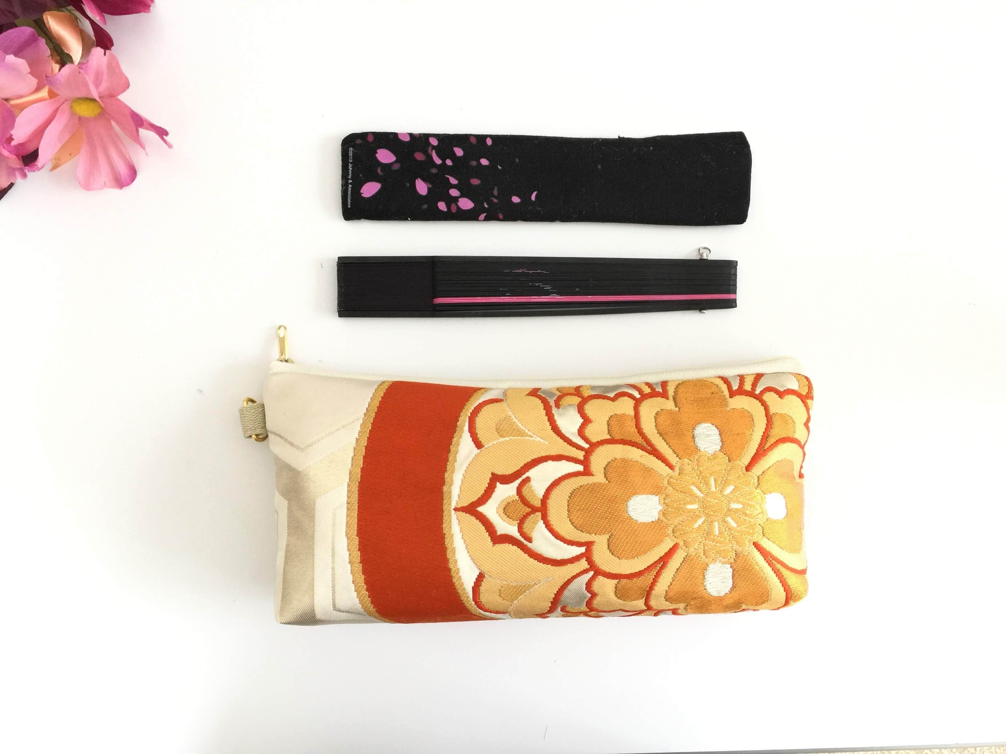 帯リメイクポーチ化粧ポーチ1点物 送料無料ハンドメイド帯リメイク化粧ポーチ帯リメイクポーチ扇子入れふくさ経本入れNO.238