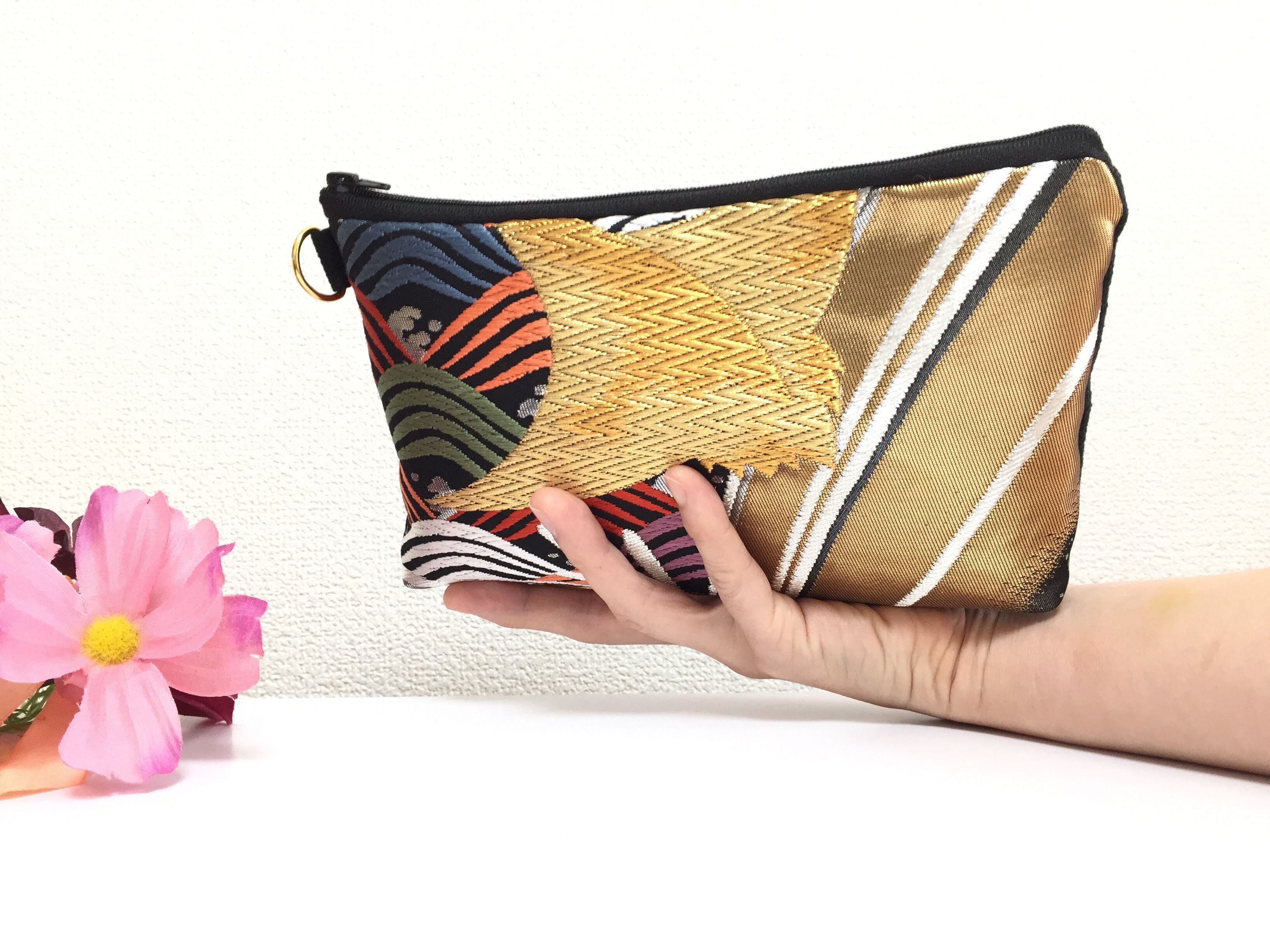 日本の古帯を再利用リメイクして作製したポーチでハンドメイド品です。帯リメイクポーチ化粧ポーチ トラベルポーチ
