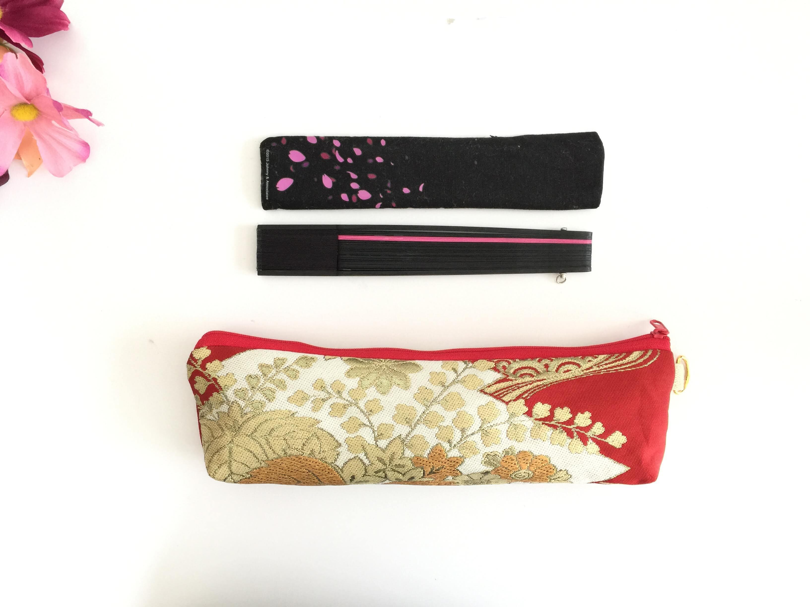 日本の古帯を再利用リメイクして作製したポーチでハンドメイド品です。帯リメイクポーチ化粧ポーチ 扇子入れトラベルポーチ