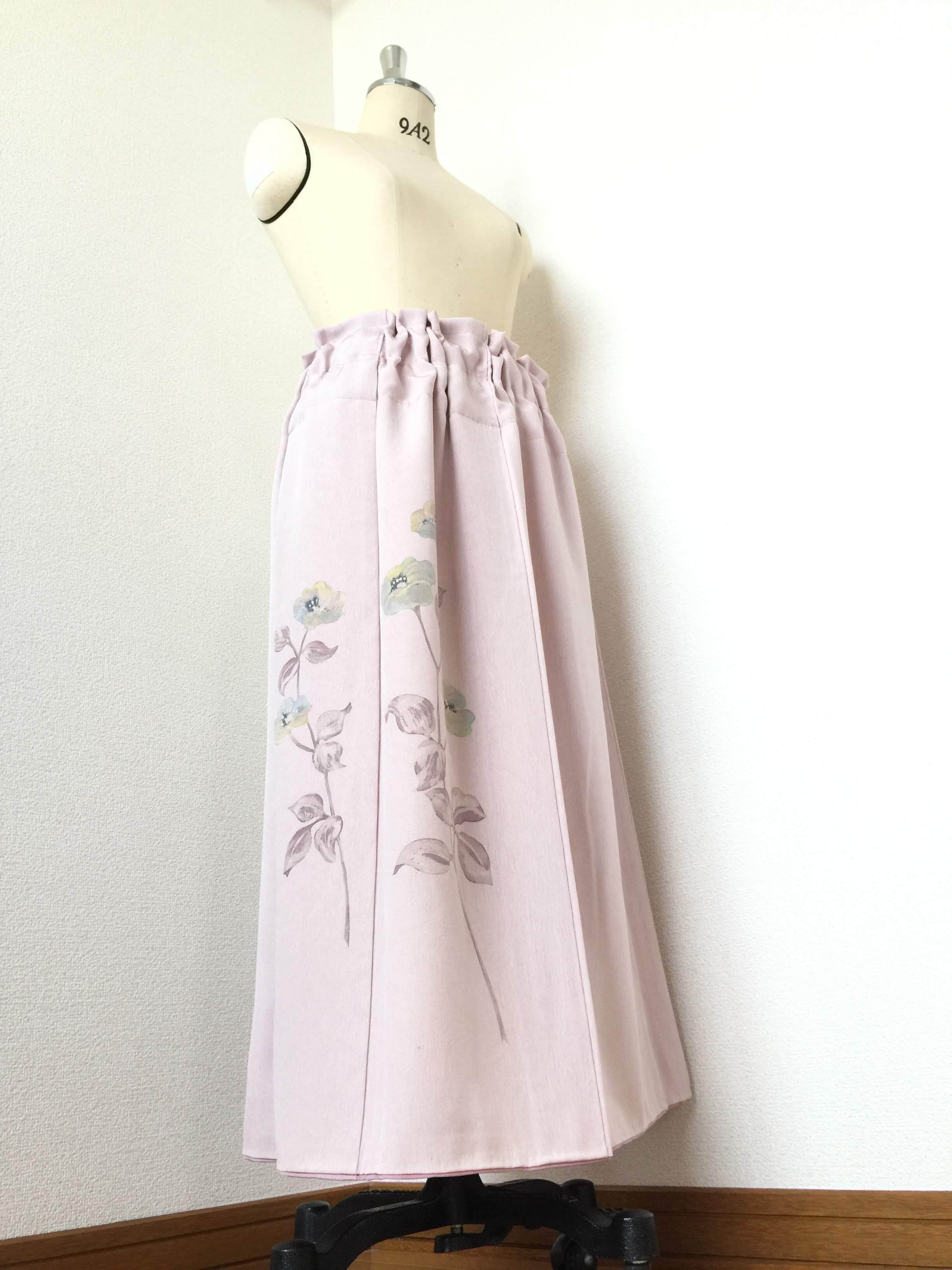 着物をリメイクして作製したウエストゴムギャザードレススカートです。着物リメイクウエストゴムギャザードレススカート