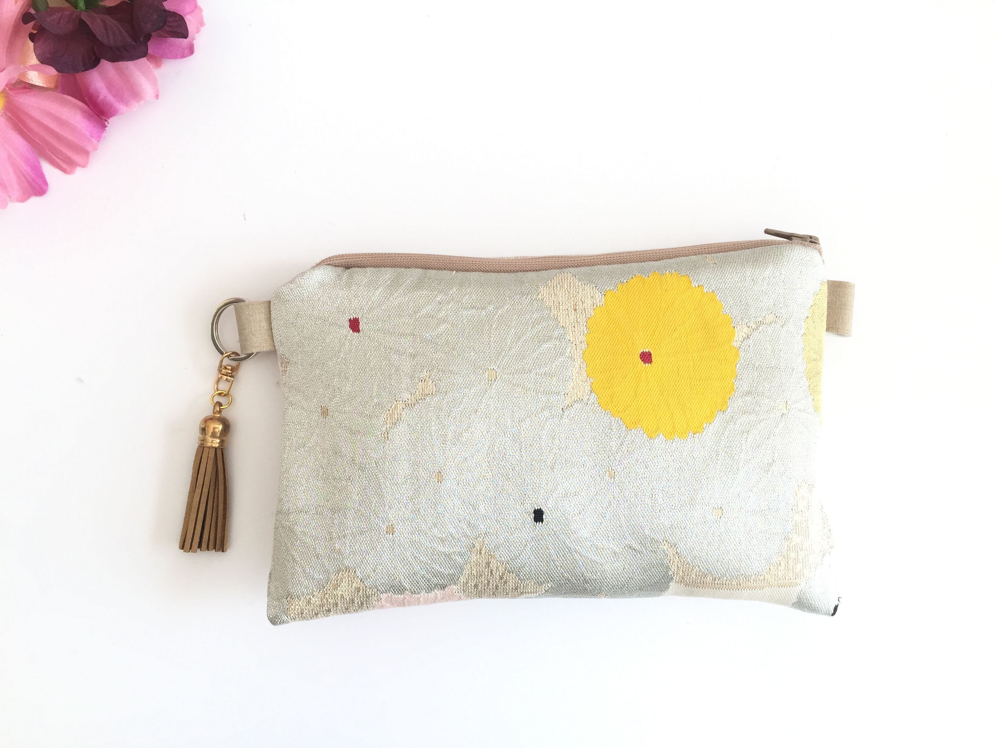 日本の古帯を再利用リメイクして作製したポーチでハンドメイド品です。帯リメイクポーチ化粧ポーチ トラベルポーチ ふくさ経本入れお数珠入れ