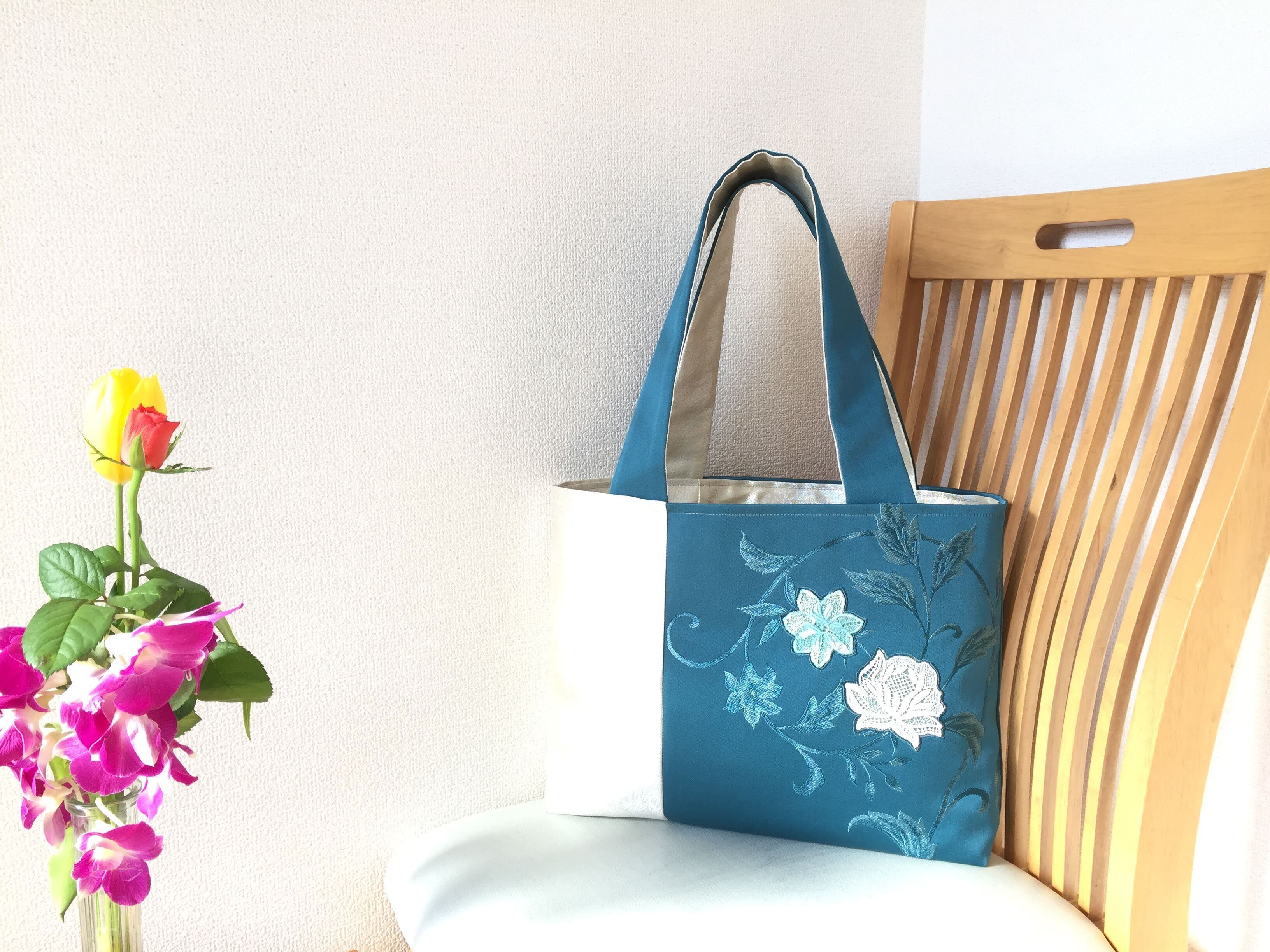 裏地にも帯生地を使用しております。しっかりとした帯生地で製作したバッグですので強度もあり安心。