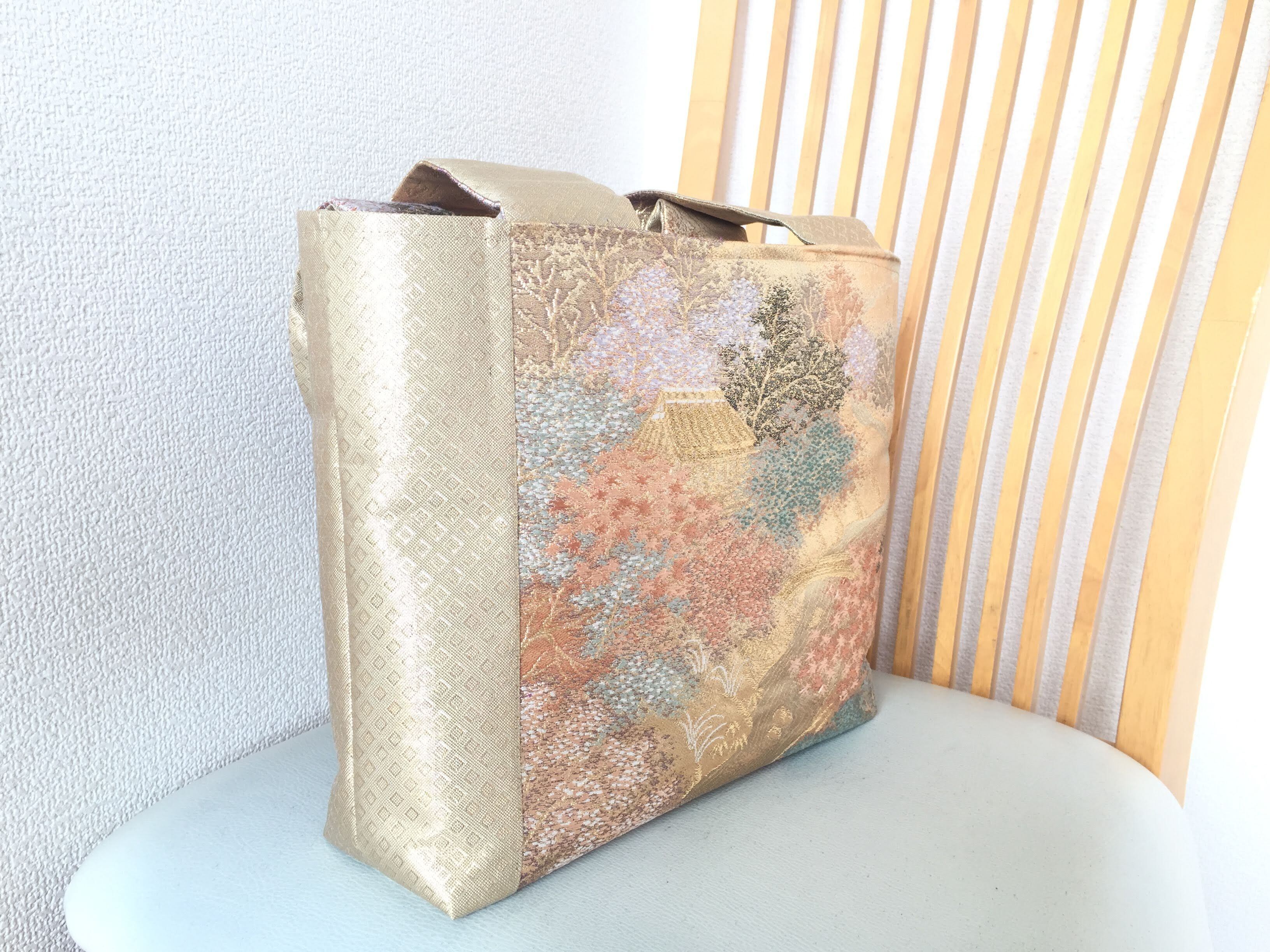 日本の古帯をリメイクして作成したショルダーバッグトートバッグでハンドメイド品です。 帯リメイクバッグショルダーバッグトートバッグポーチ付き