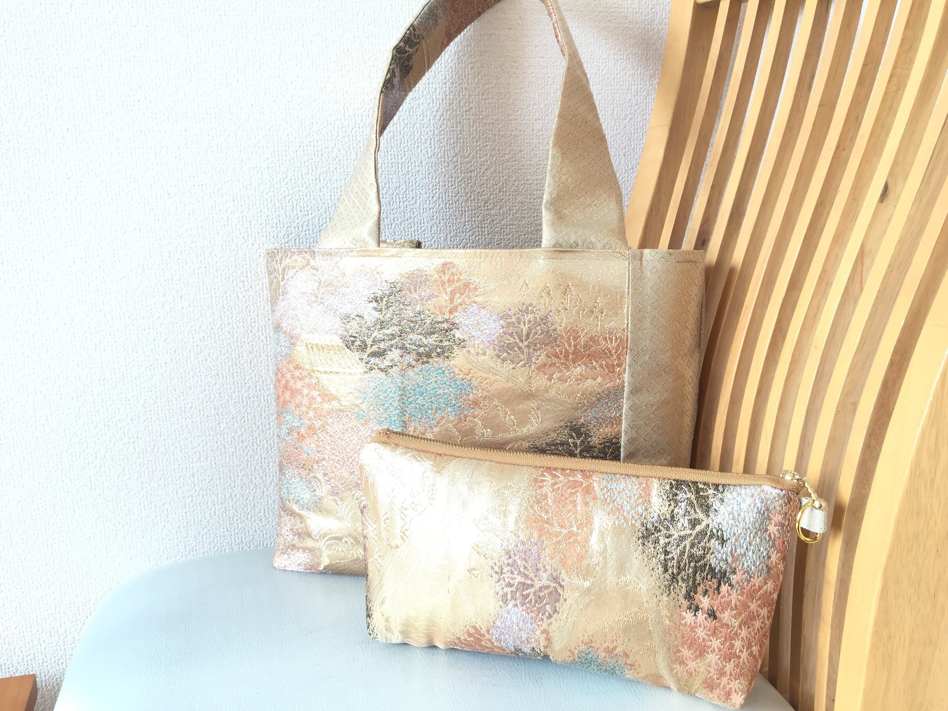 帯リメイクバッグショルダーバッグトートバッグポーチセット1点物送料無料ハンドメイド帯リメイクショルダーバッグNO.265