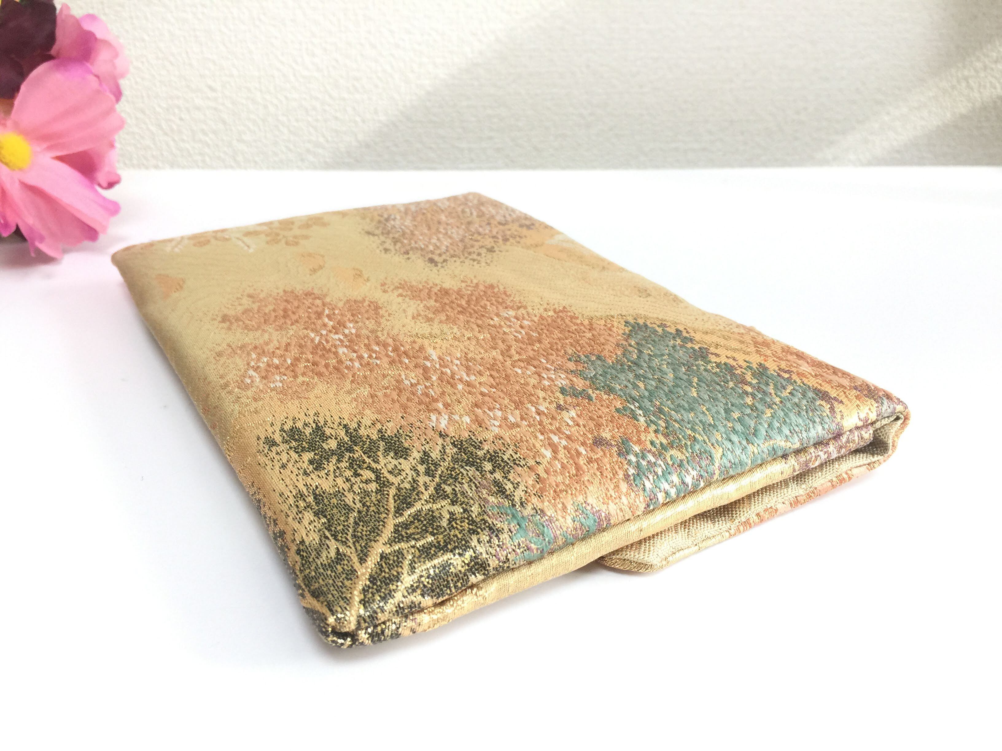 触り心地が滑らかで手にしっくりとくる安心感。絵柄の鮮やかさは日本の帯ならではの存在感で素晴らしく華やかな美しさです。