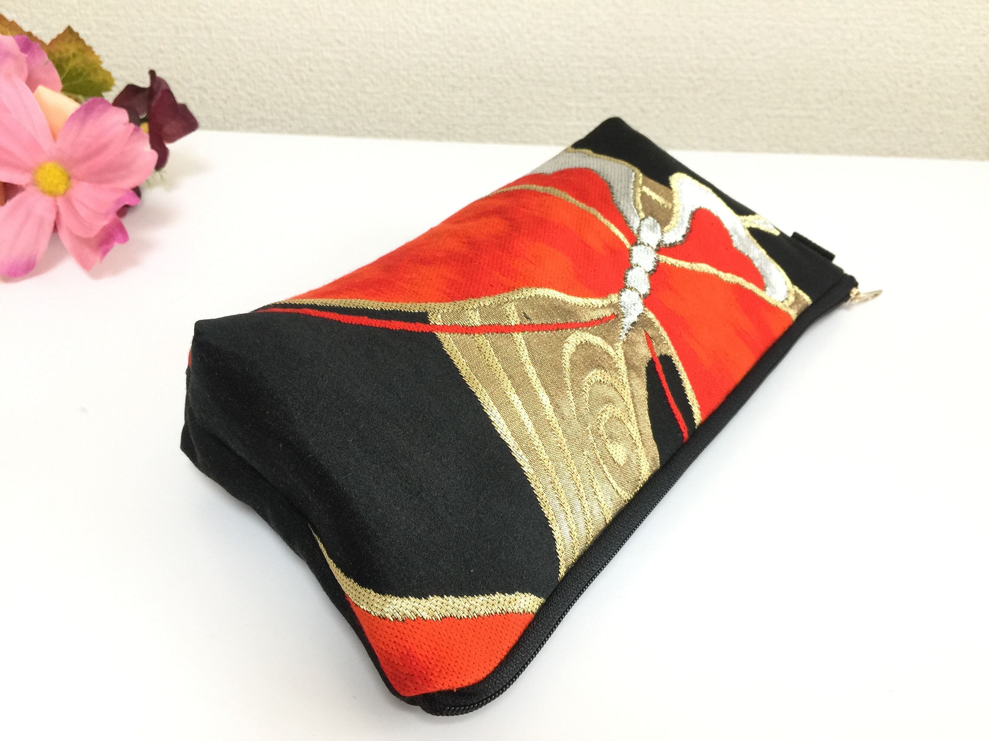 帯リメイクポーチ化粧ポーチ1点物 送料無料ハンドメイド帯リメイク化粧ポーチ帯ポーチ数珠入れNO.287